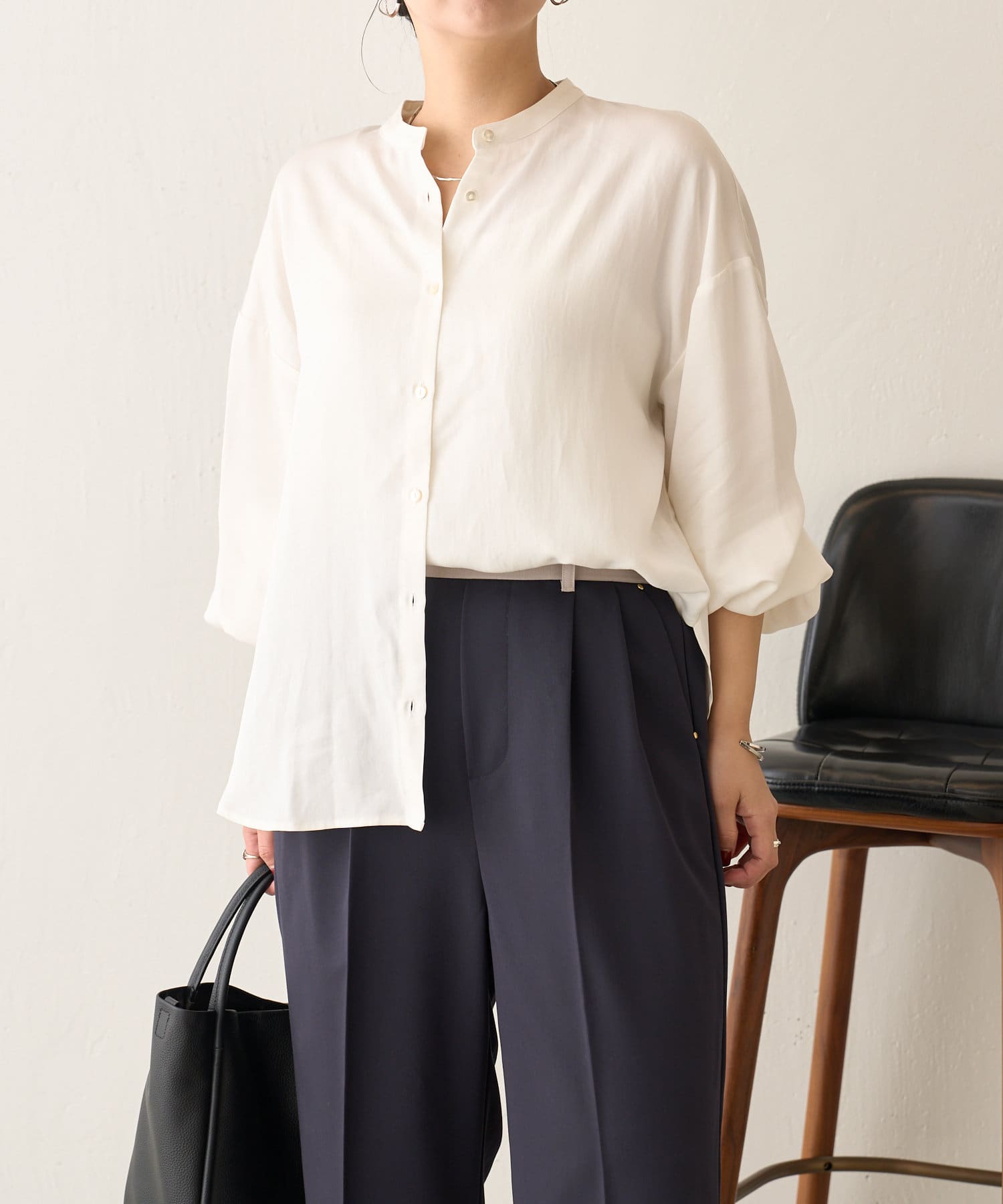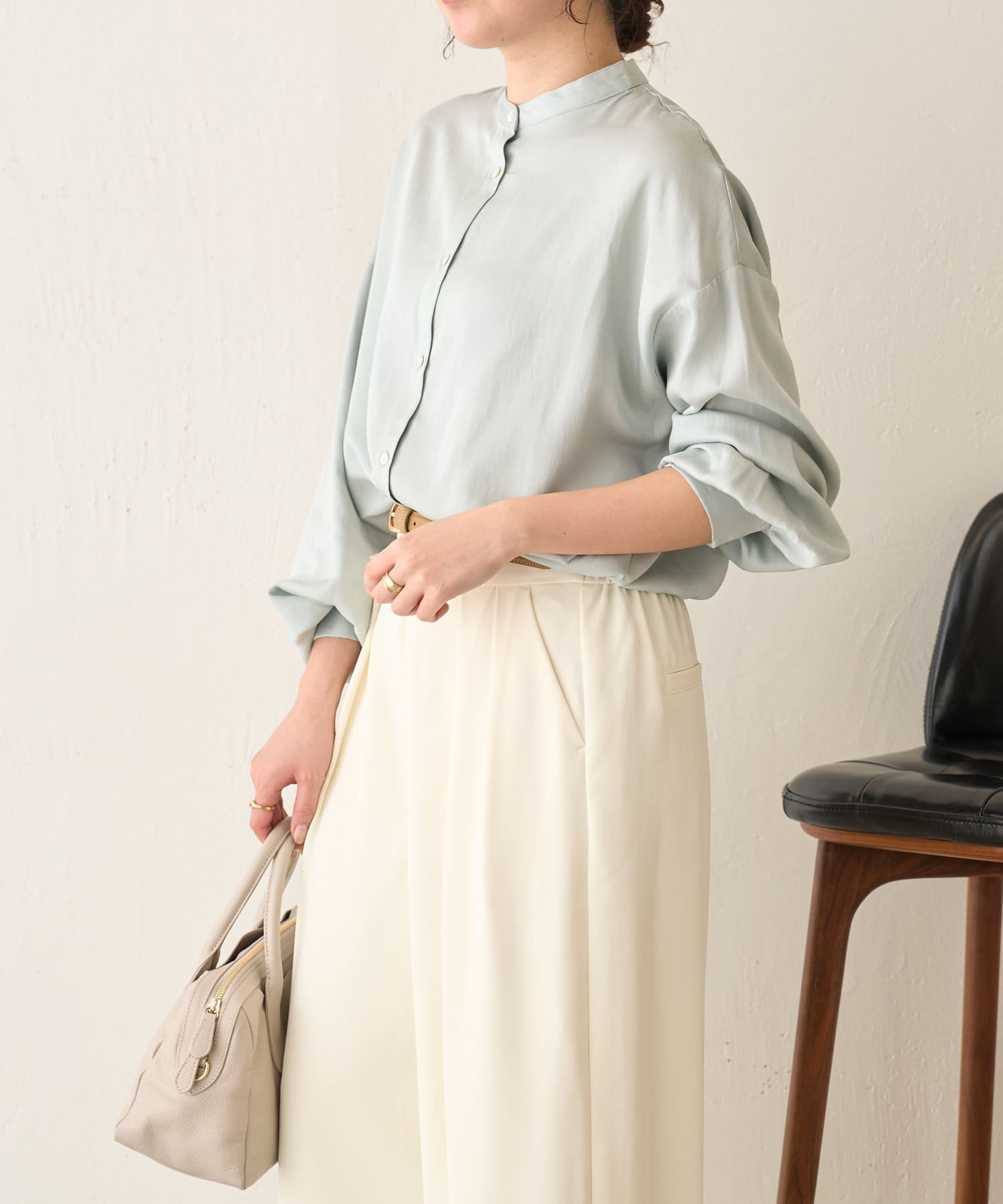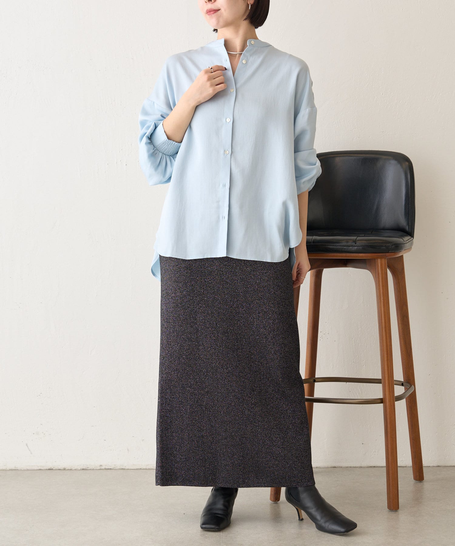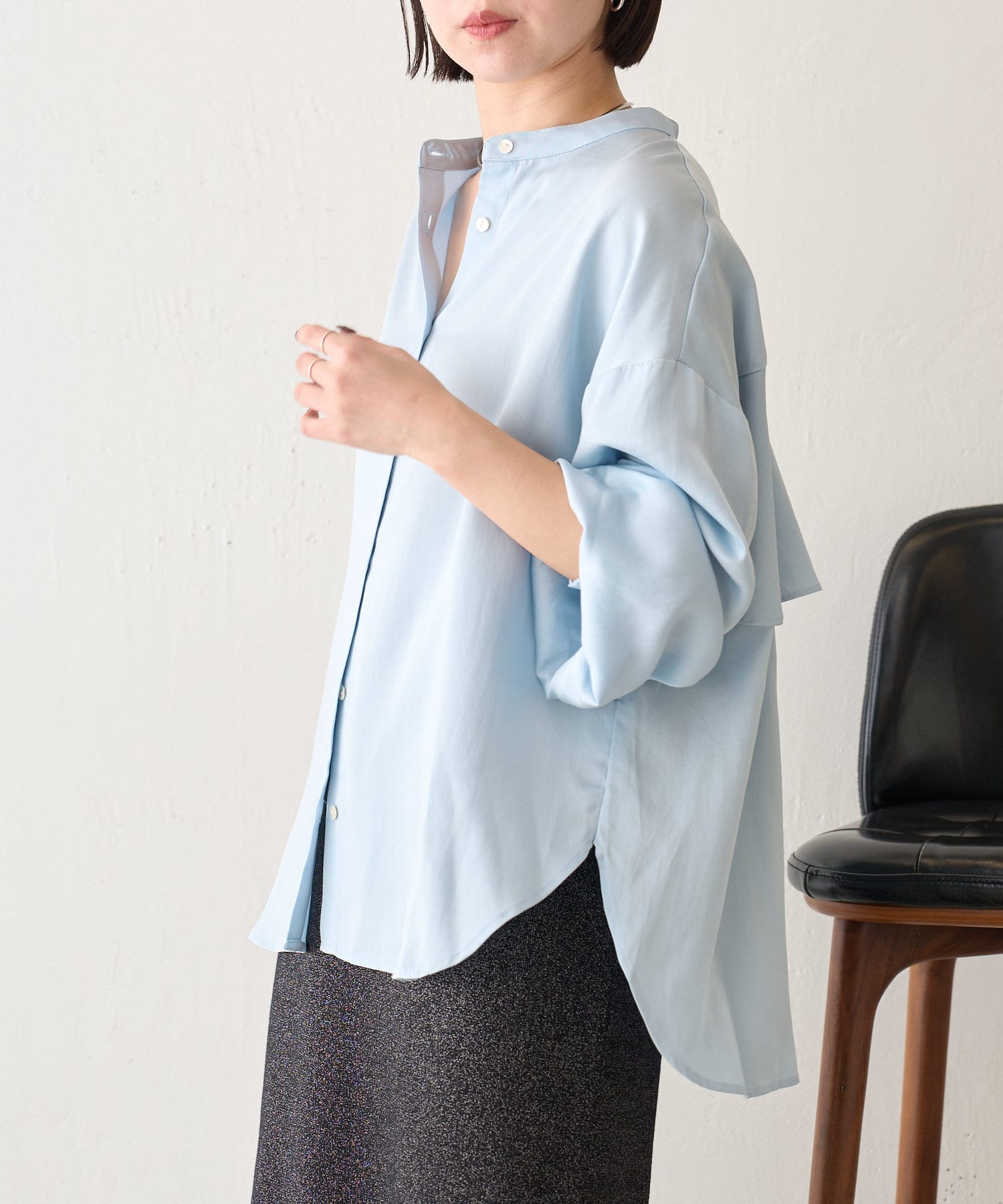 ・程よくとろみのある素材なので、一枚で着映えするアイテムです。