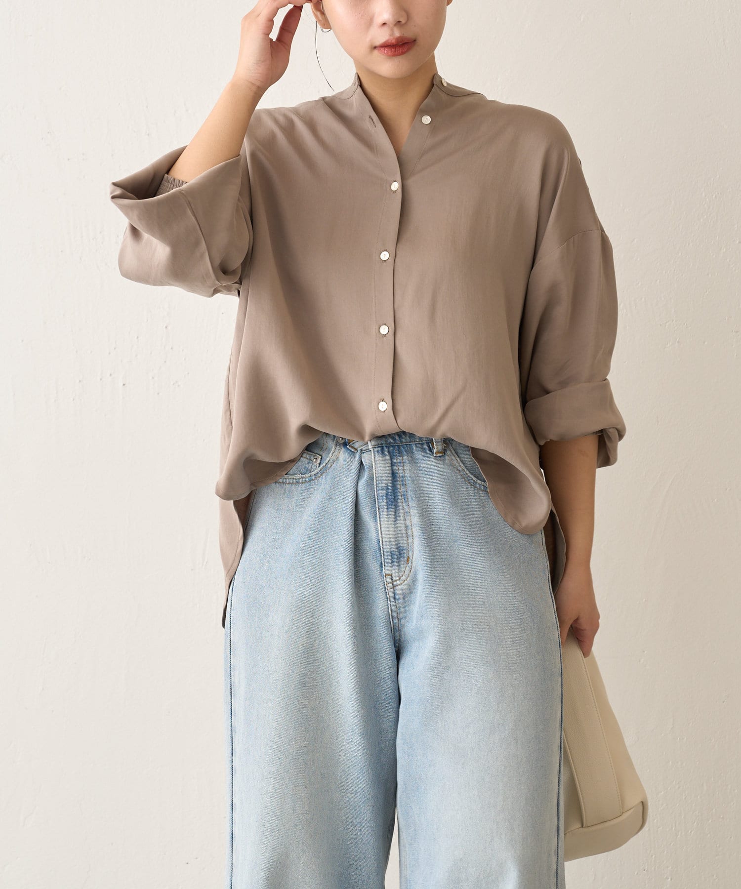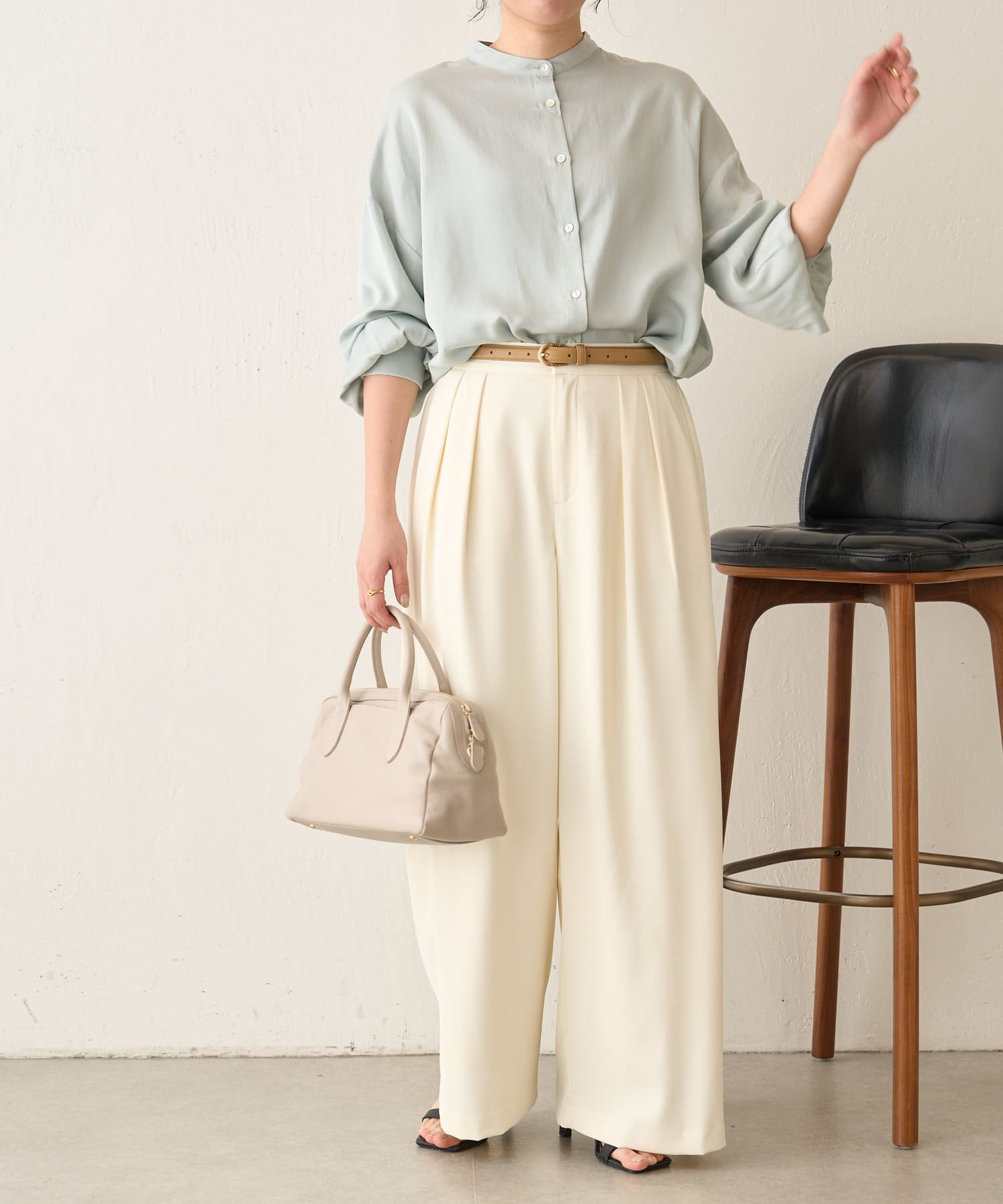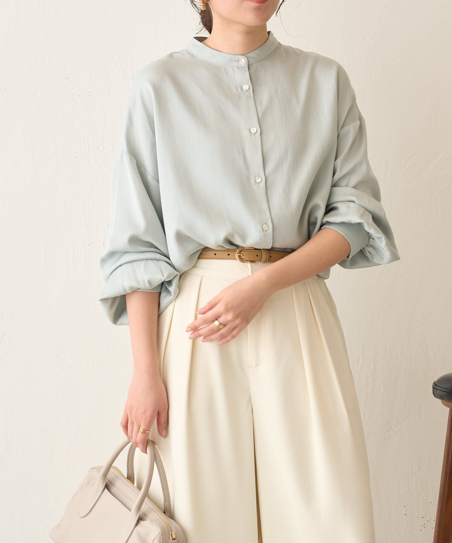 ・程よくとろみのある素材なので、一枚で着映えするアイテムです。