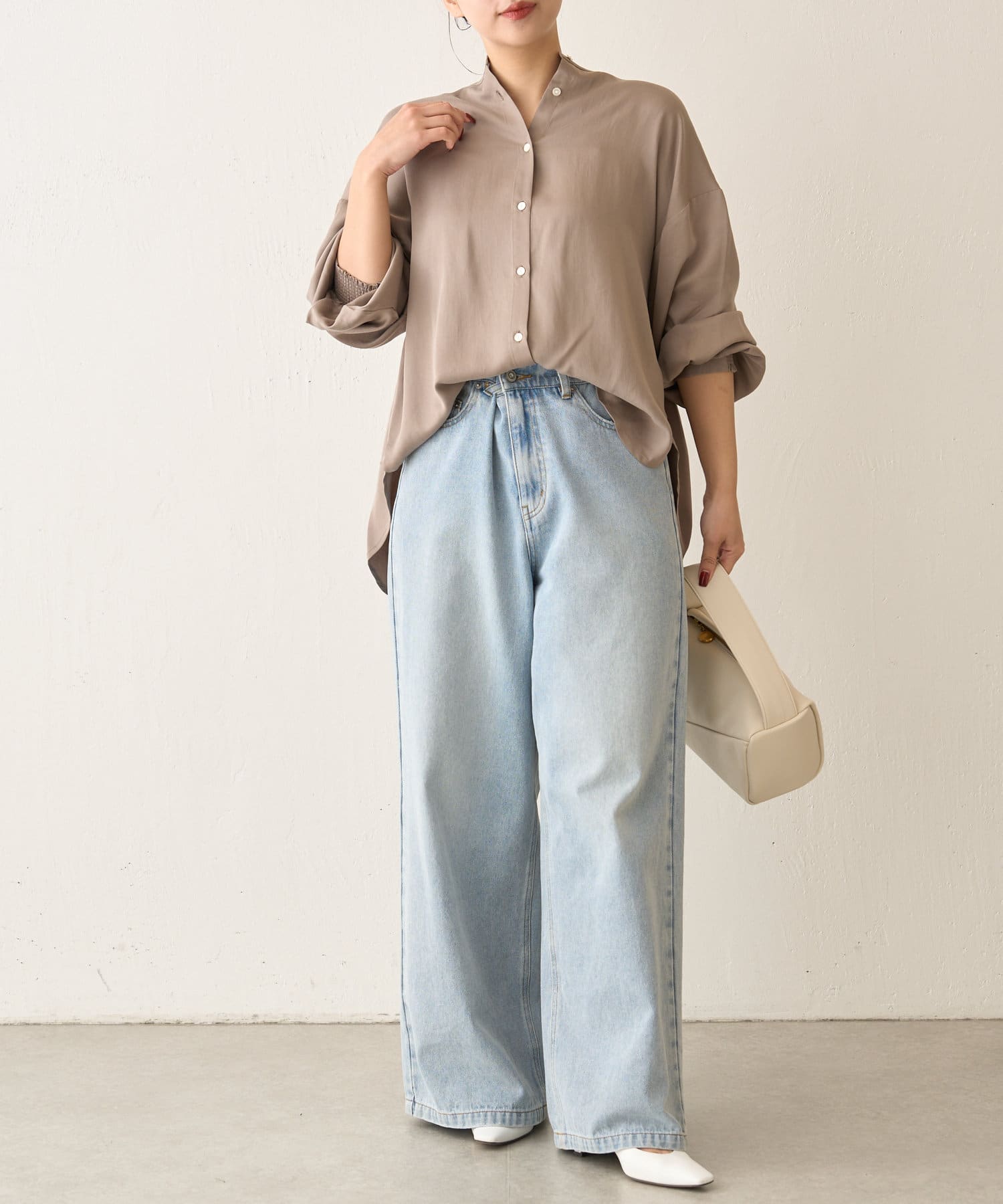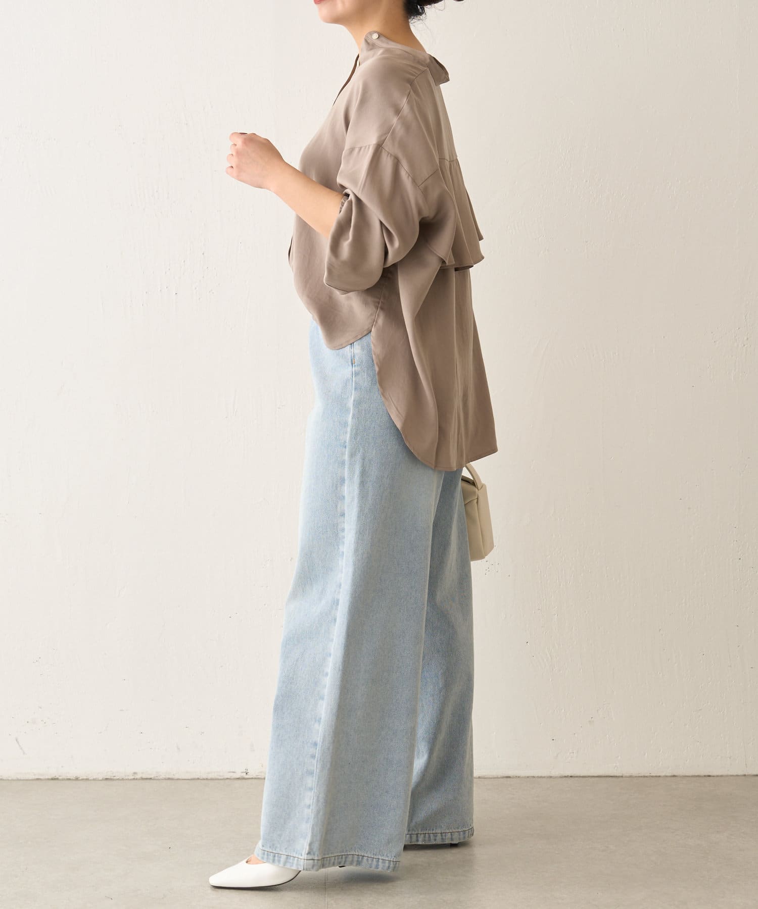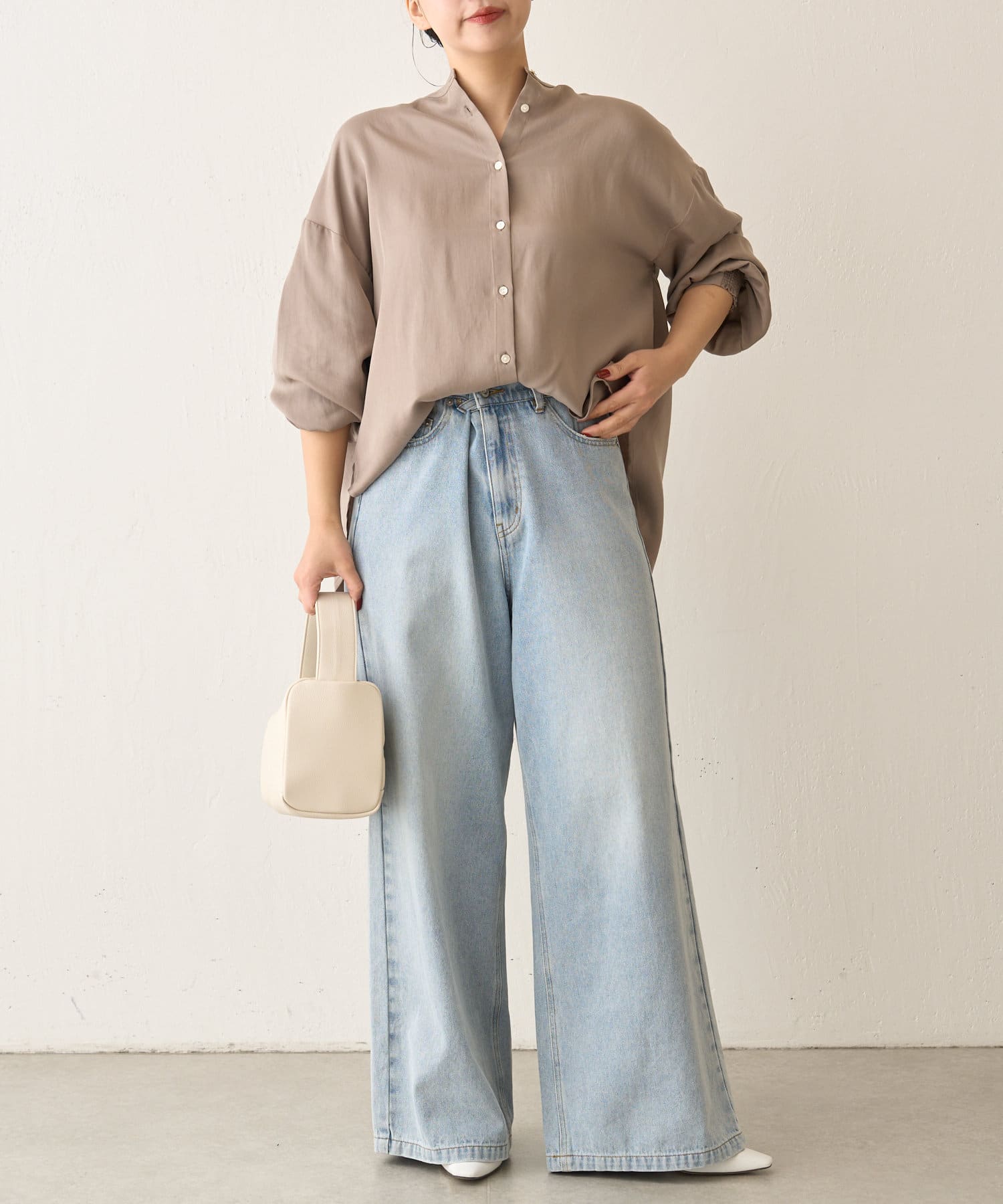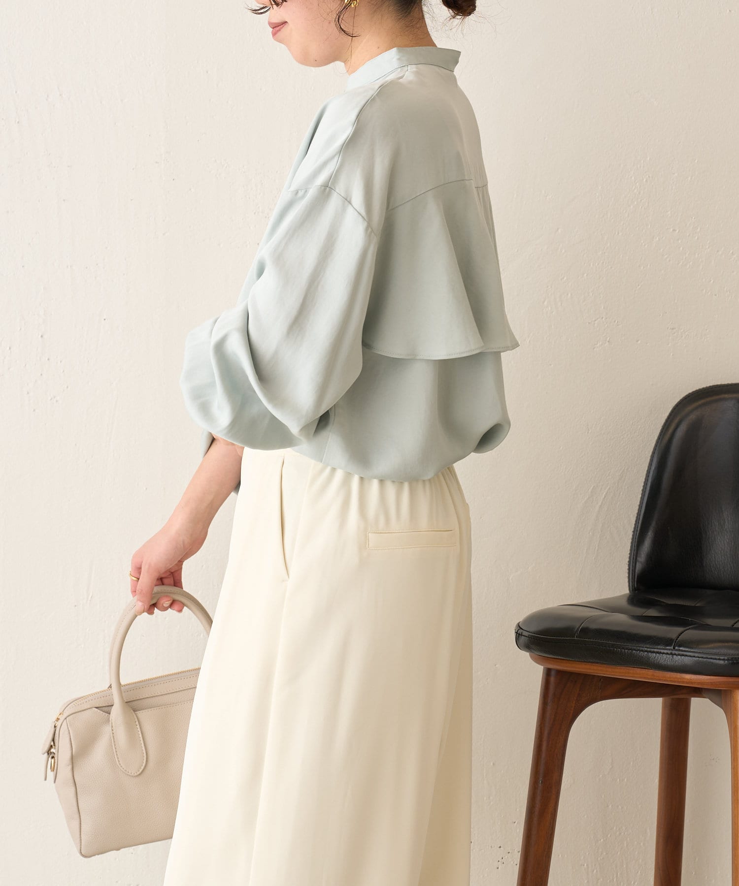 ・程よくとろみのある素材なので、一枚で着映えするアイテムです。