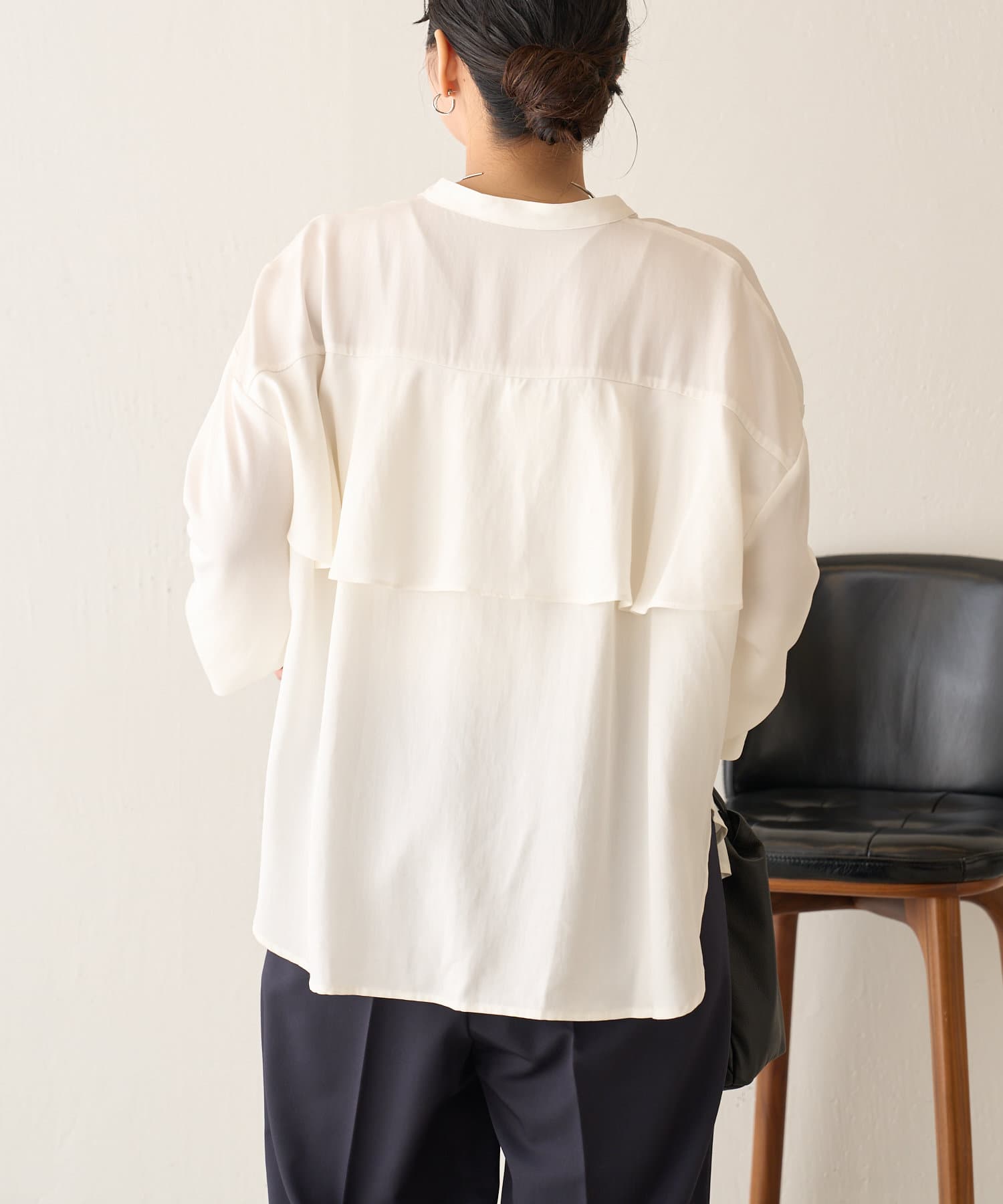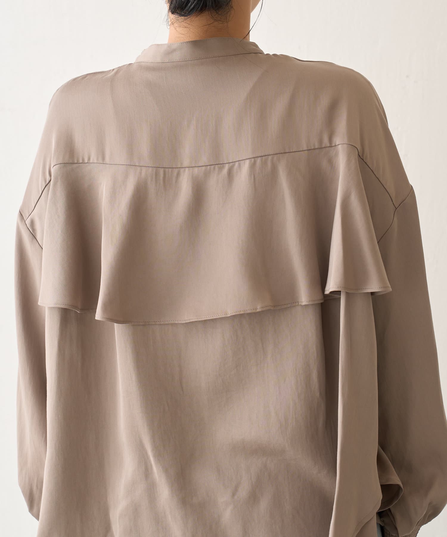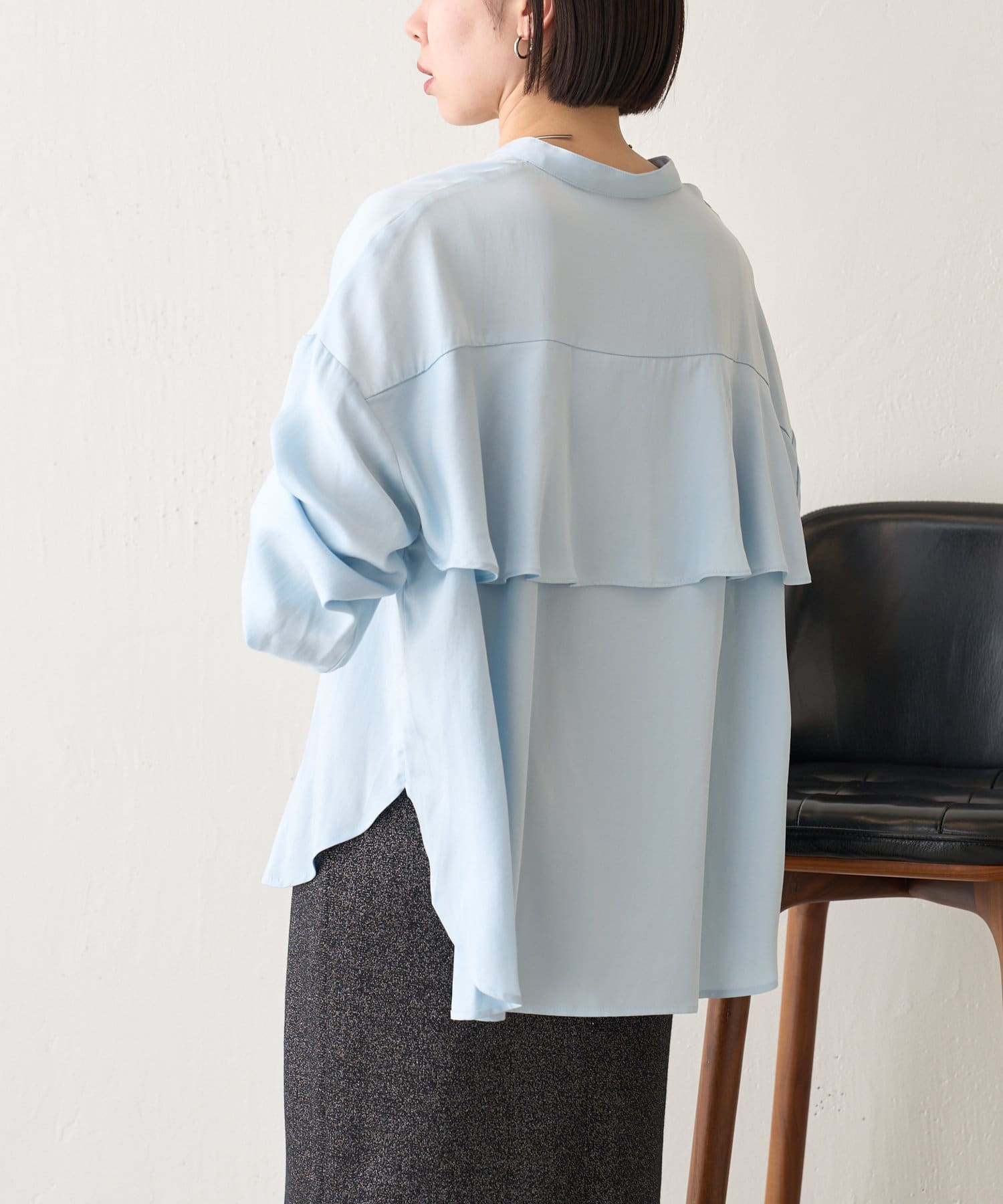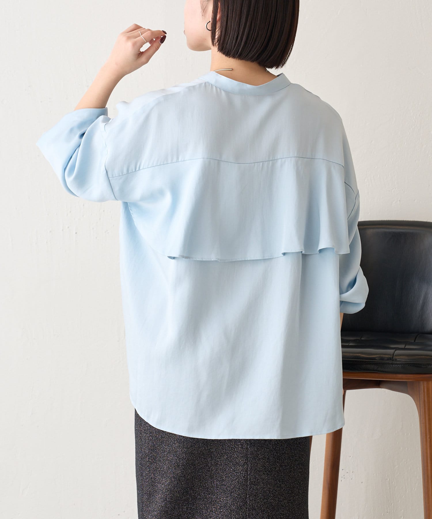 後ろフリルトロミシャツ