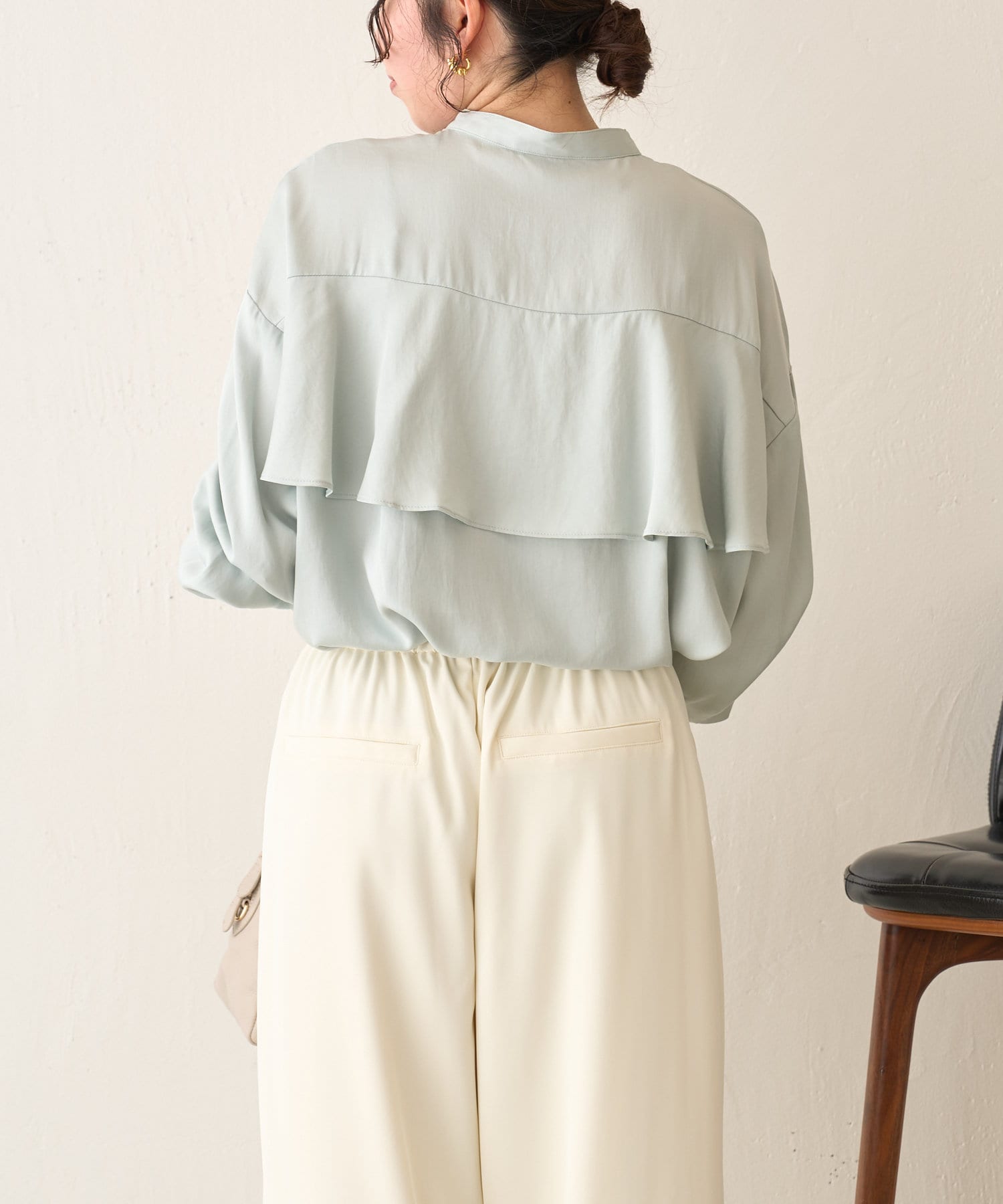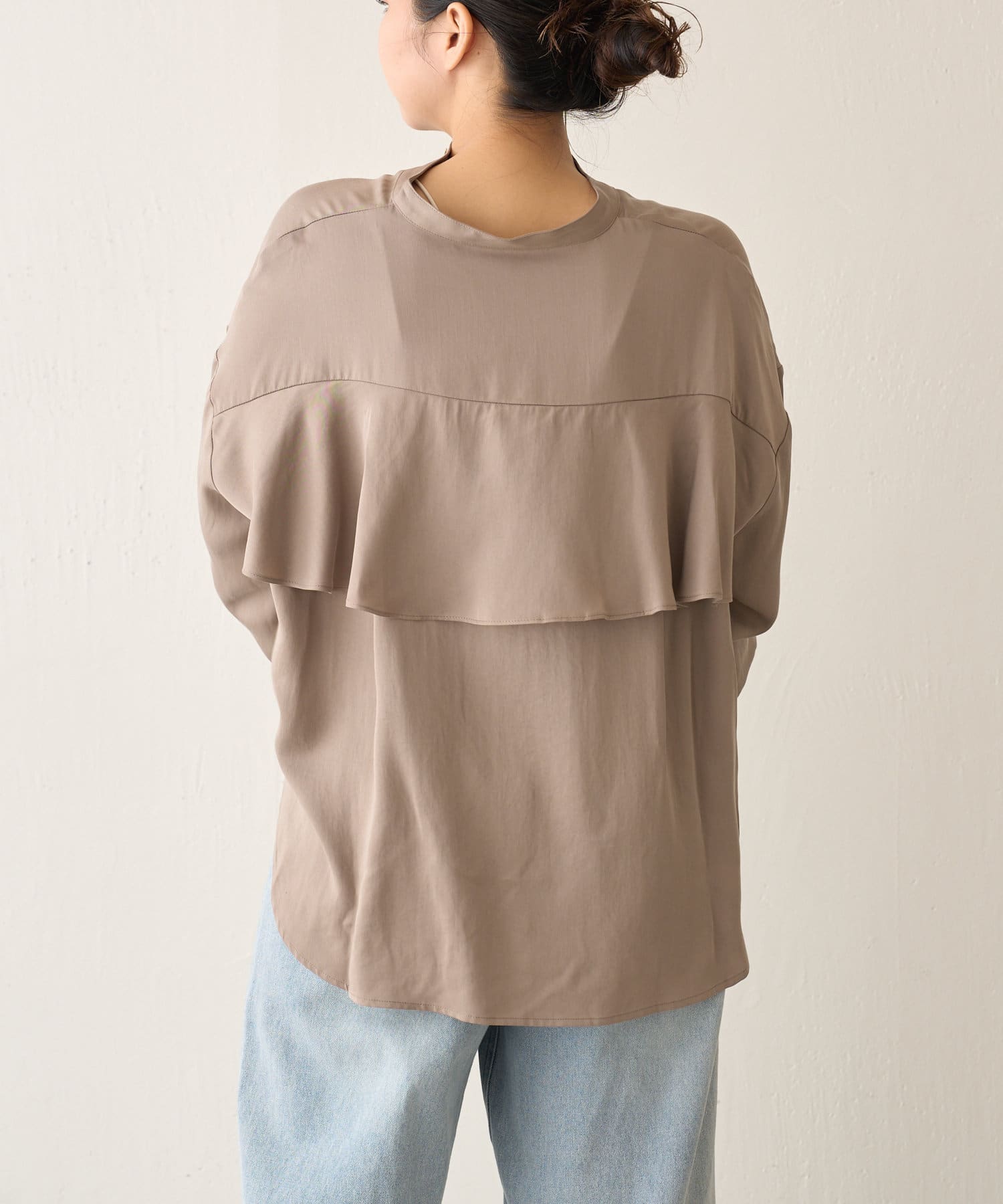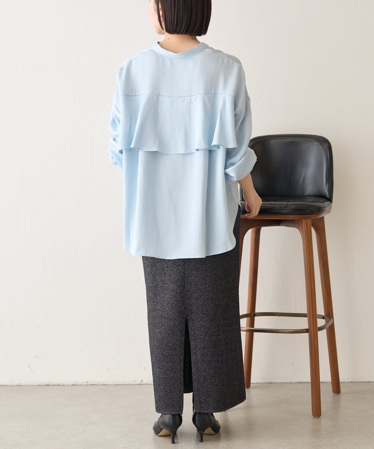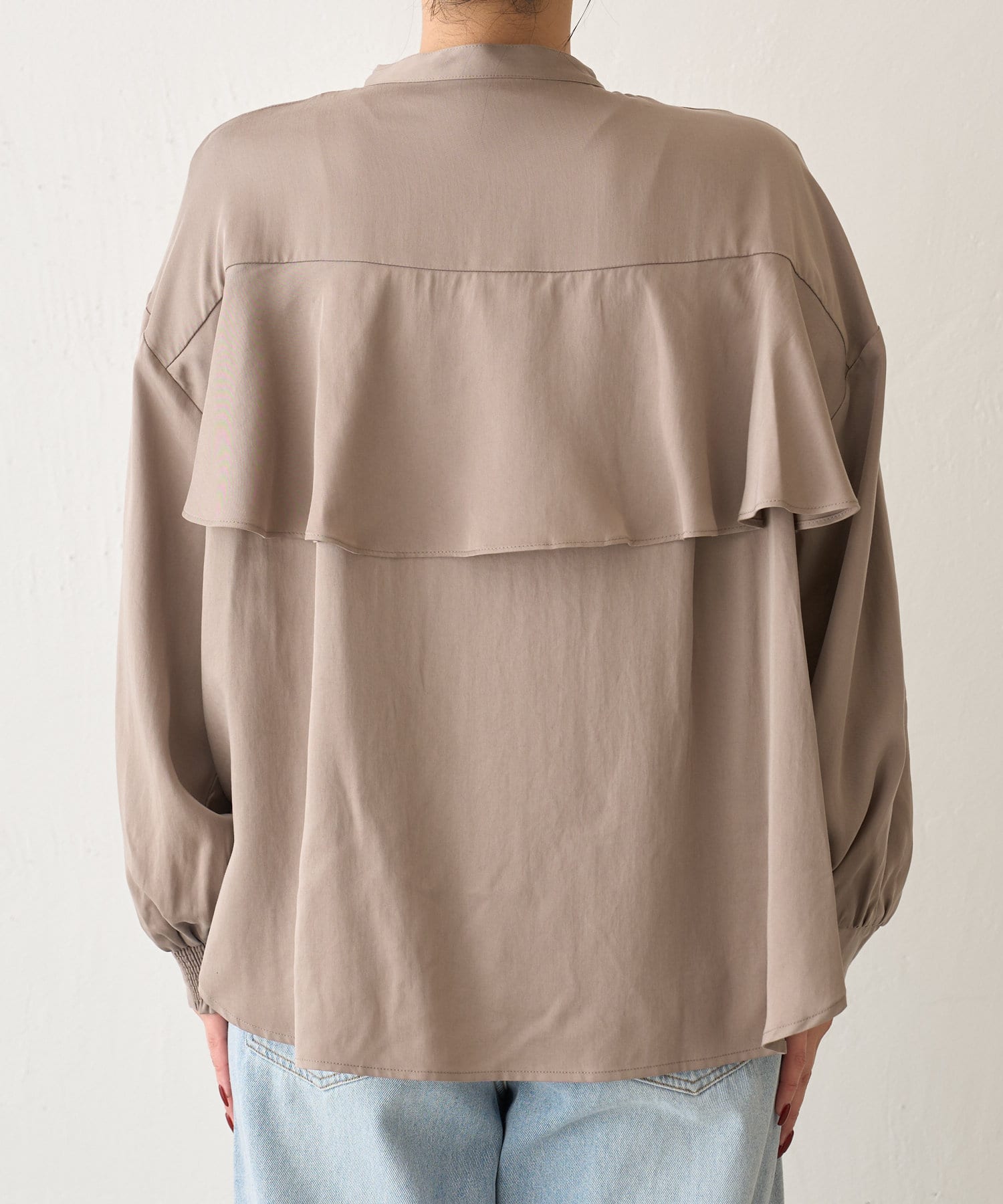 後ろフリルトロミシャツ