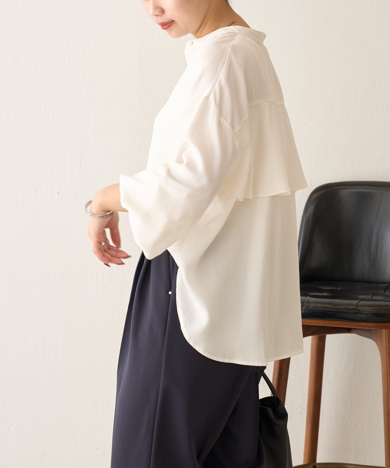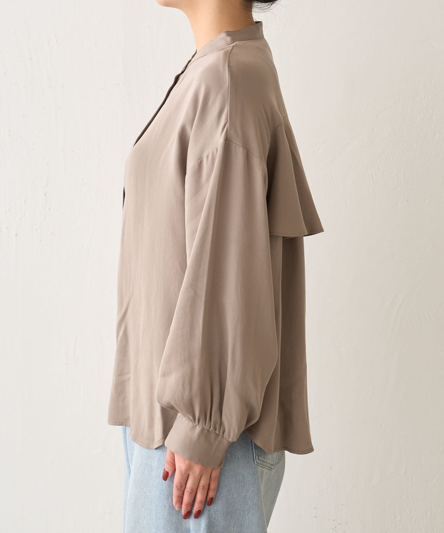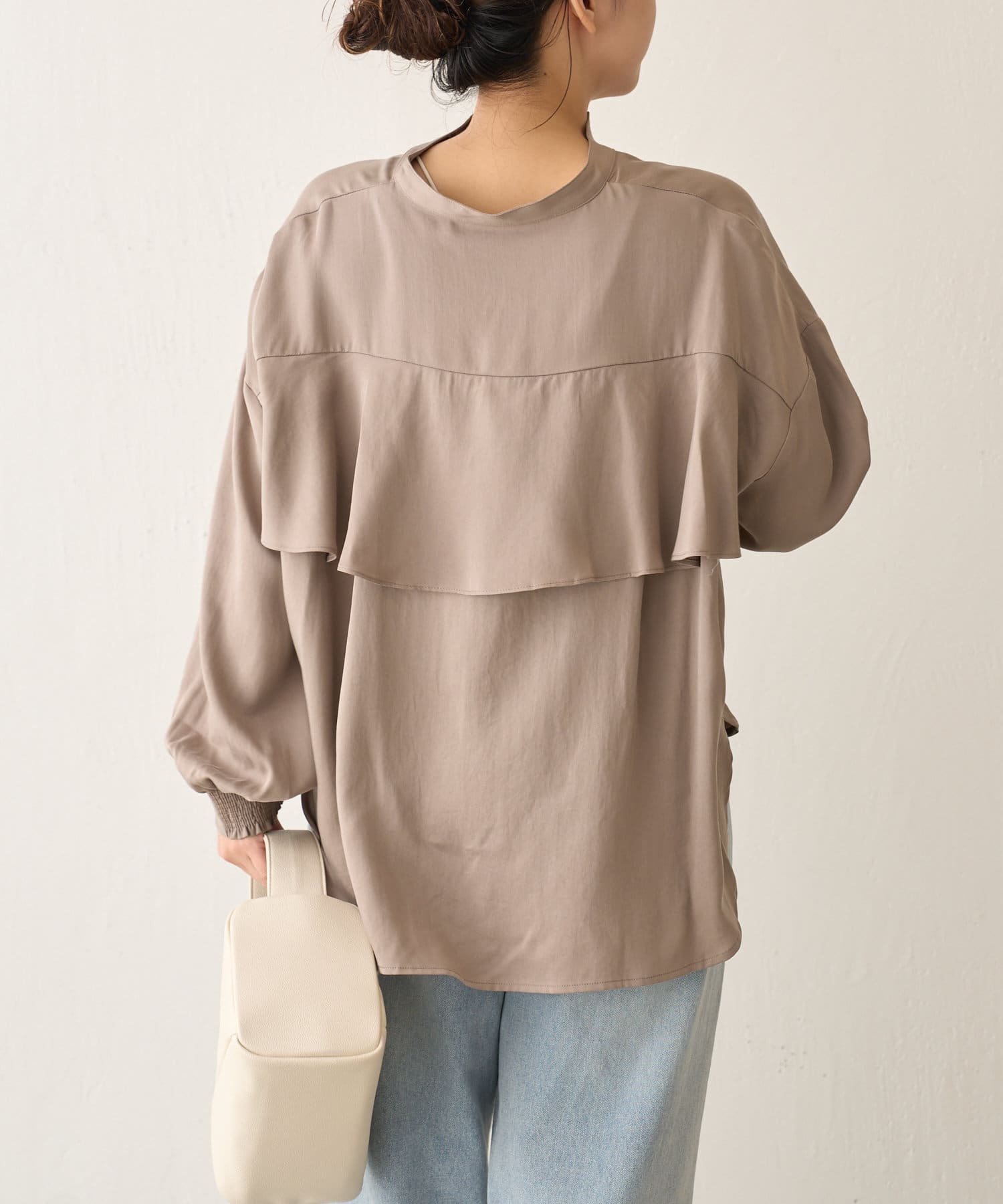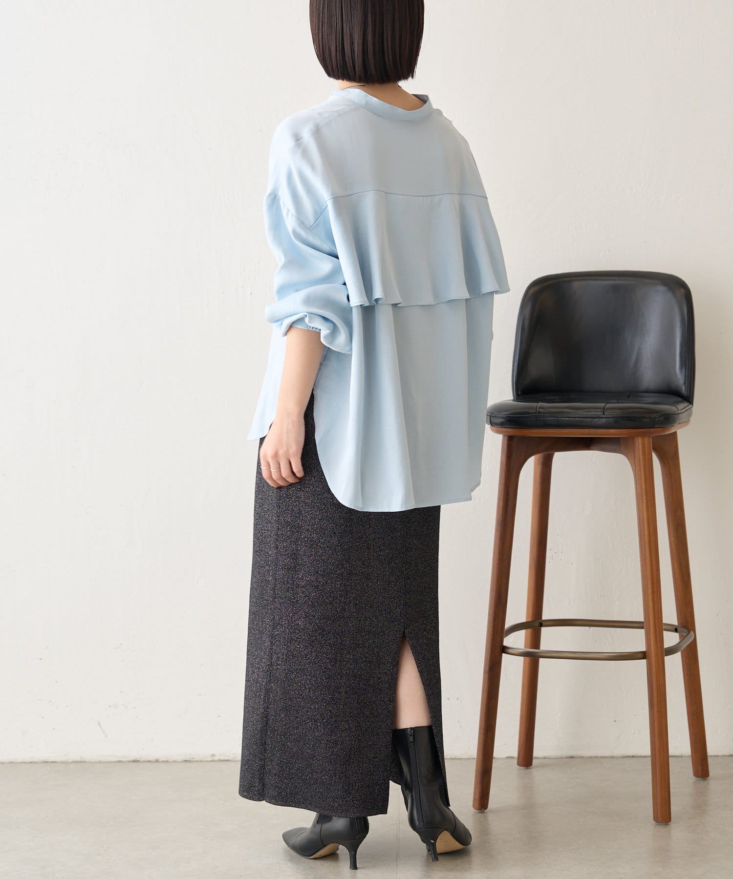 後ろフリルトロミシャツ