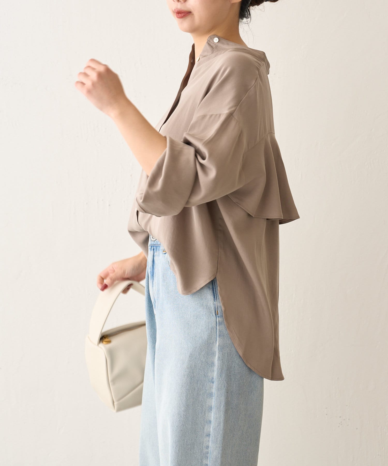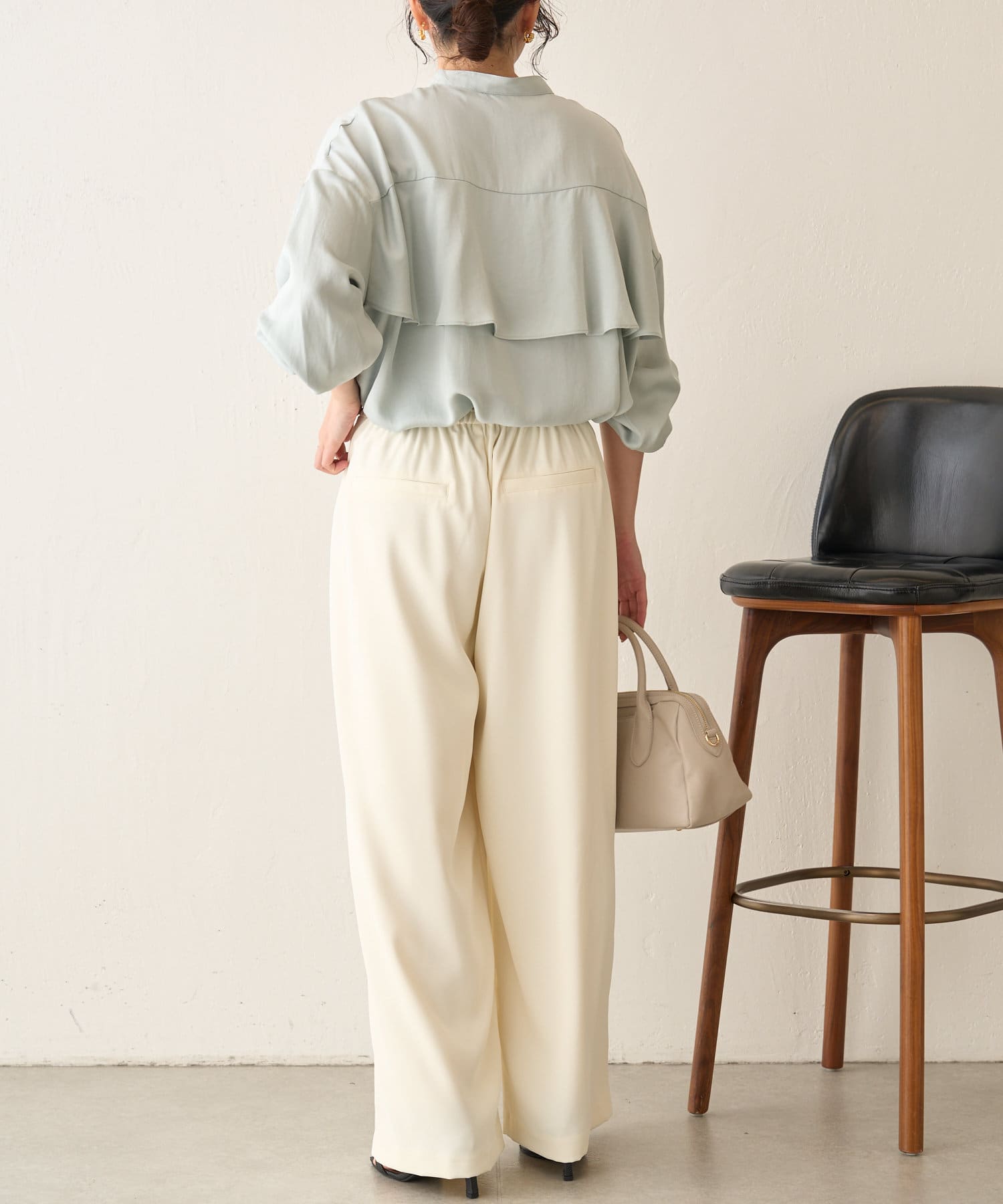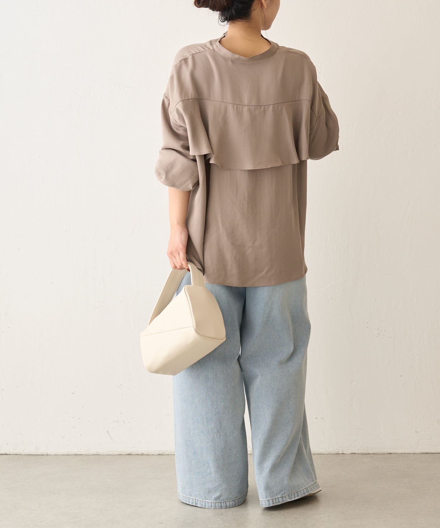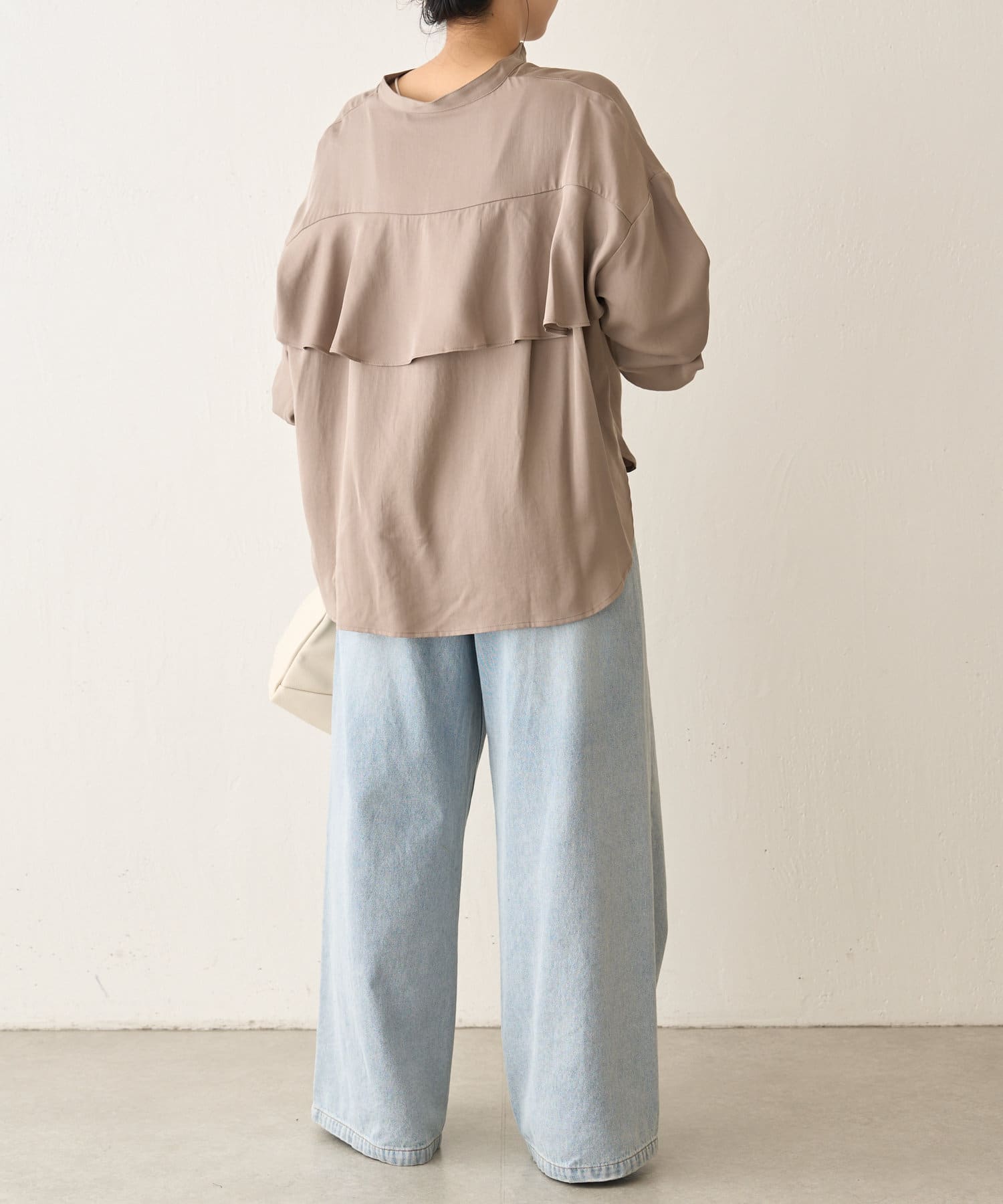 後ろフリルトロミシャツ