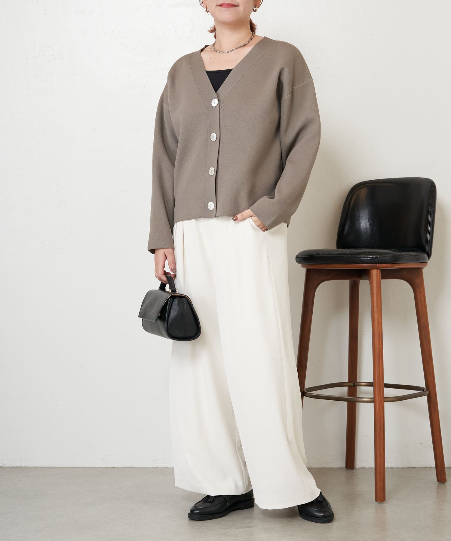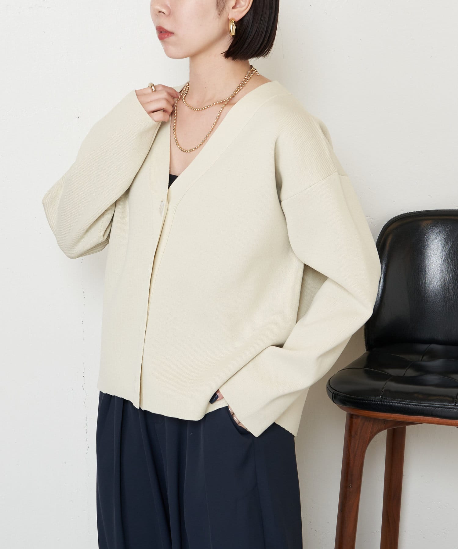 ・大きめのボタンがアクセントになったカーディガン。
