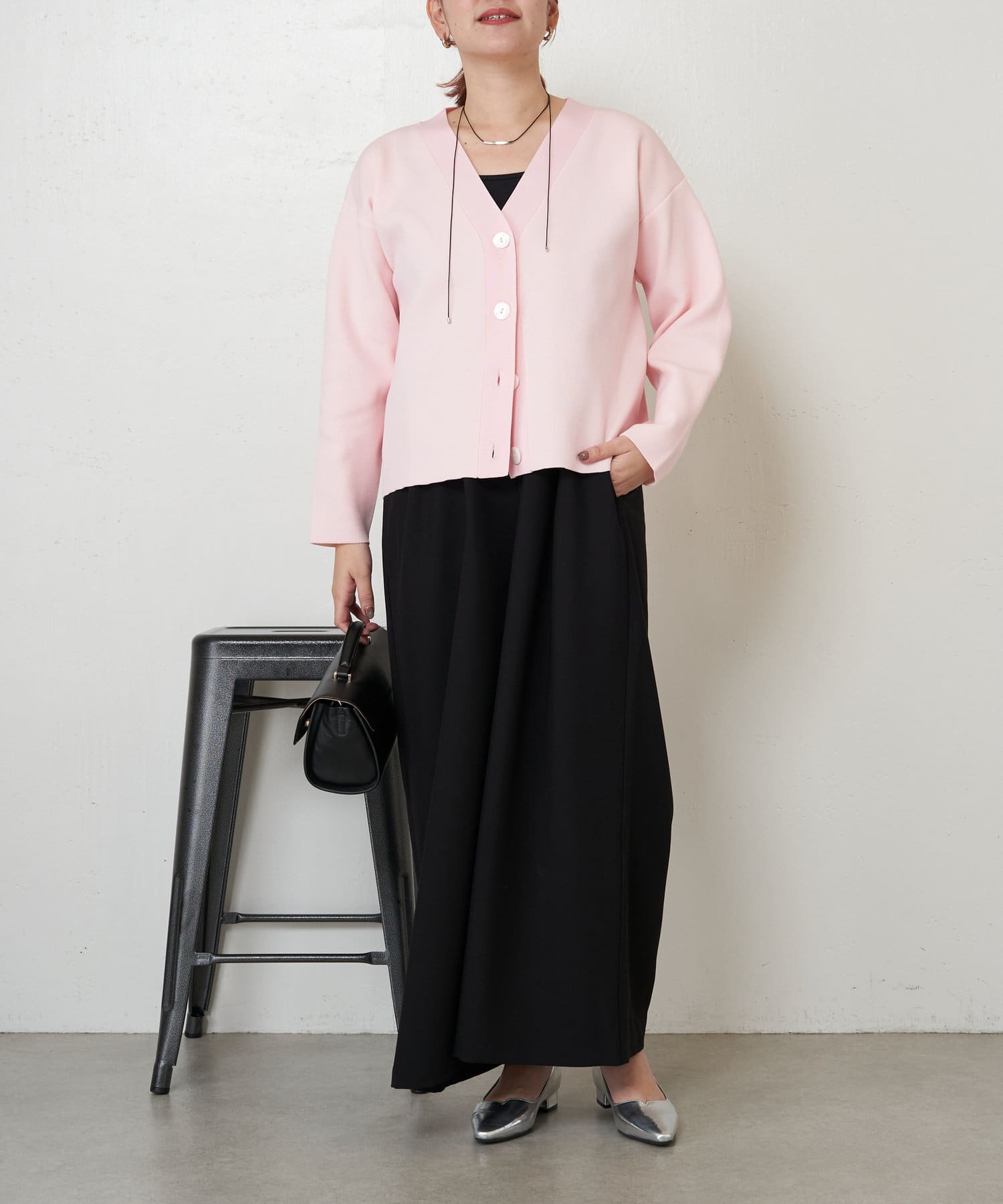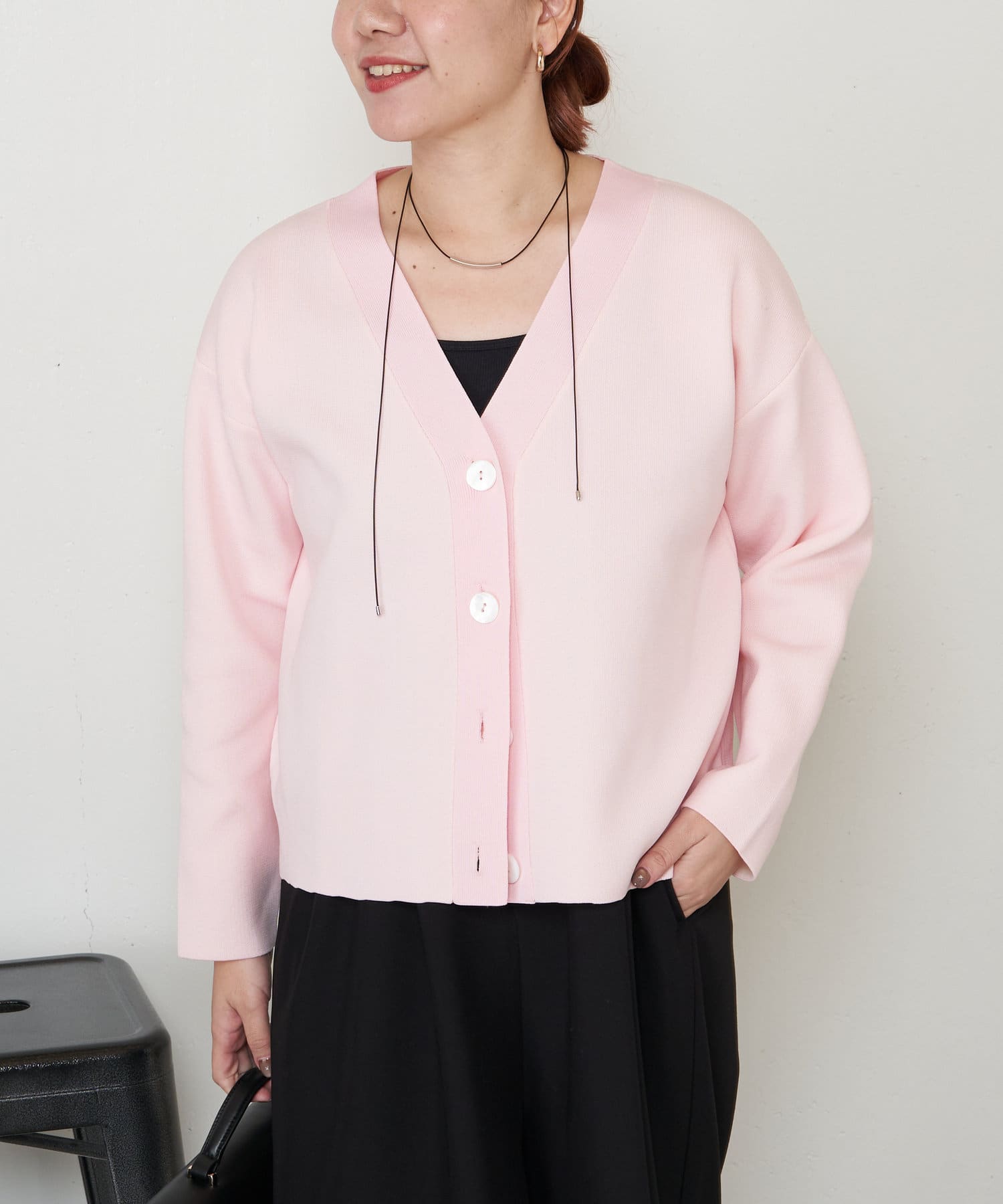 シェルボタンスポンジカーディガン