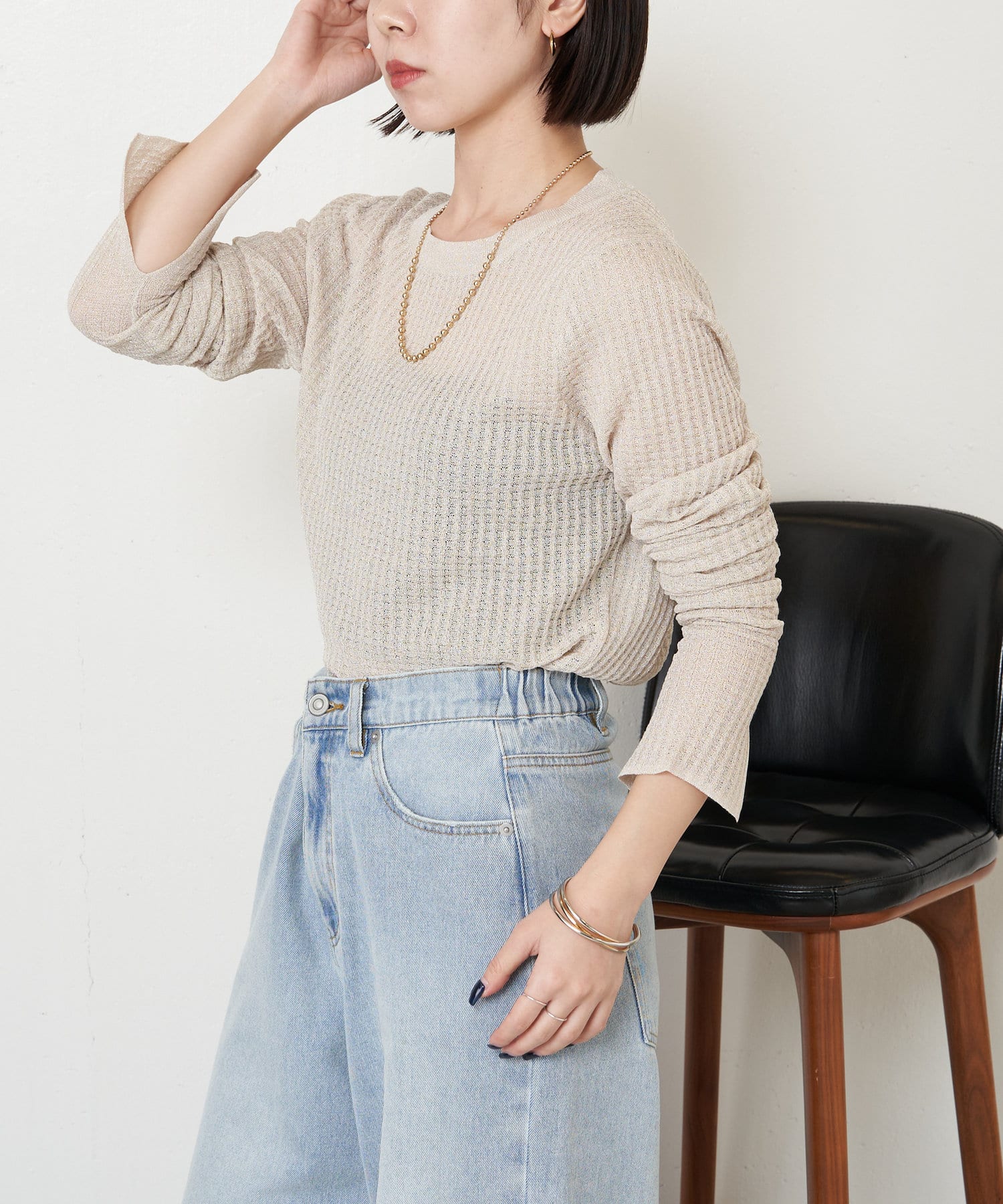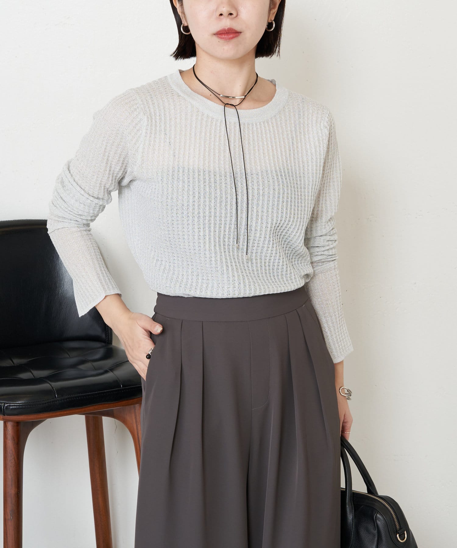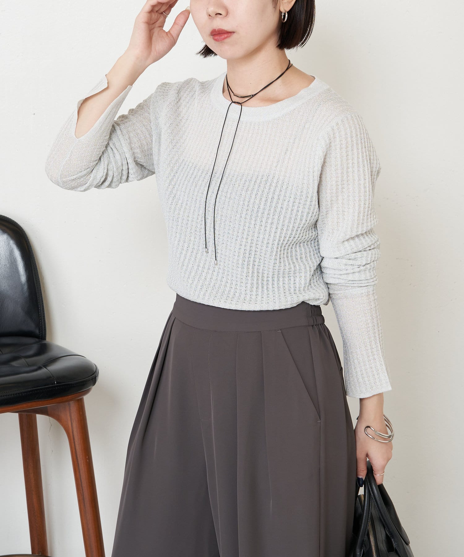 ・さりげないチェック柄と程よい透け感が、旬なムードを漂わせる一枚。