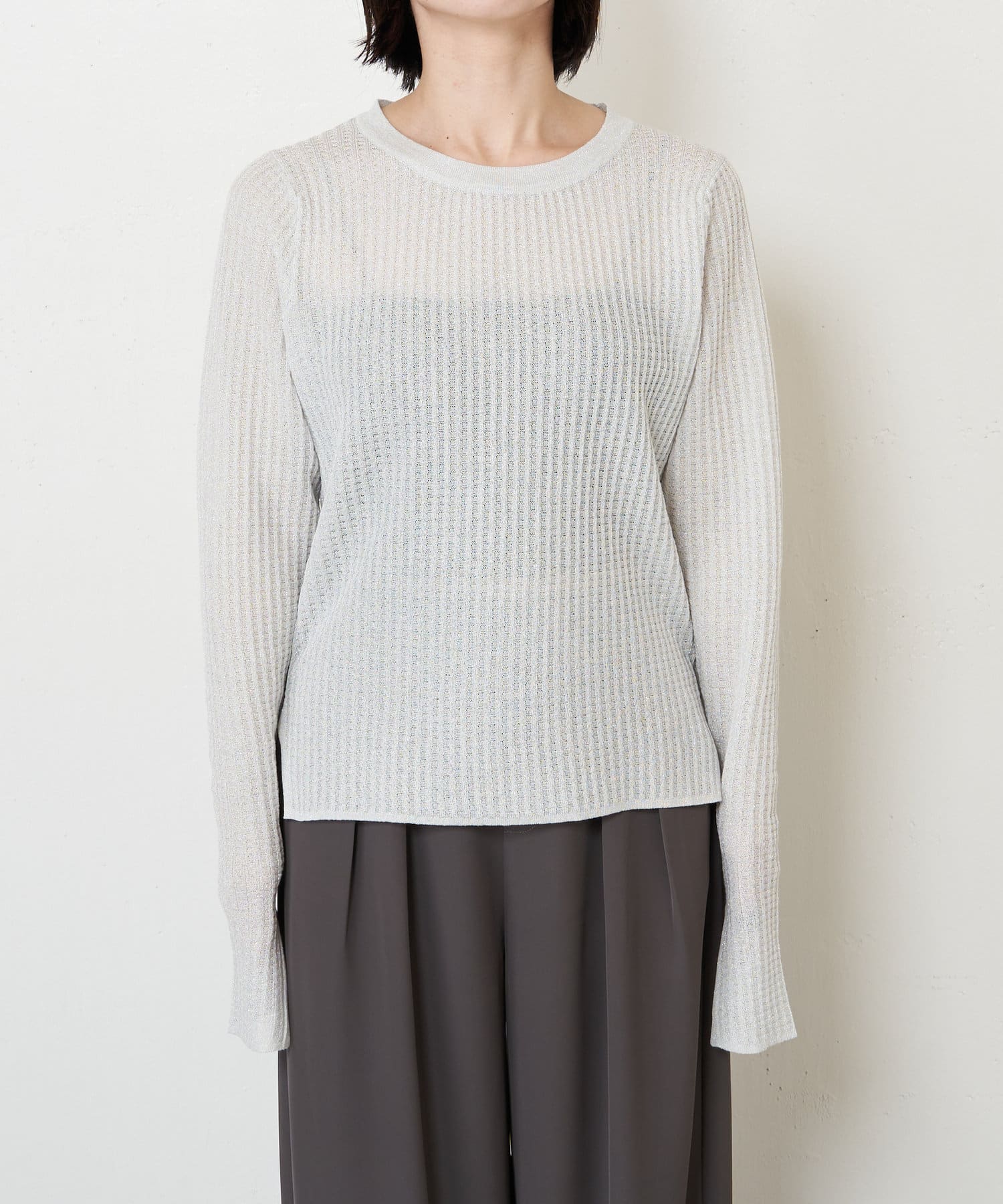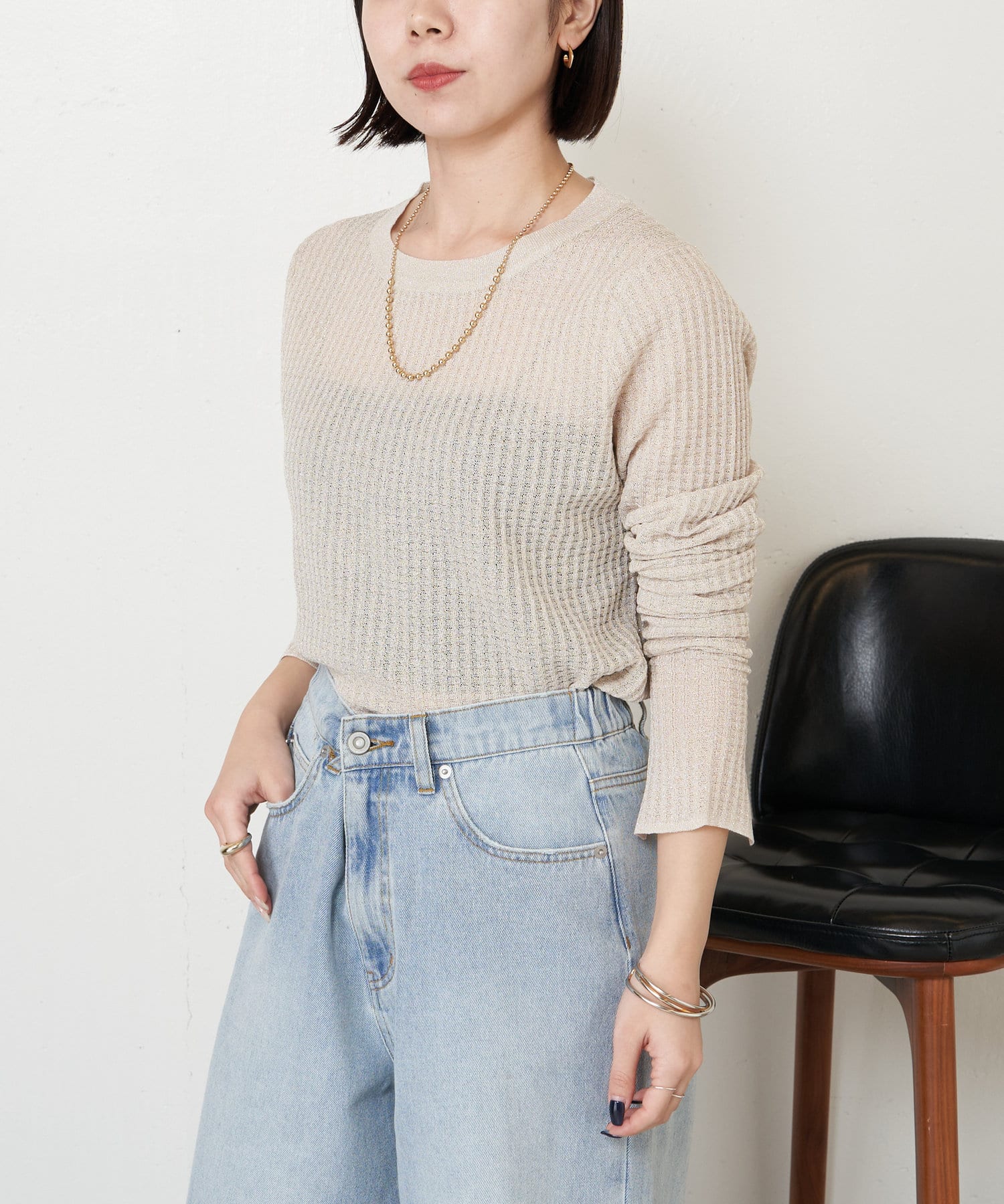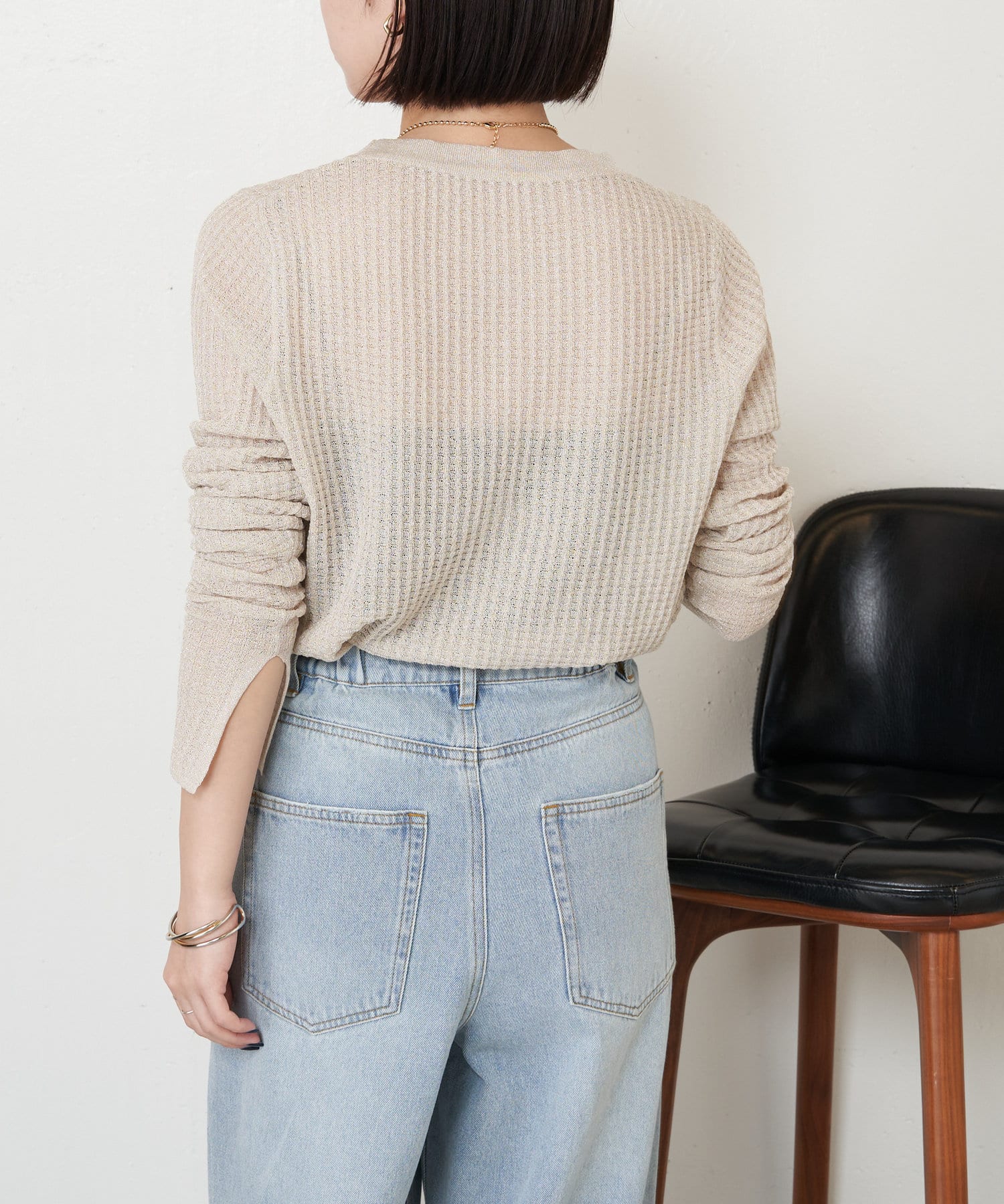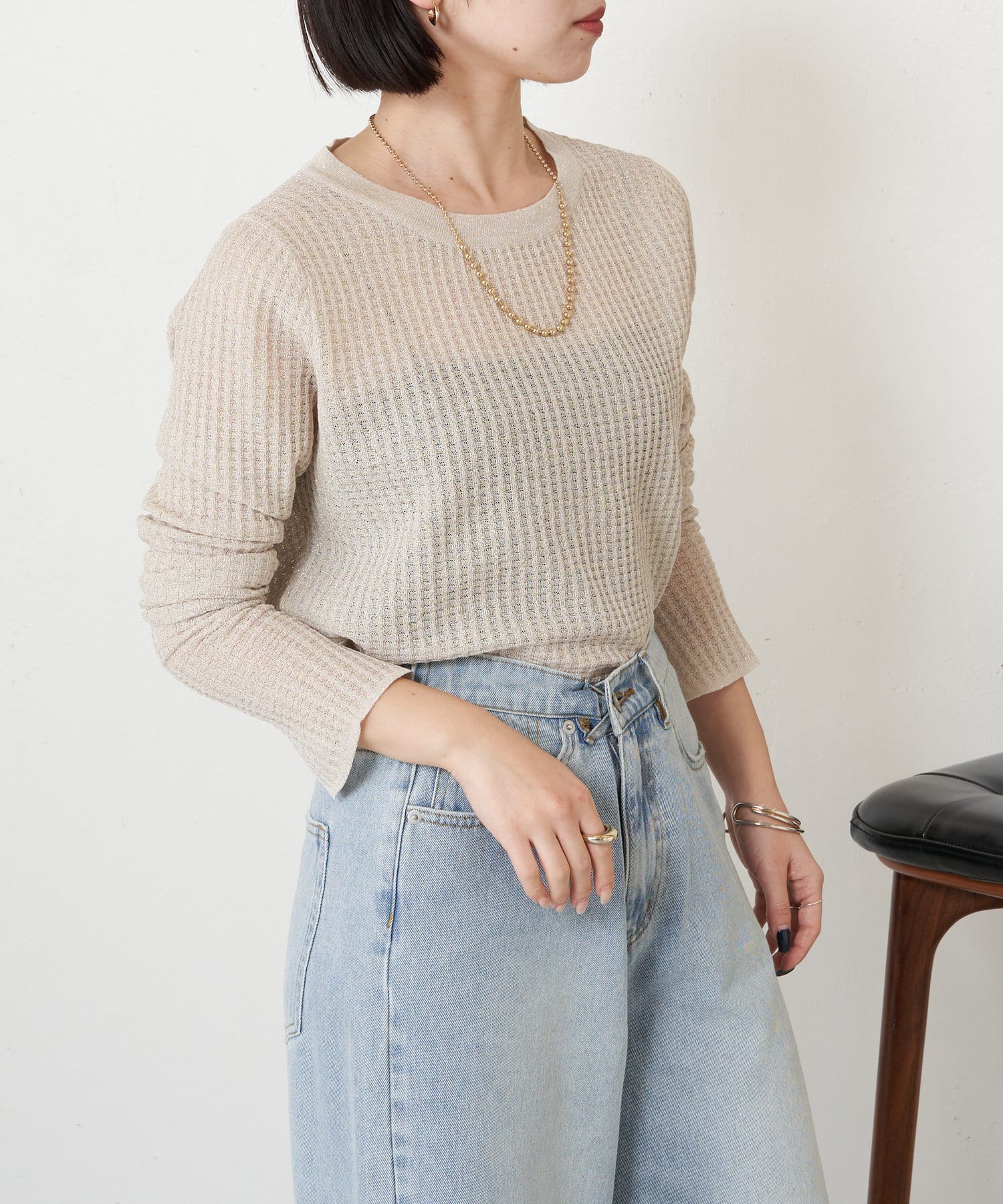 ・さりげないチェック柄と程よい透け感が、旬なムードを漂わせる一枚。