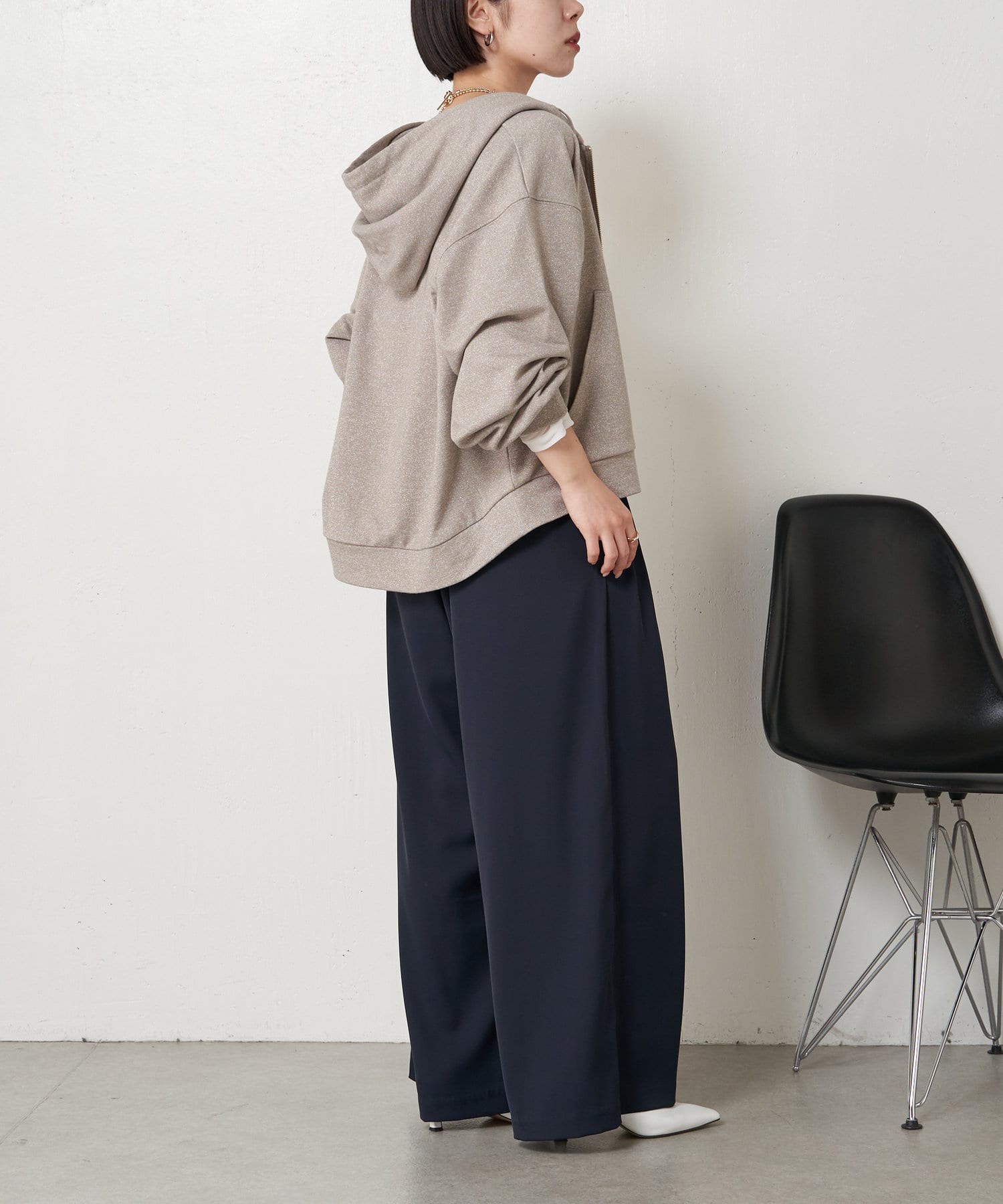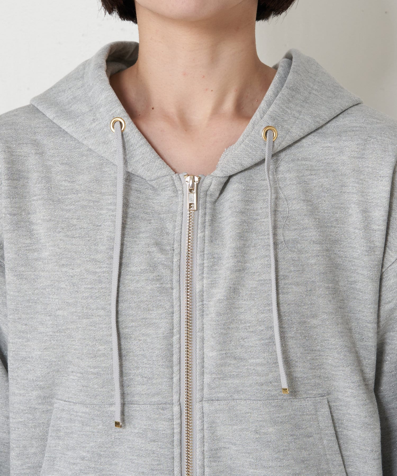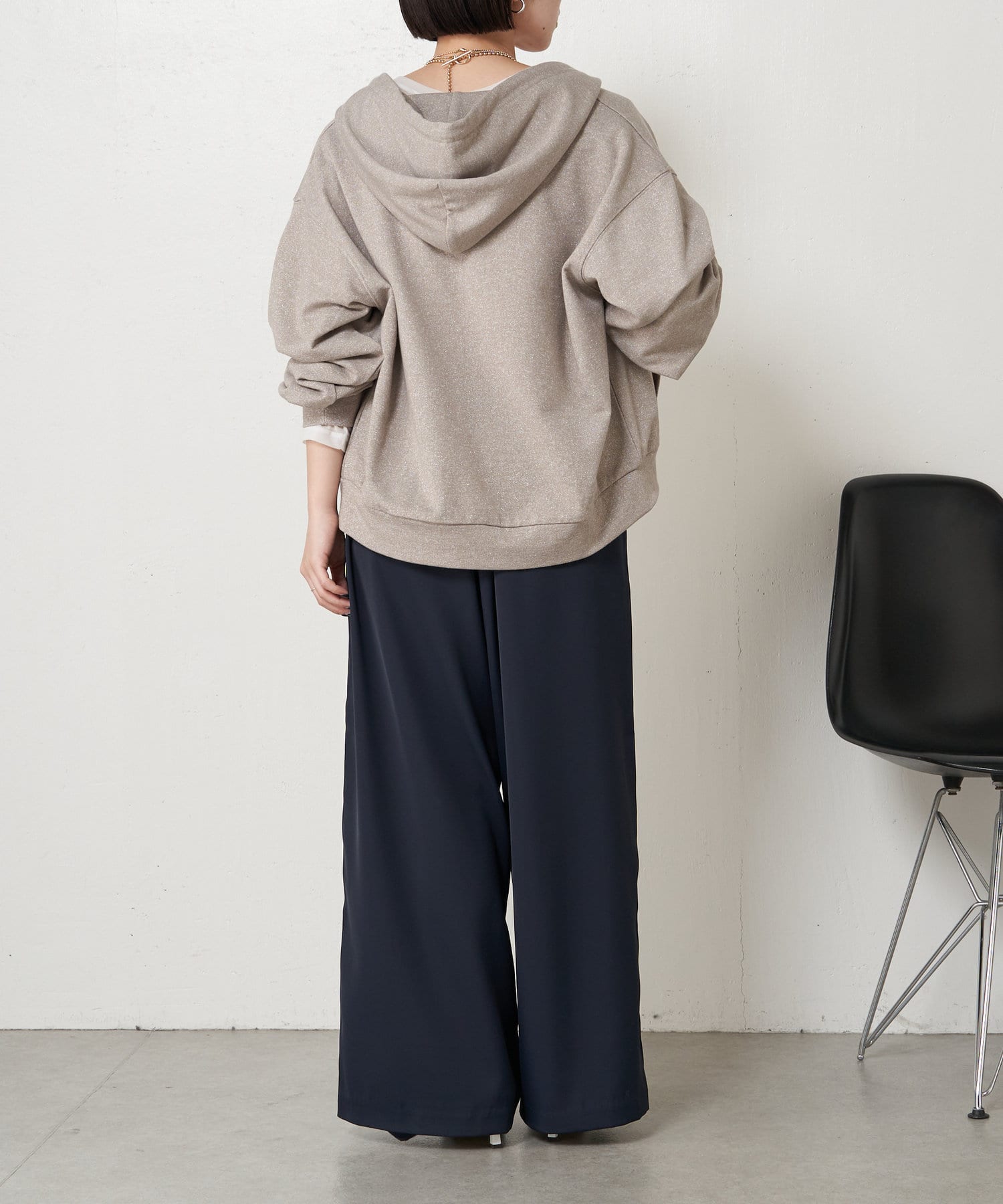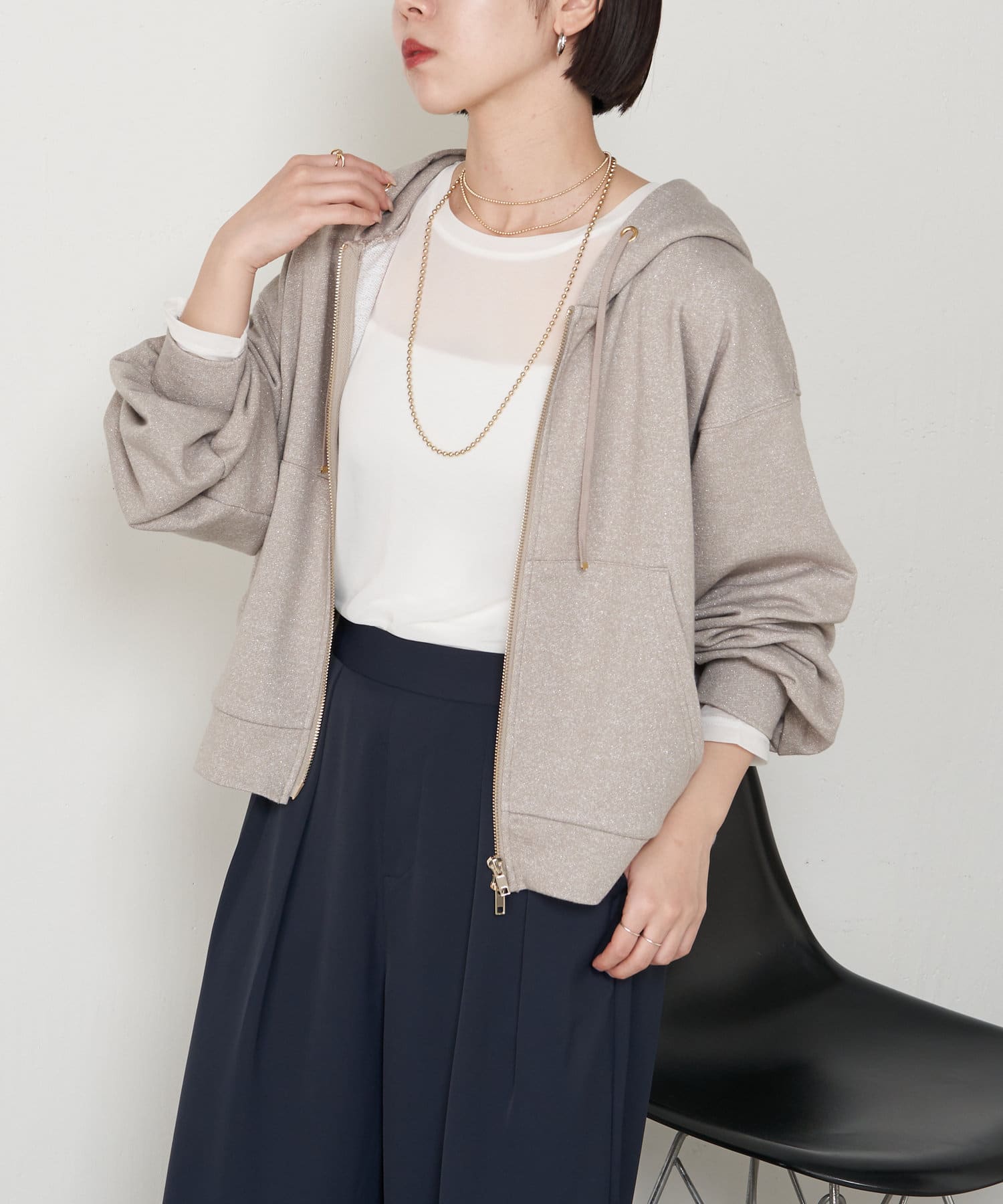 ・キラッと光るラメがカジュアル過ぎないパーカー。