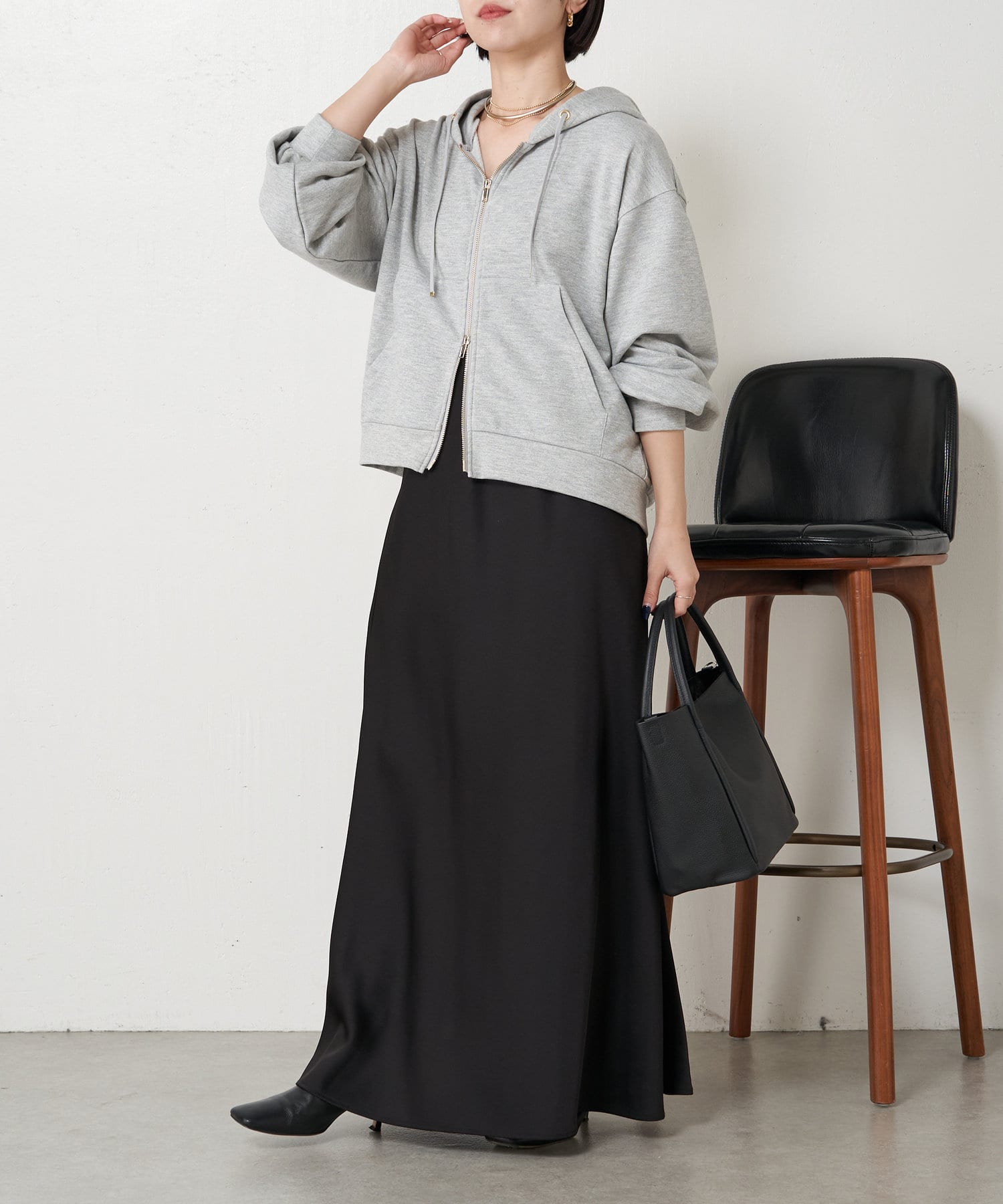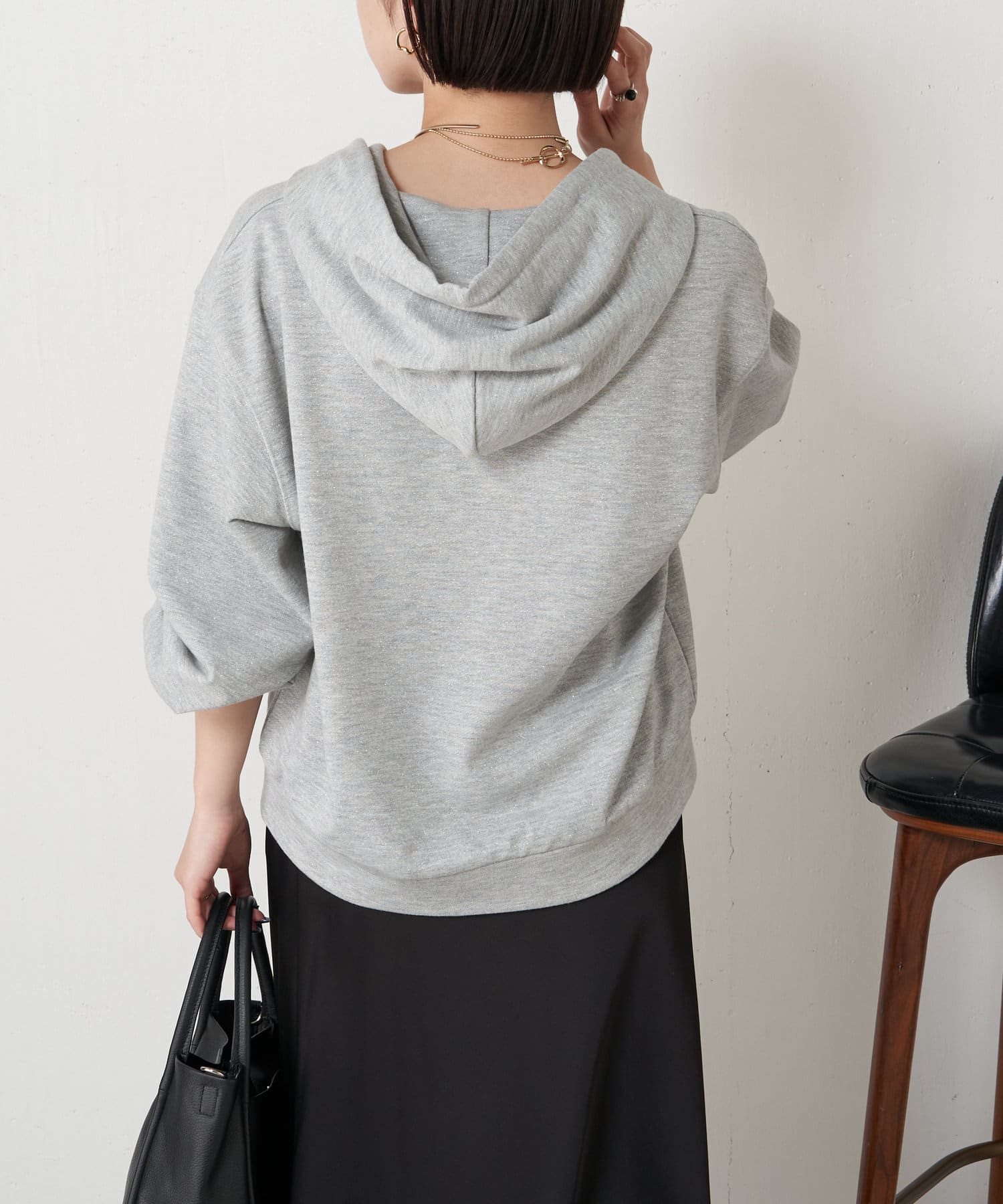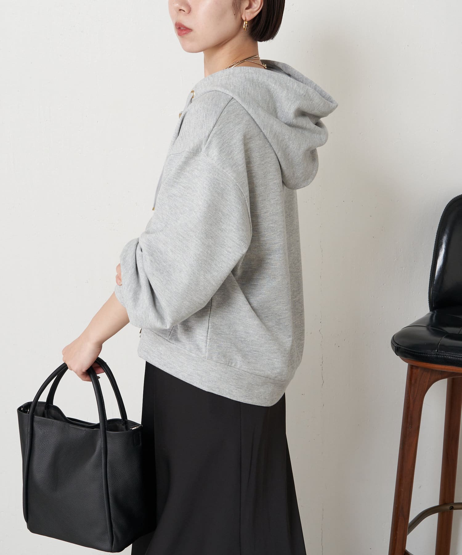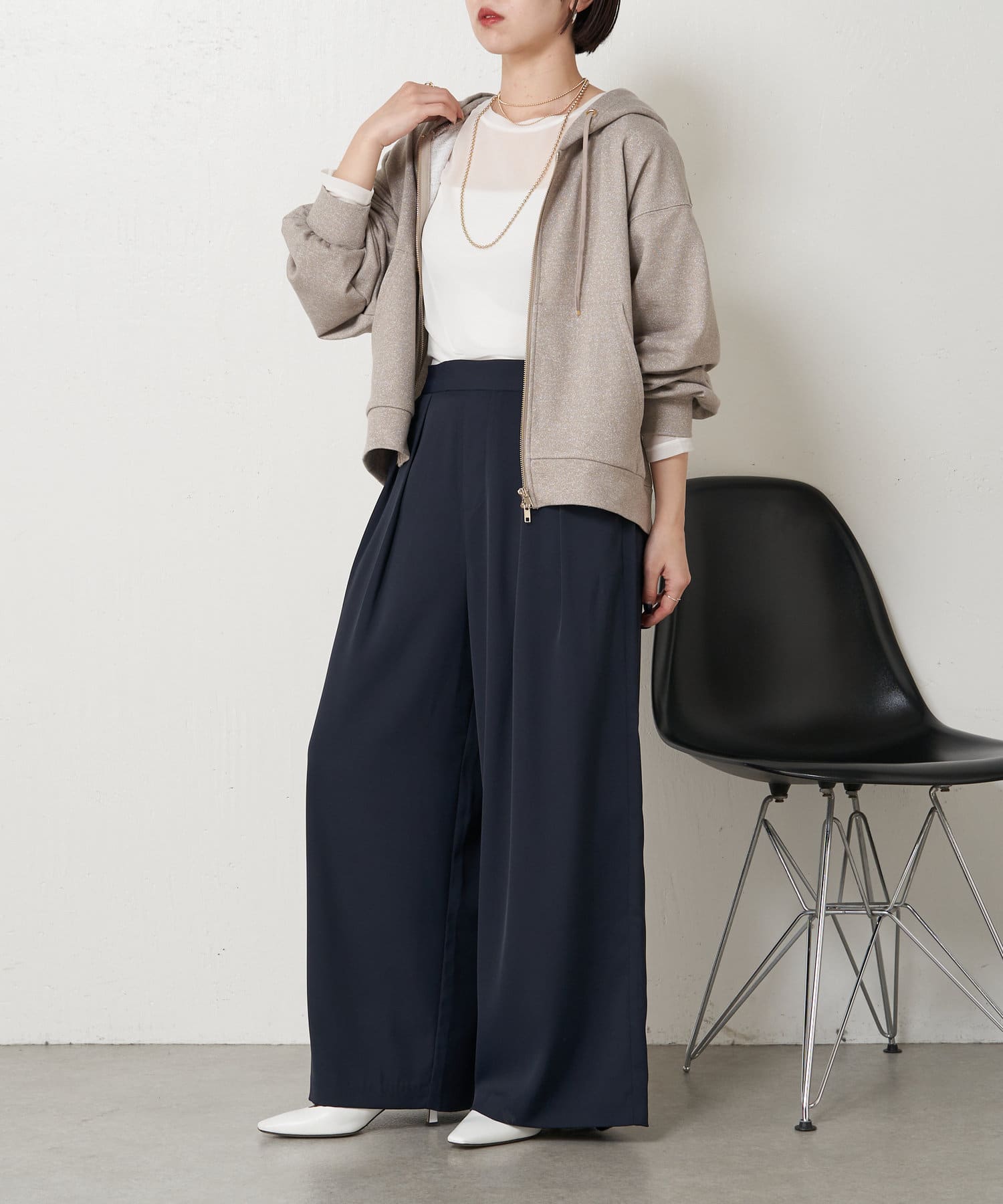 ・キラッと光るラメがカジュアル過ぎないパーカー。