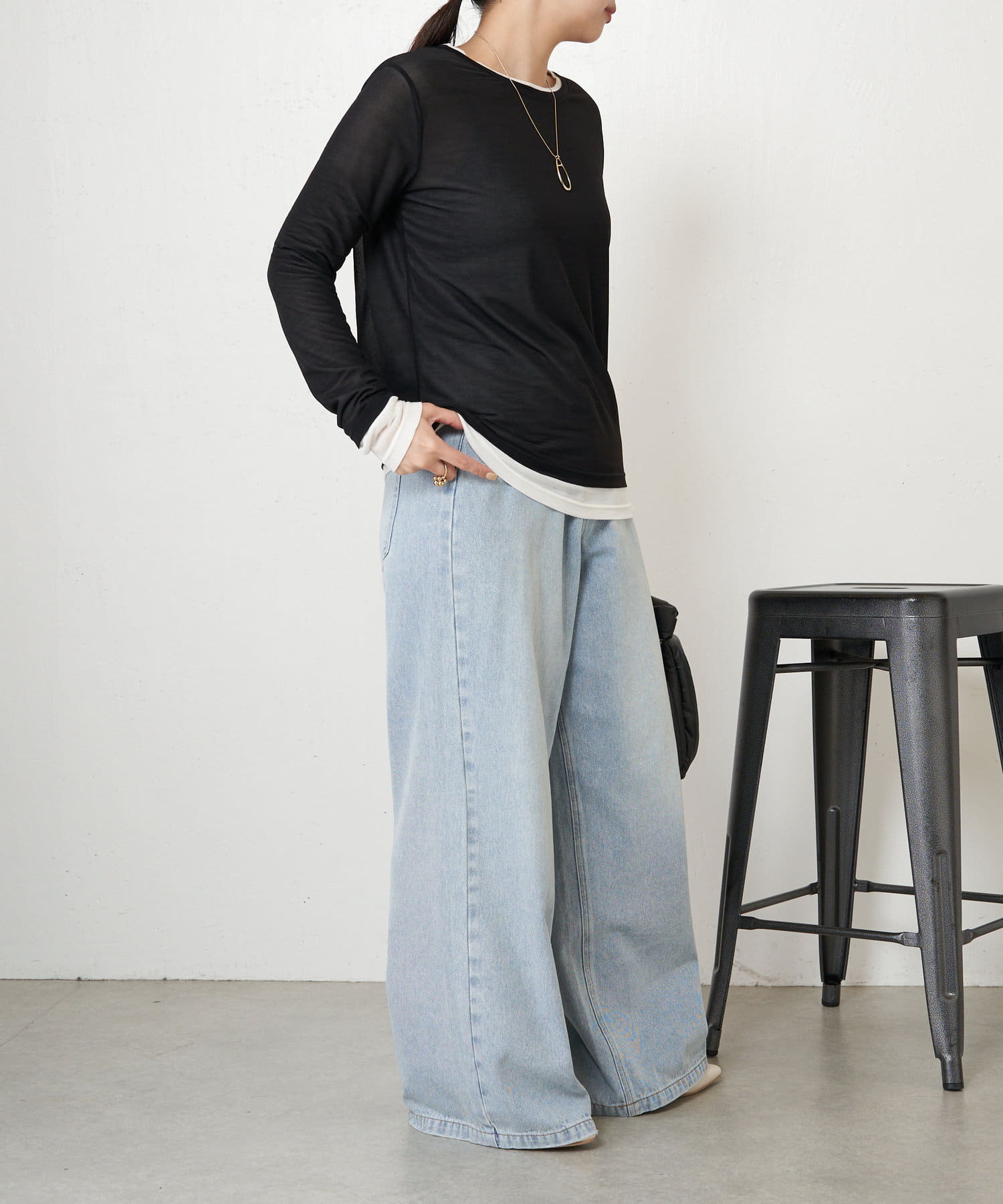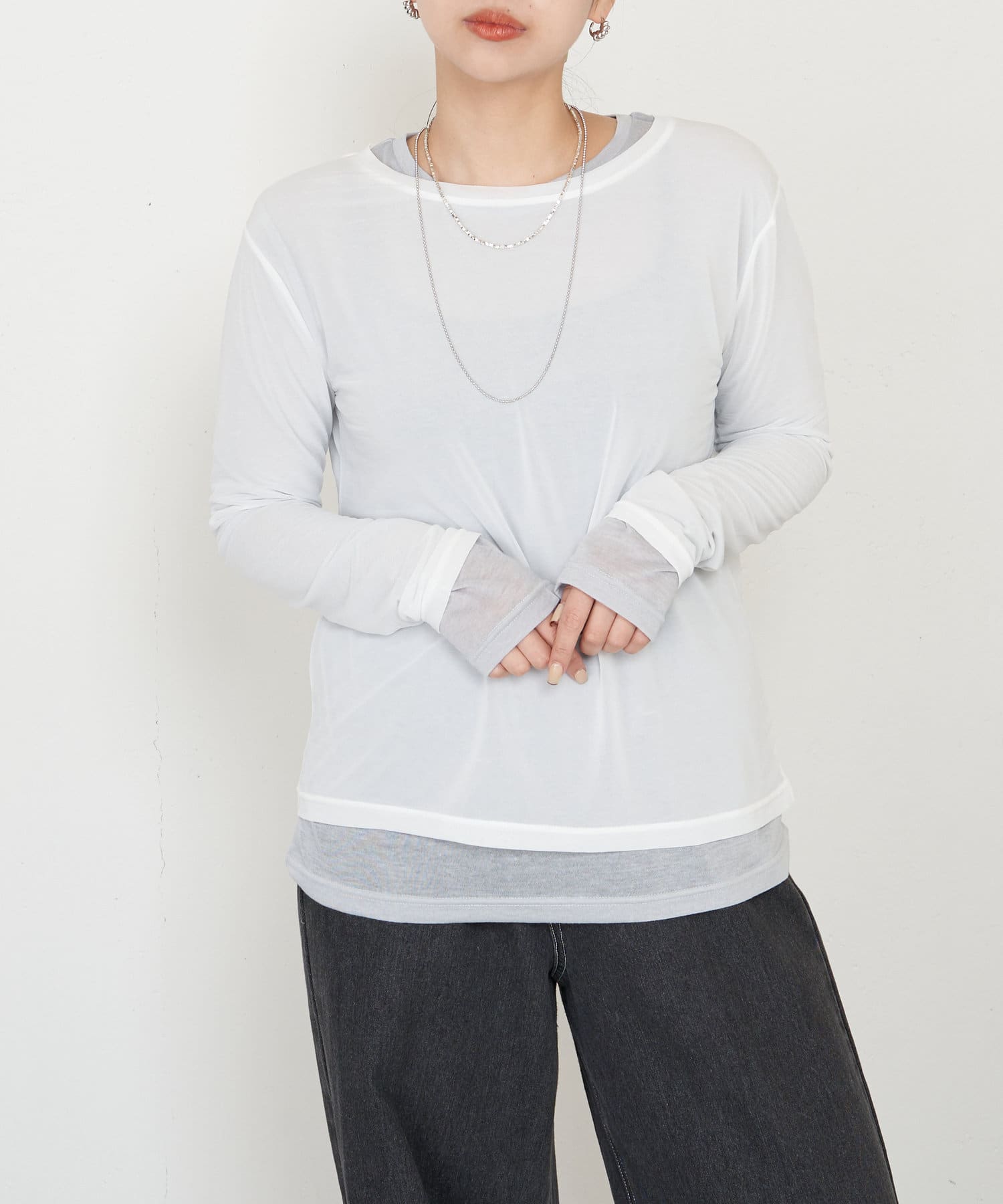 ・異なるカラーの2枚を重ねることで、こなれ感を演出。