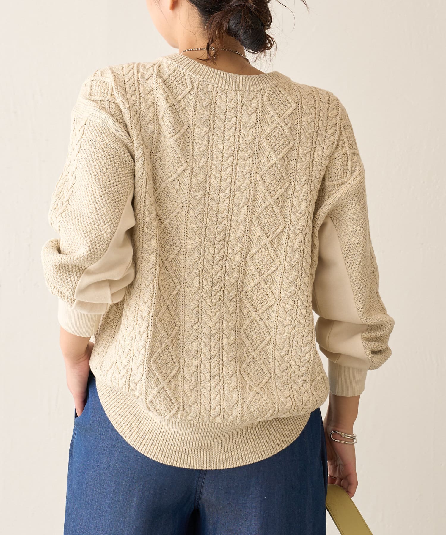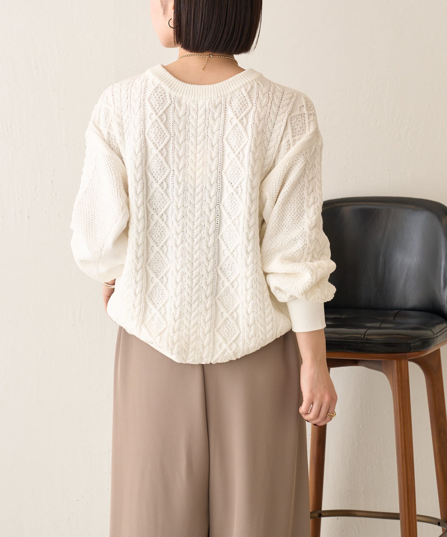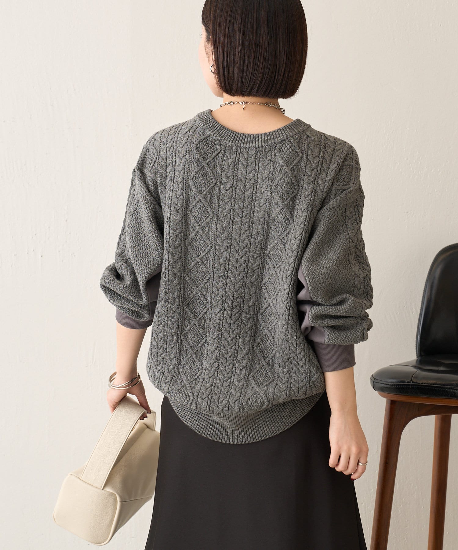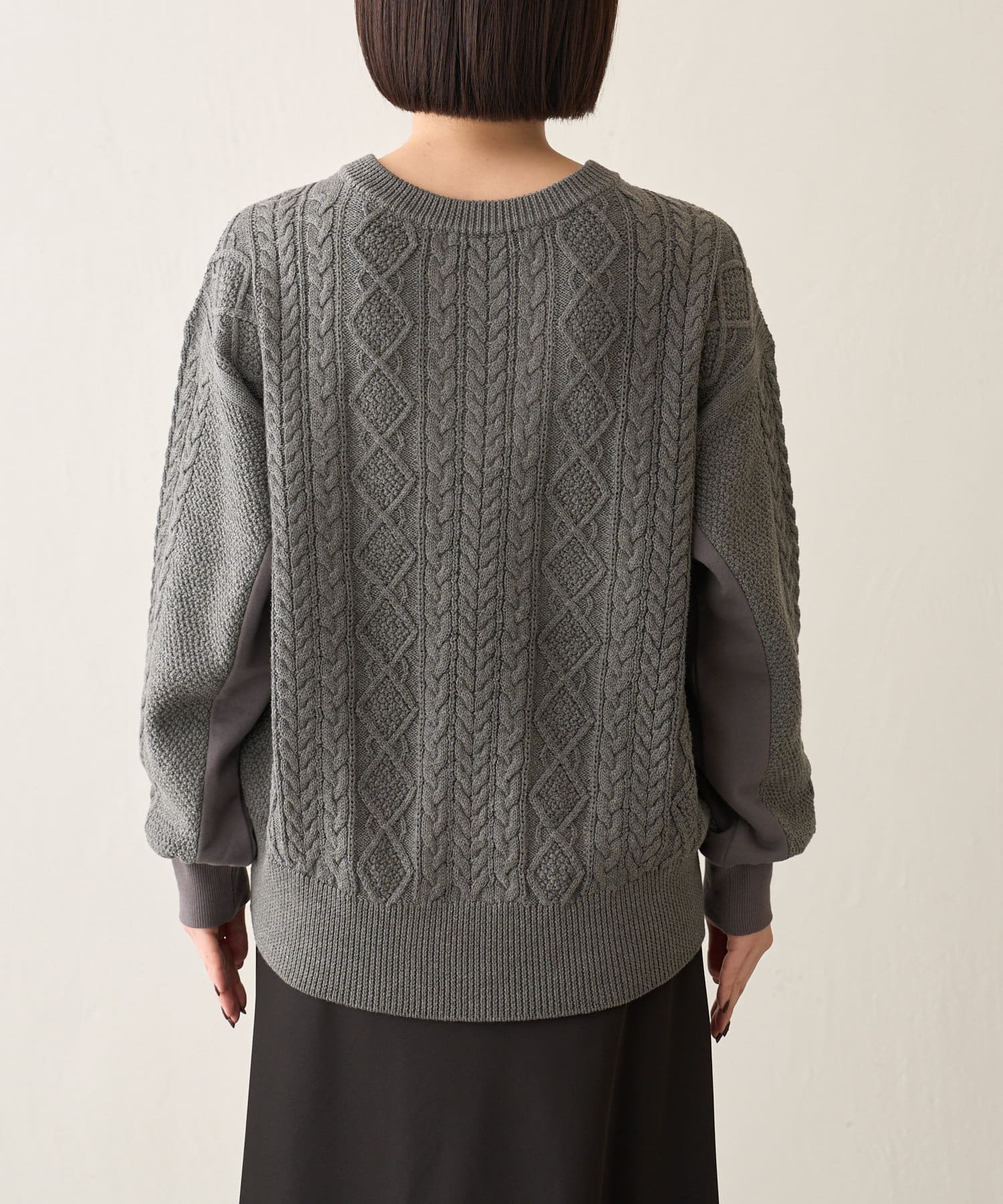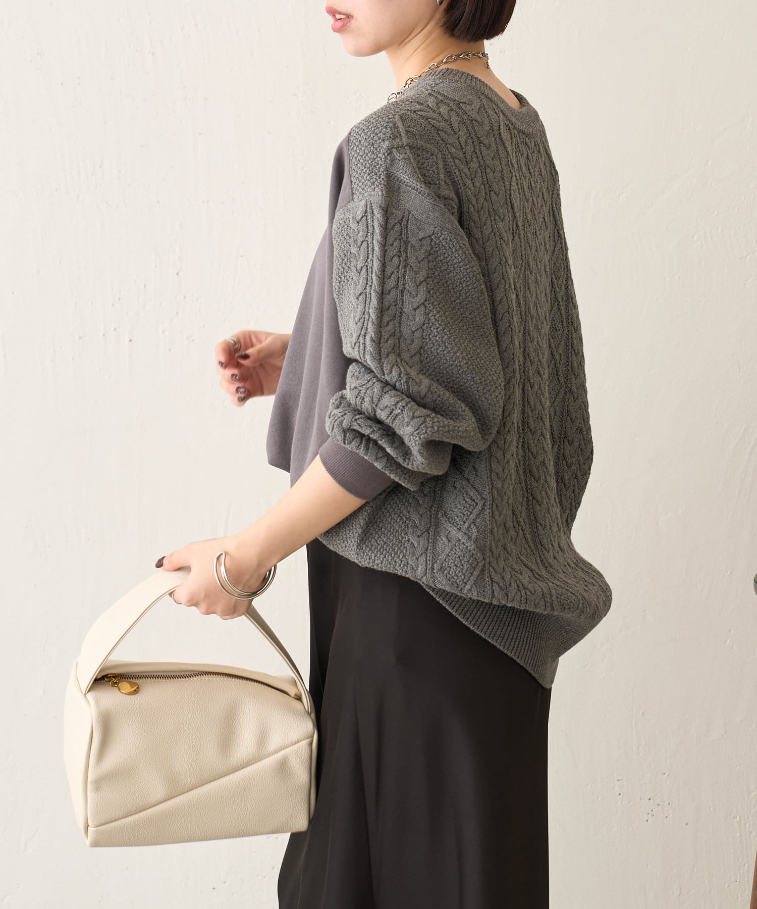 ・ケーブルニットとドッキングされた前後の大胆な切替が、他にはない一枚。