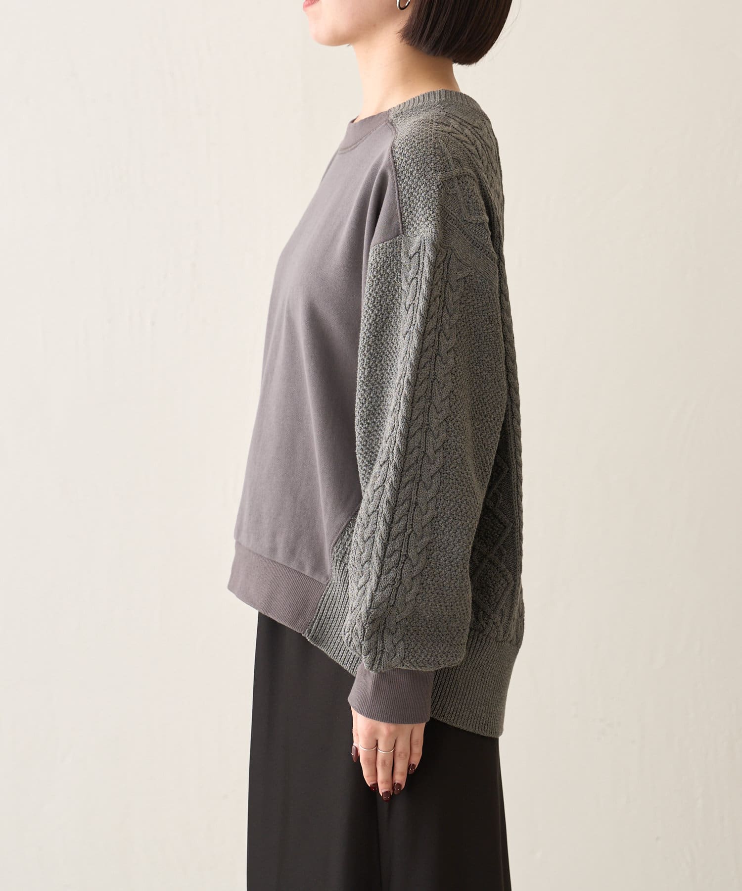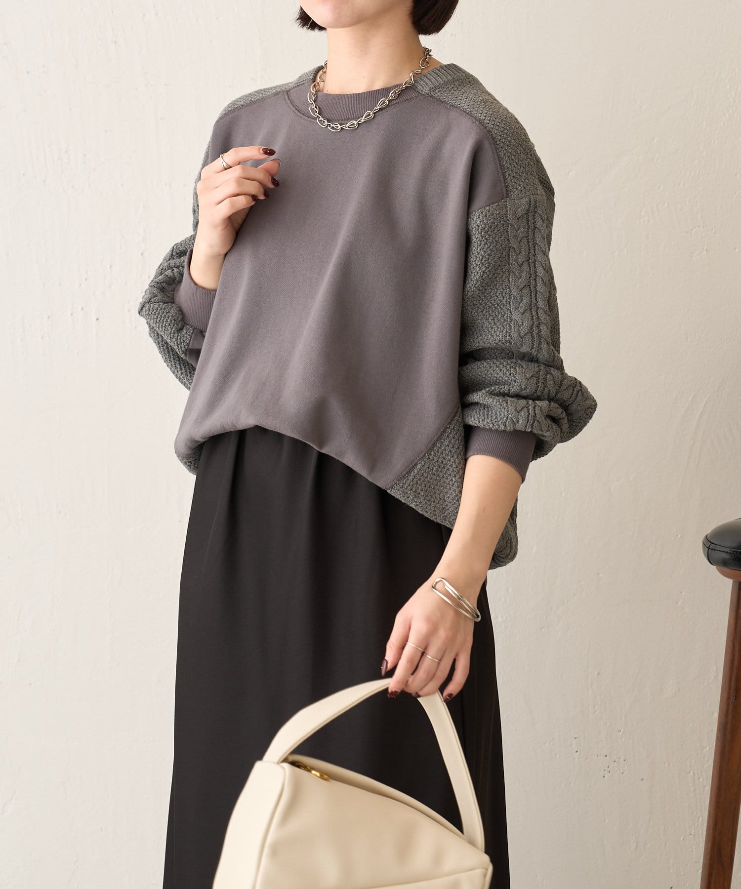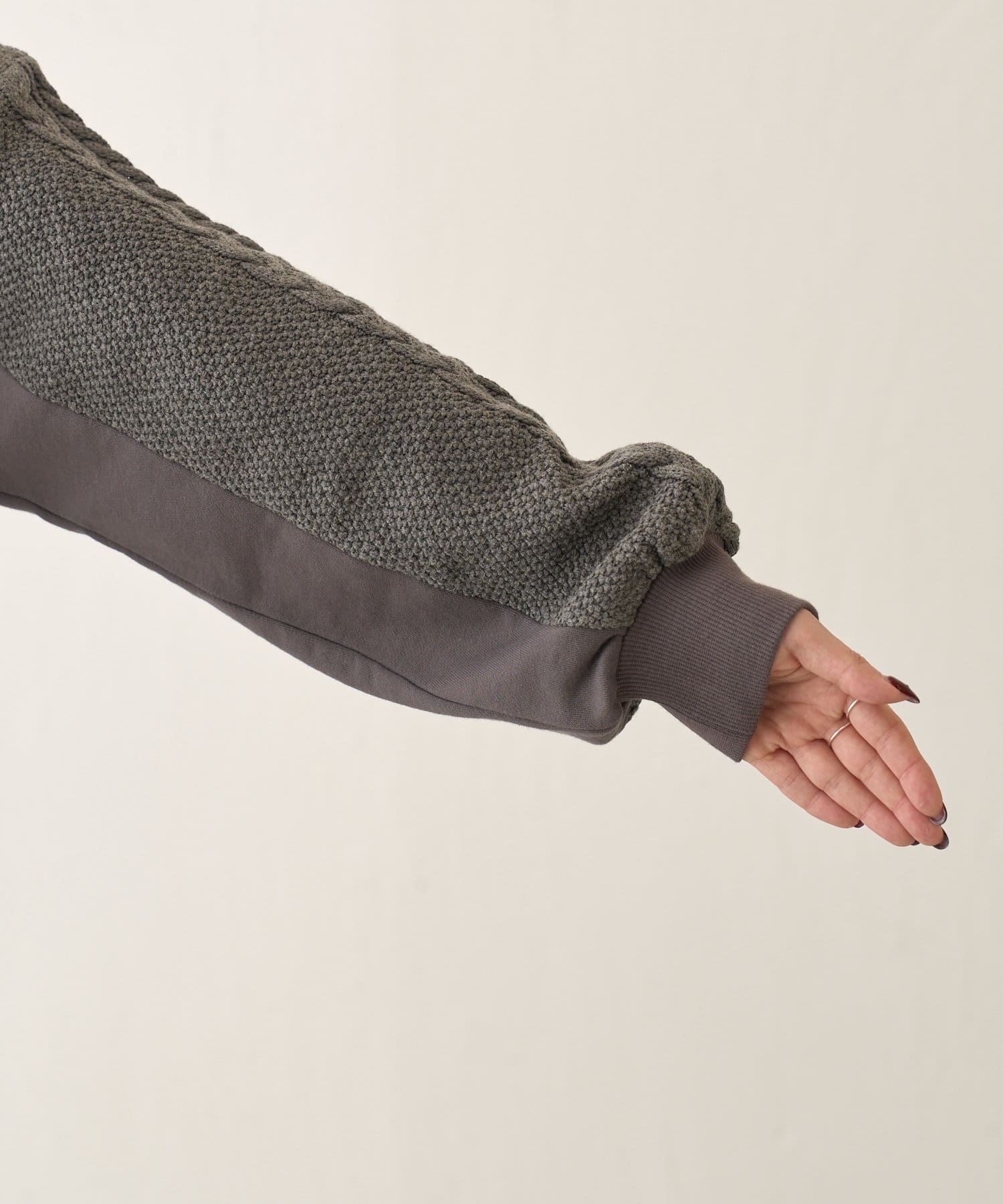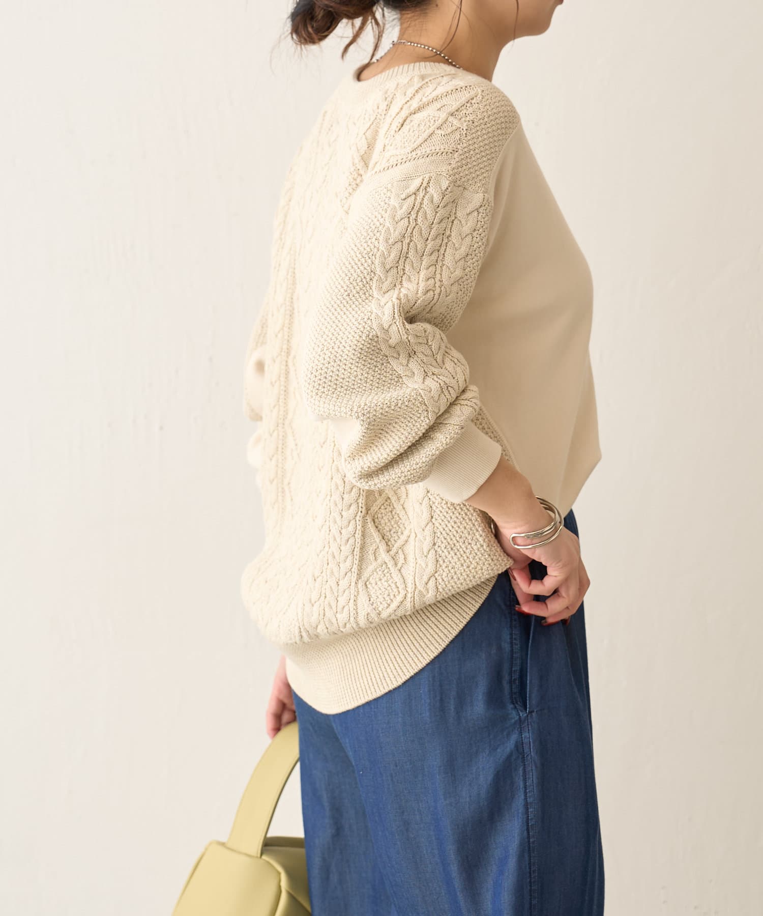 ・ケーブルニットとドッキングされた前後の大胆な切替が、他にはない一枚。