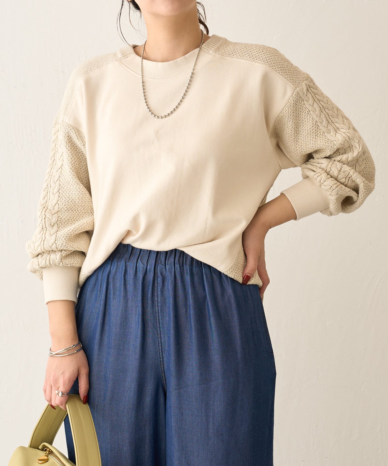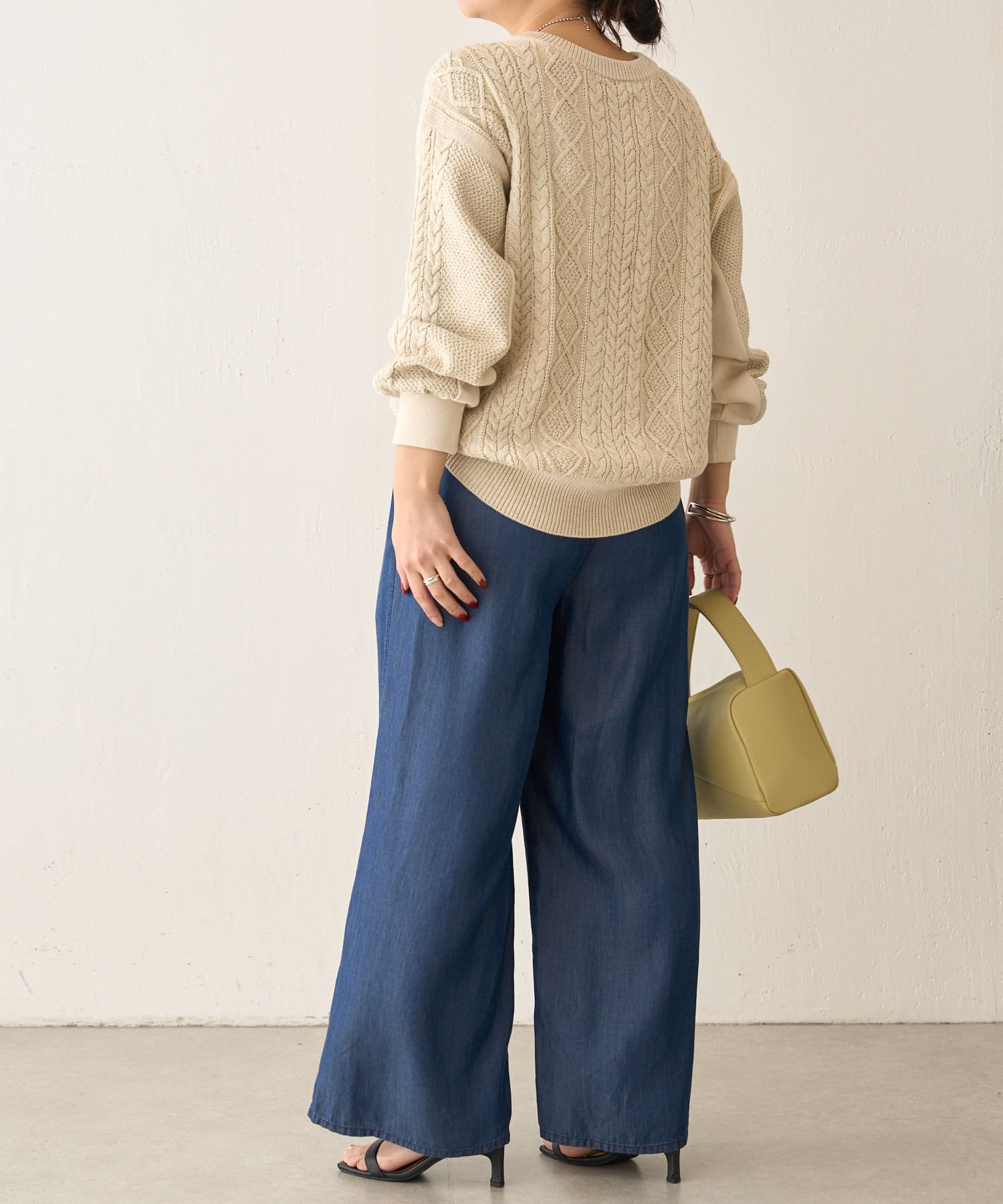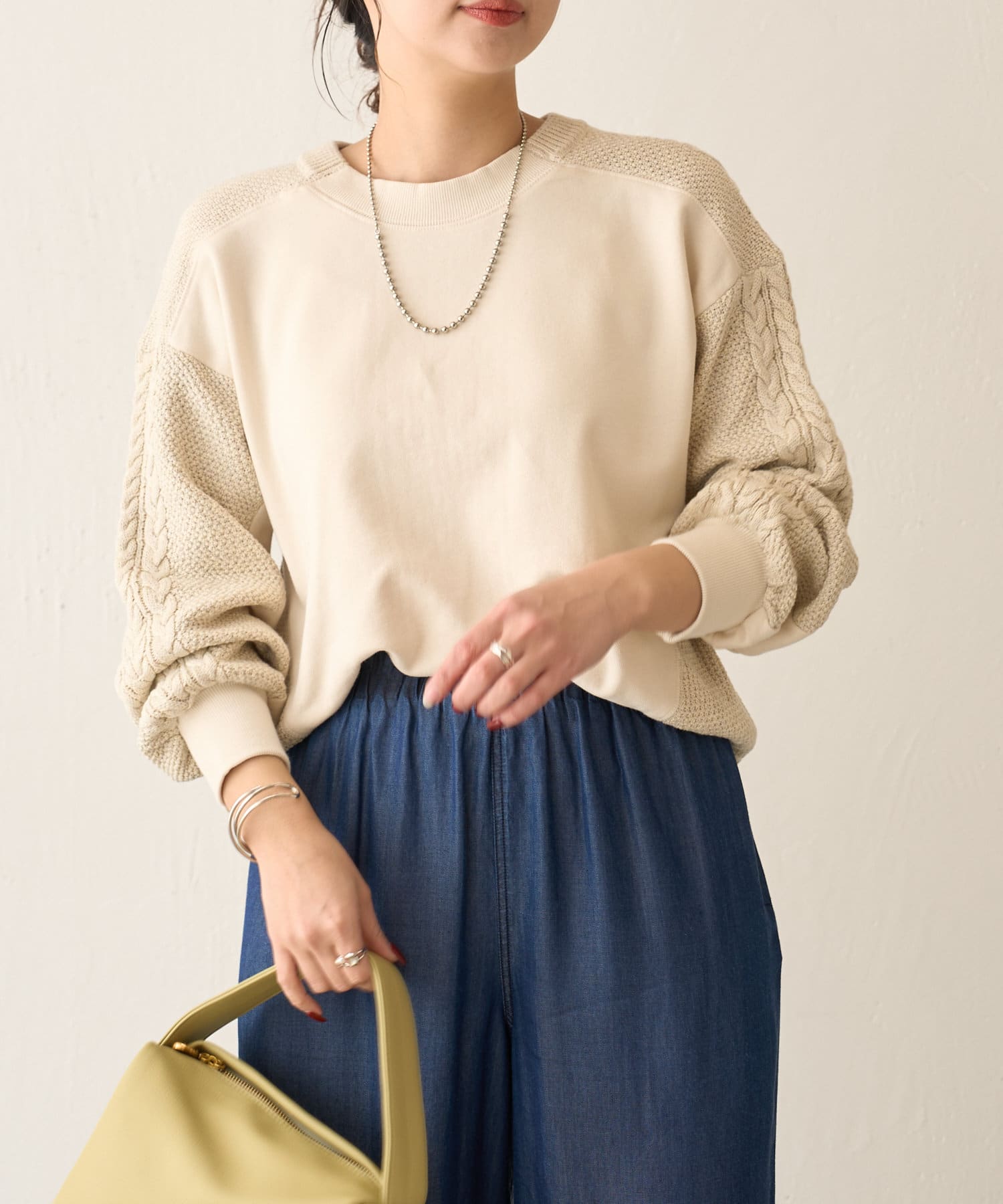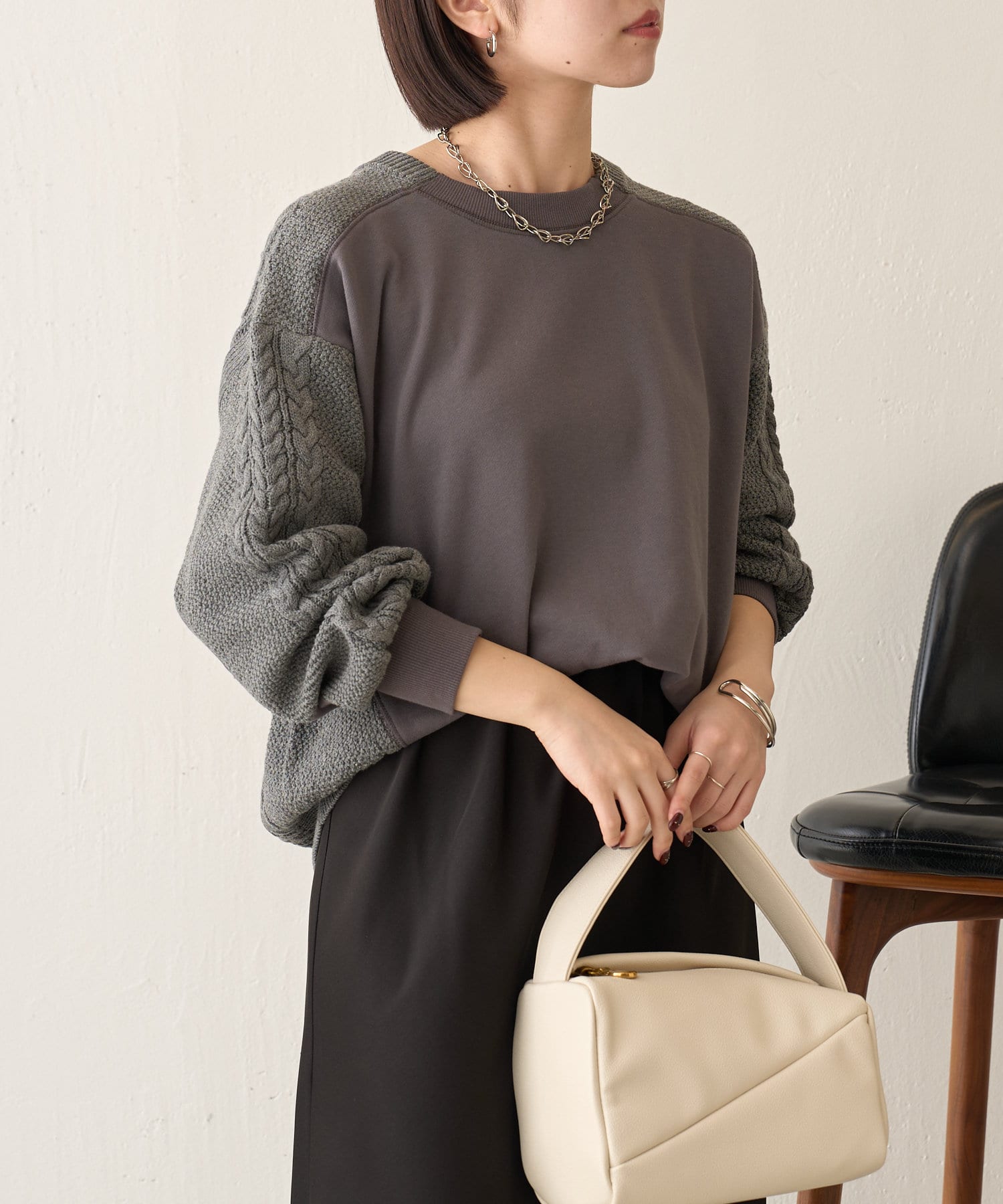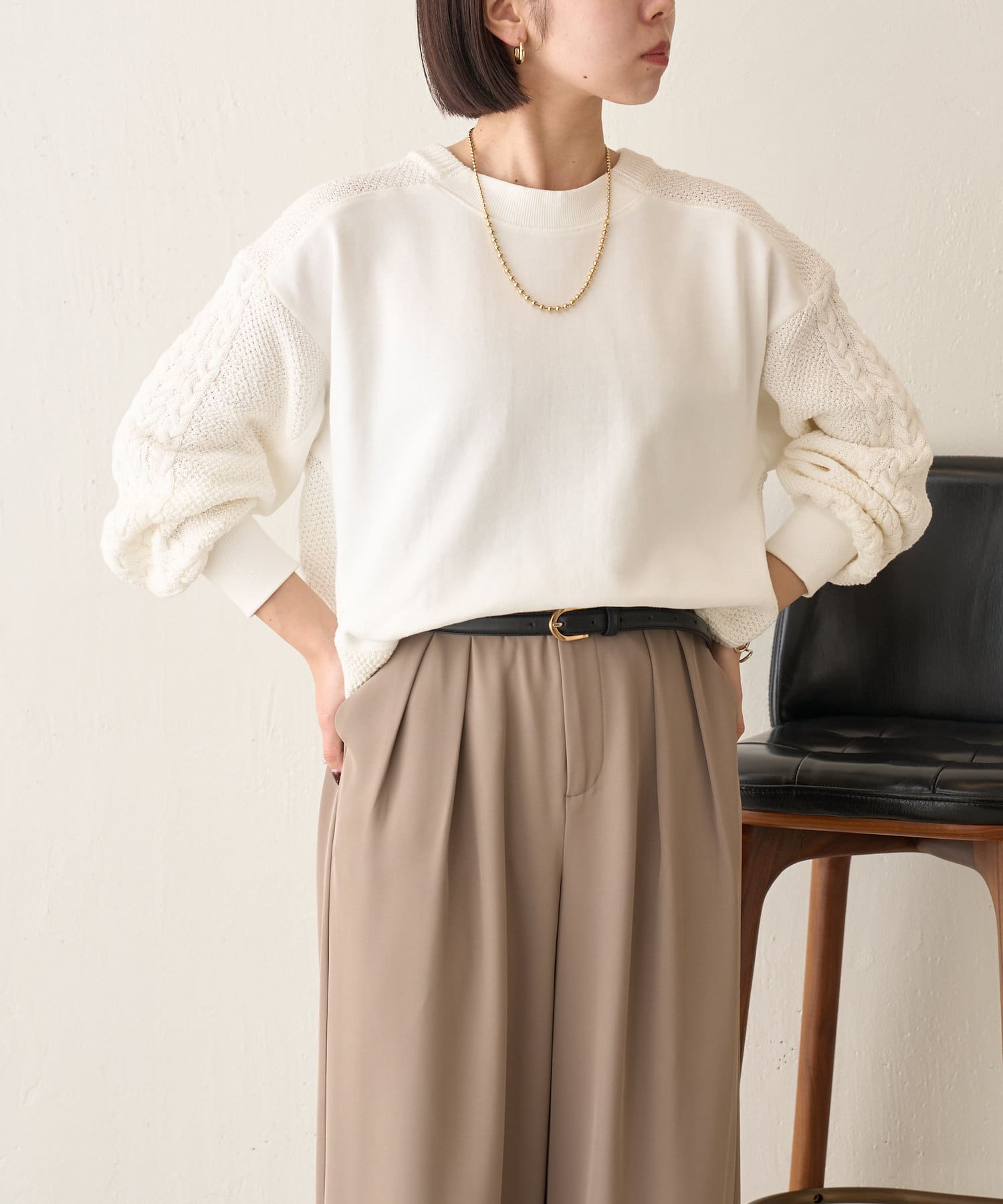 ・ケーブルニットとドッキングされた前後の大胆な切替が、他にはない一枚。