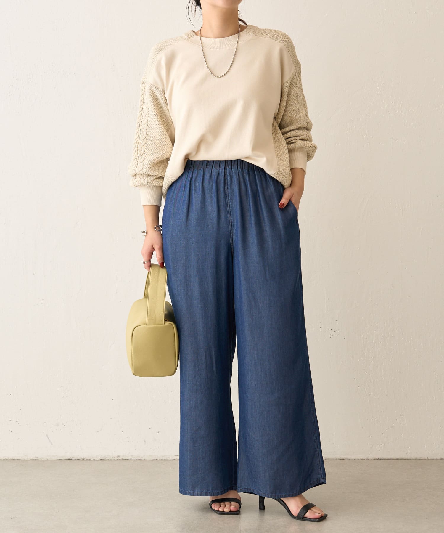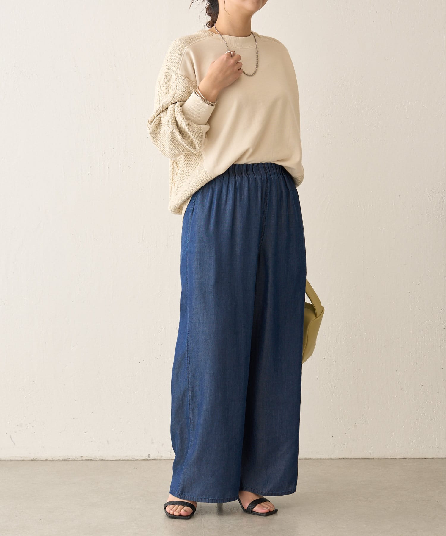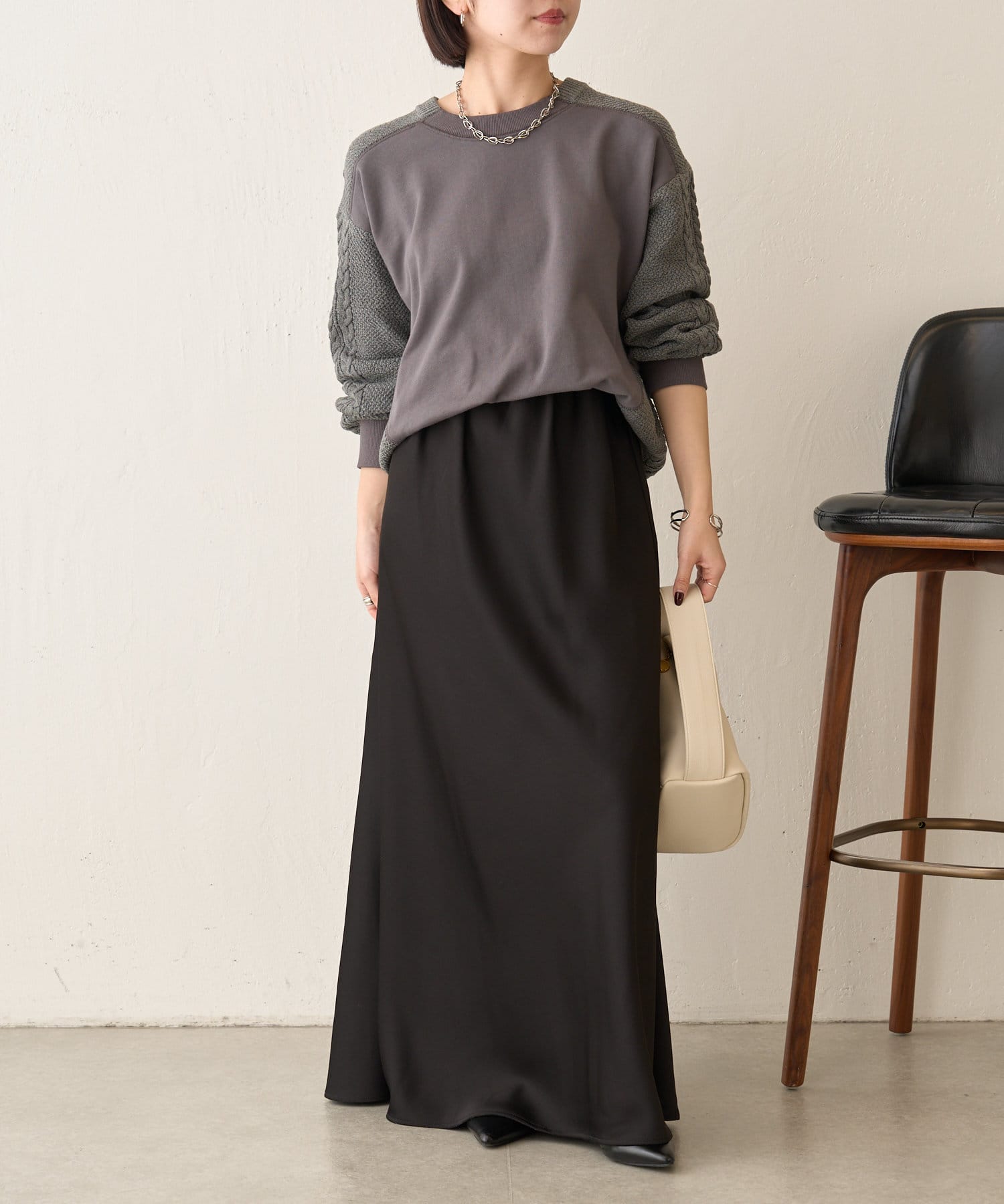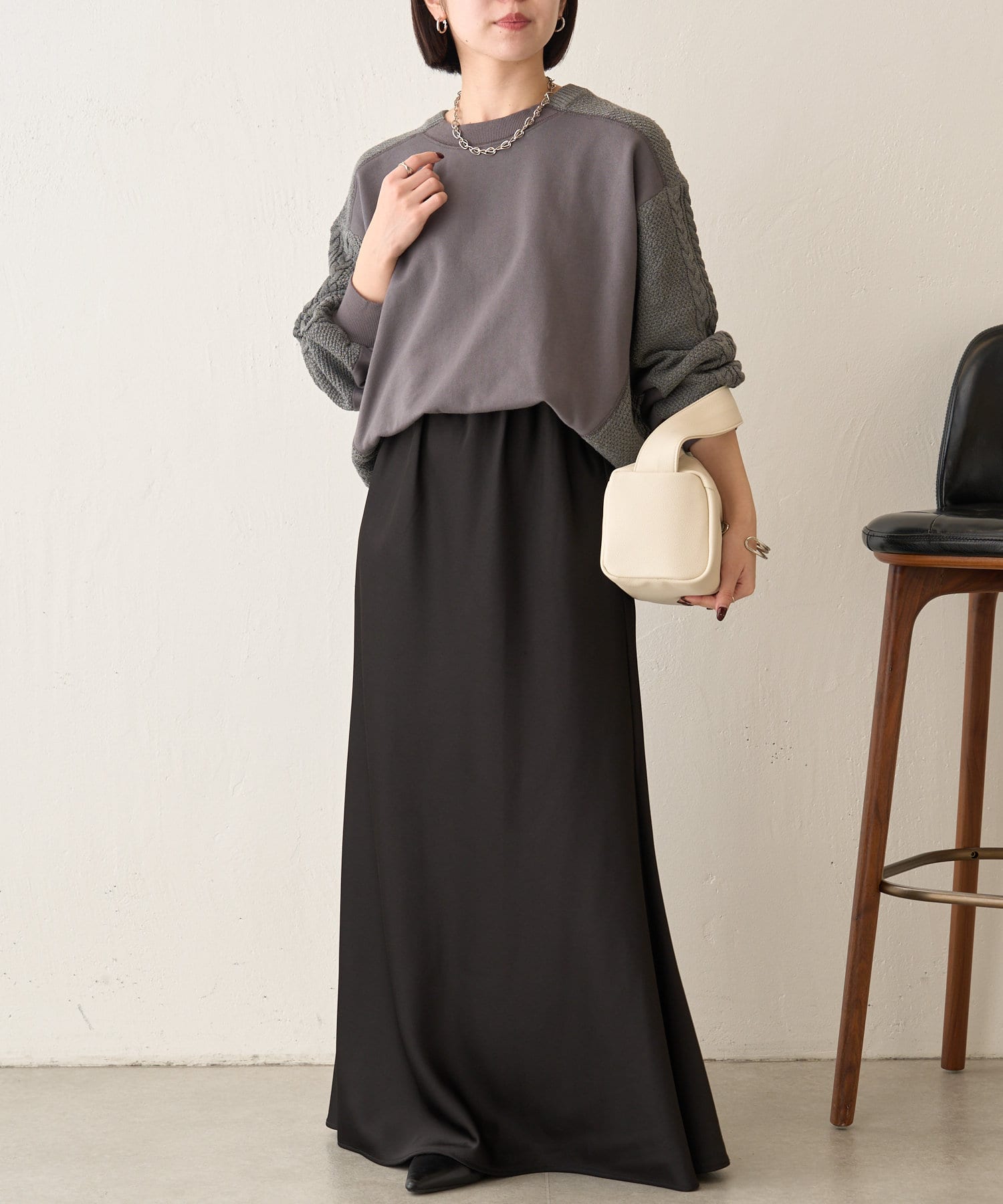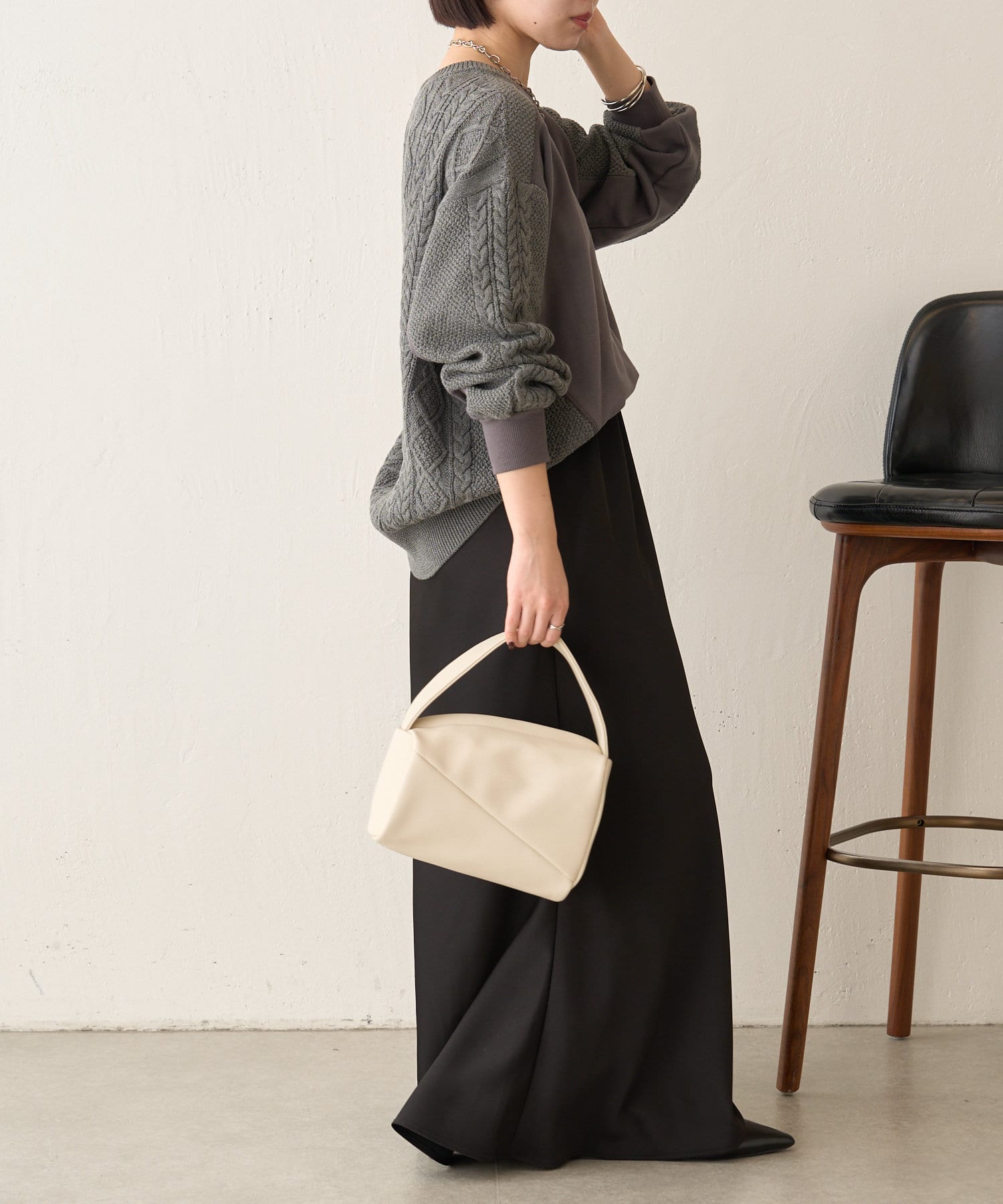 ・ケーブルニットとドッキングされた前後の大胆な切替が、他にはない一枚。