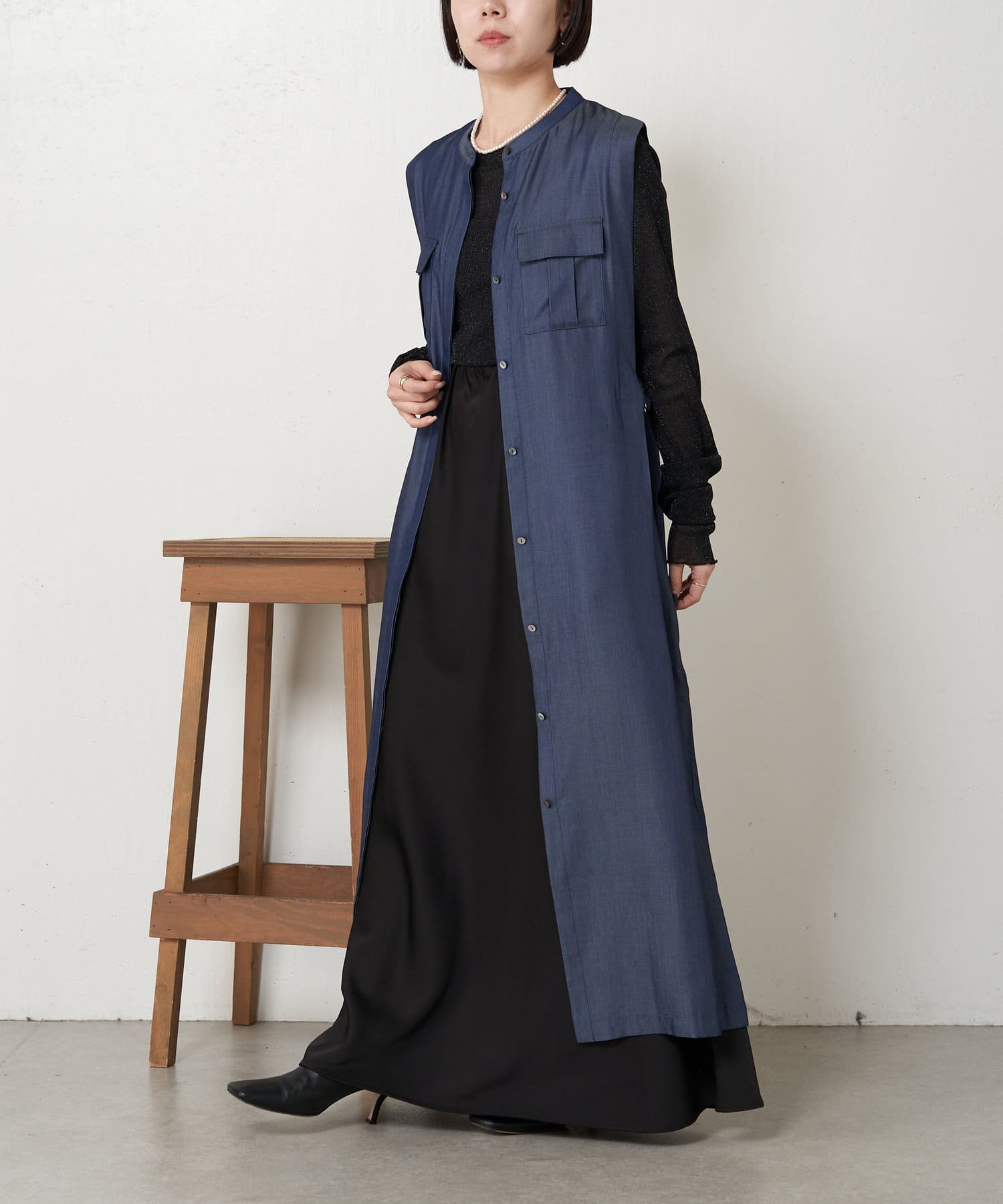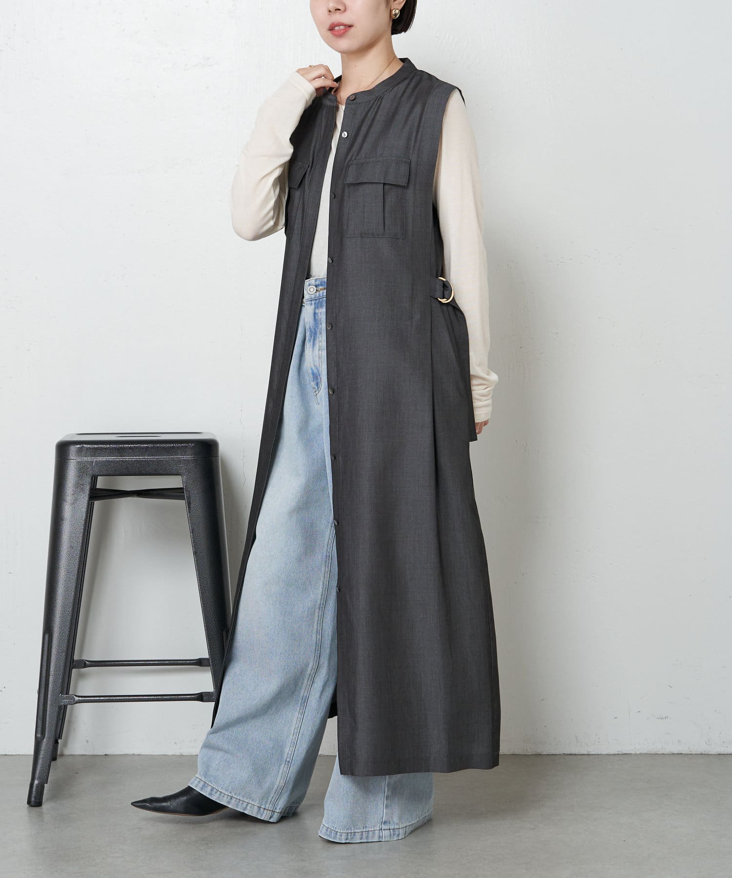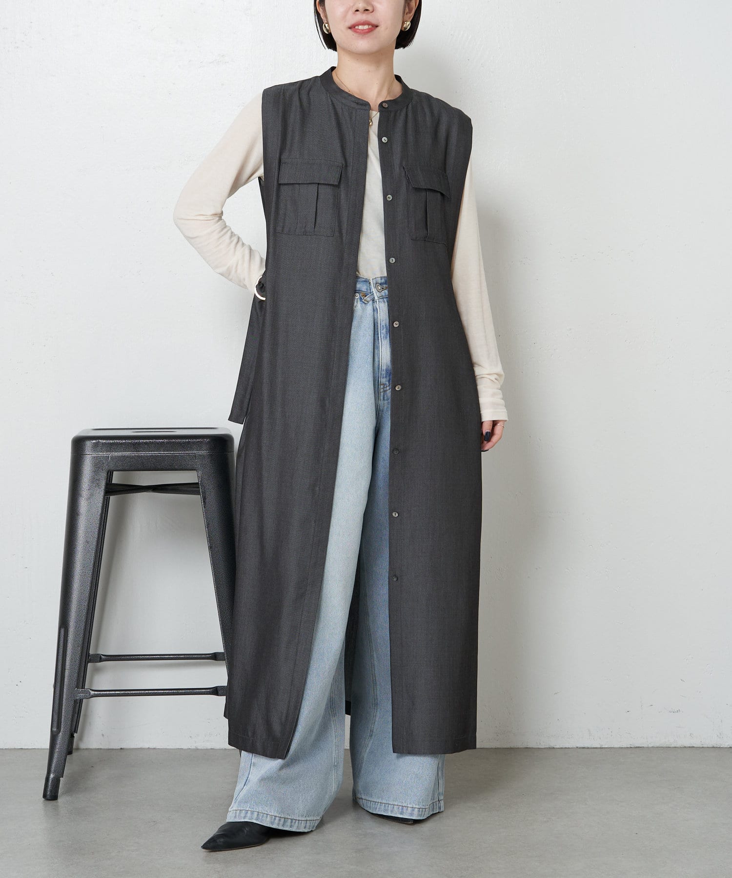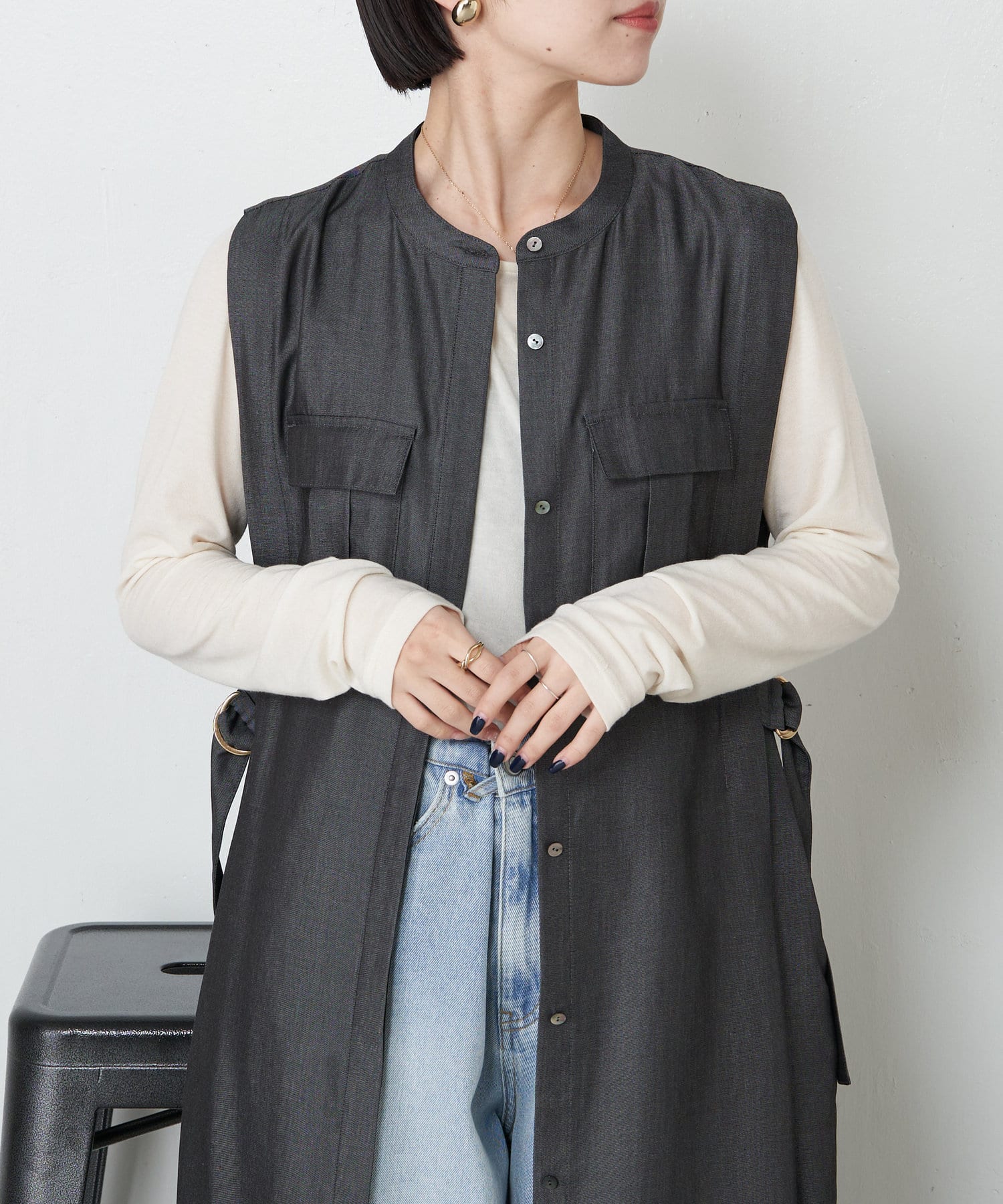 ・ジレとしてはもちろん、前を閉じてチュニック風に着用するのもおすすめ。