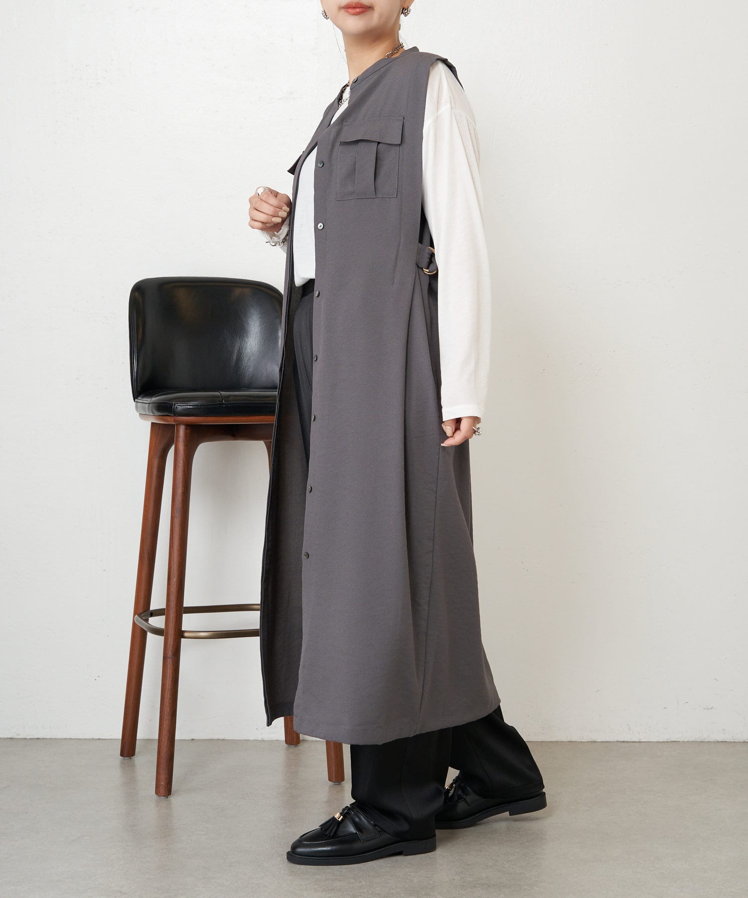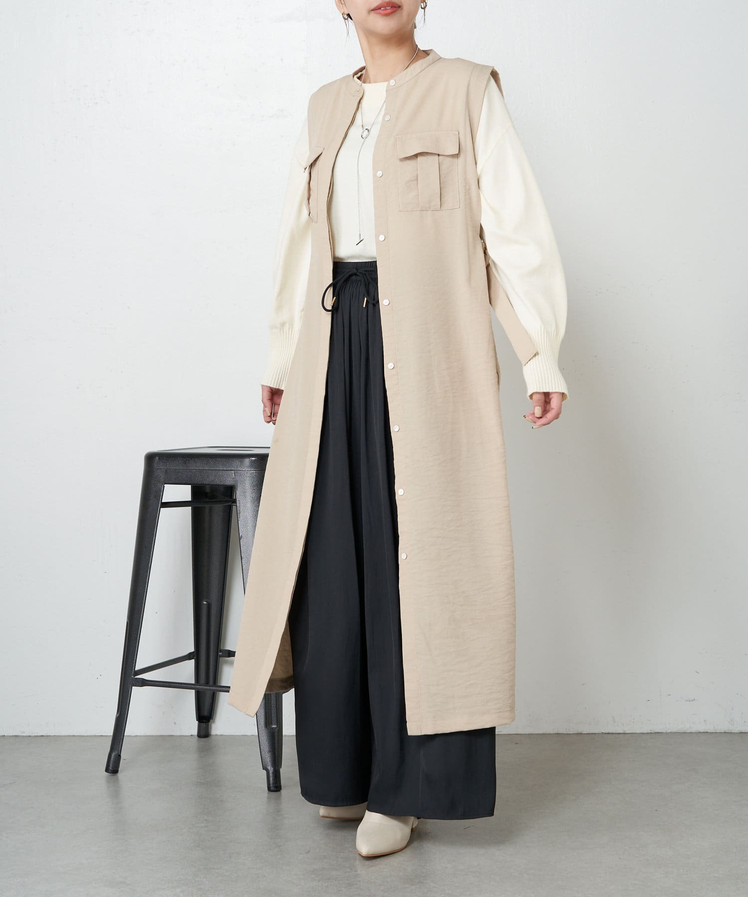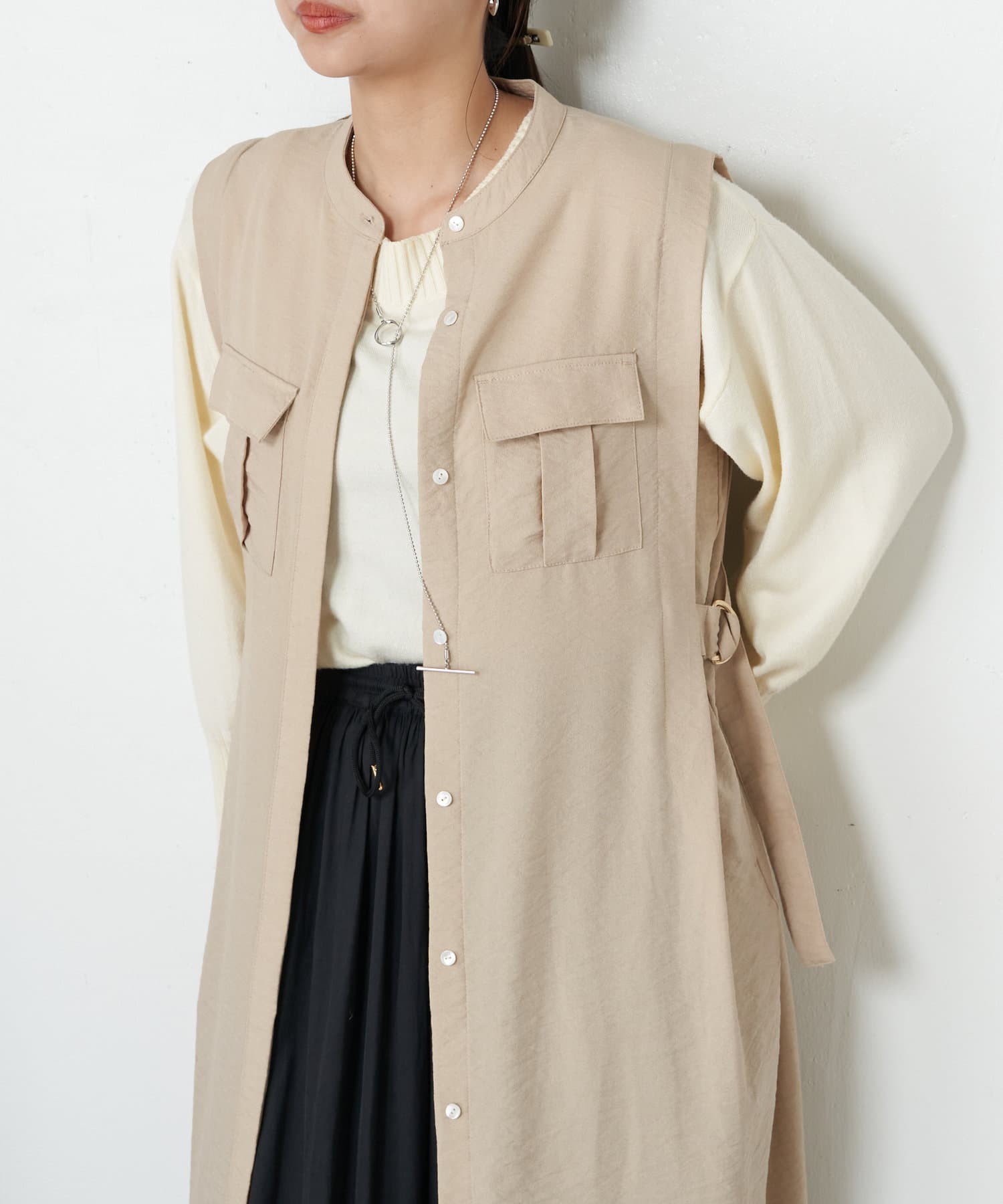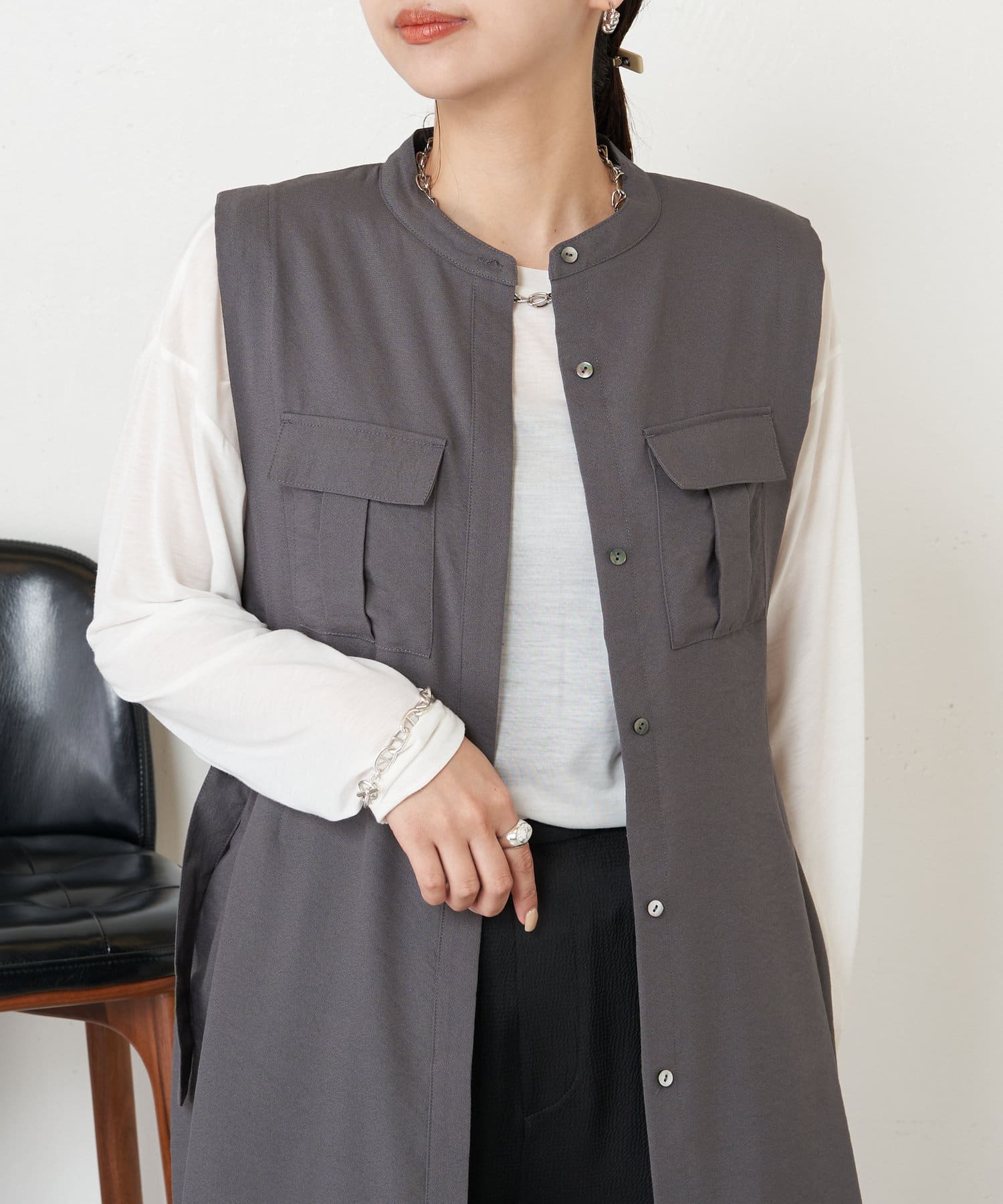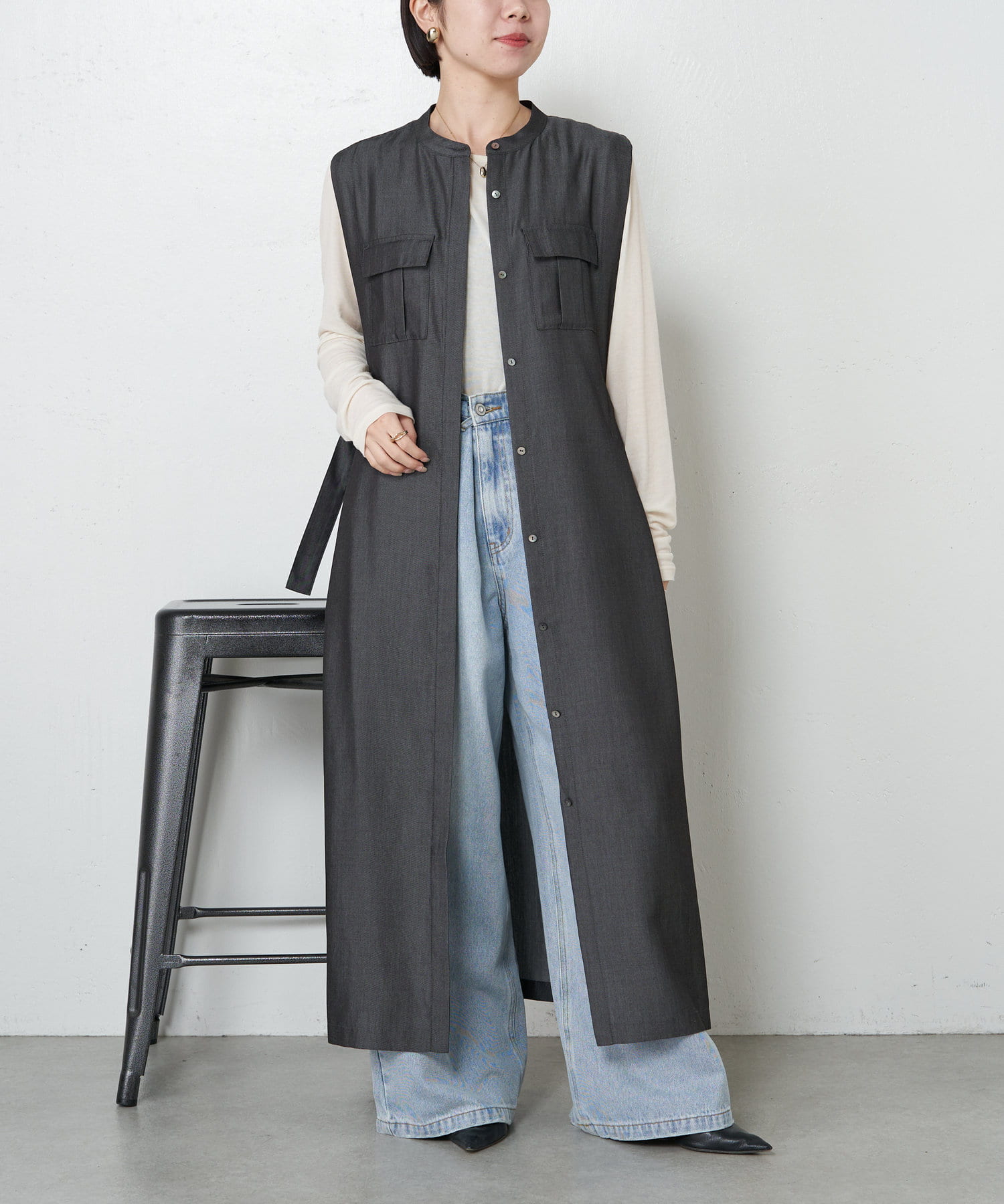 ・ジレとしてはもちろん、前を閉じてチュニック風に着用するのもおすすめ。