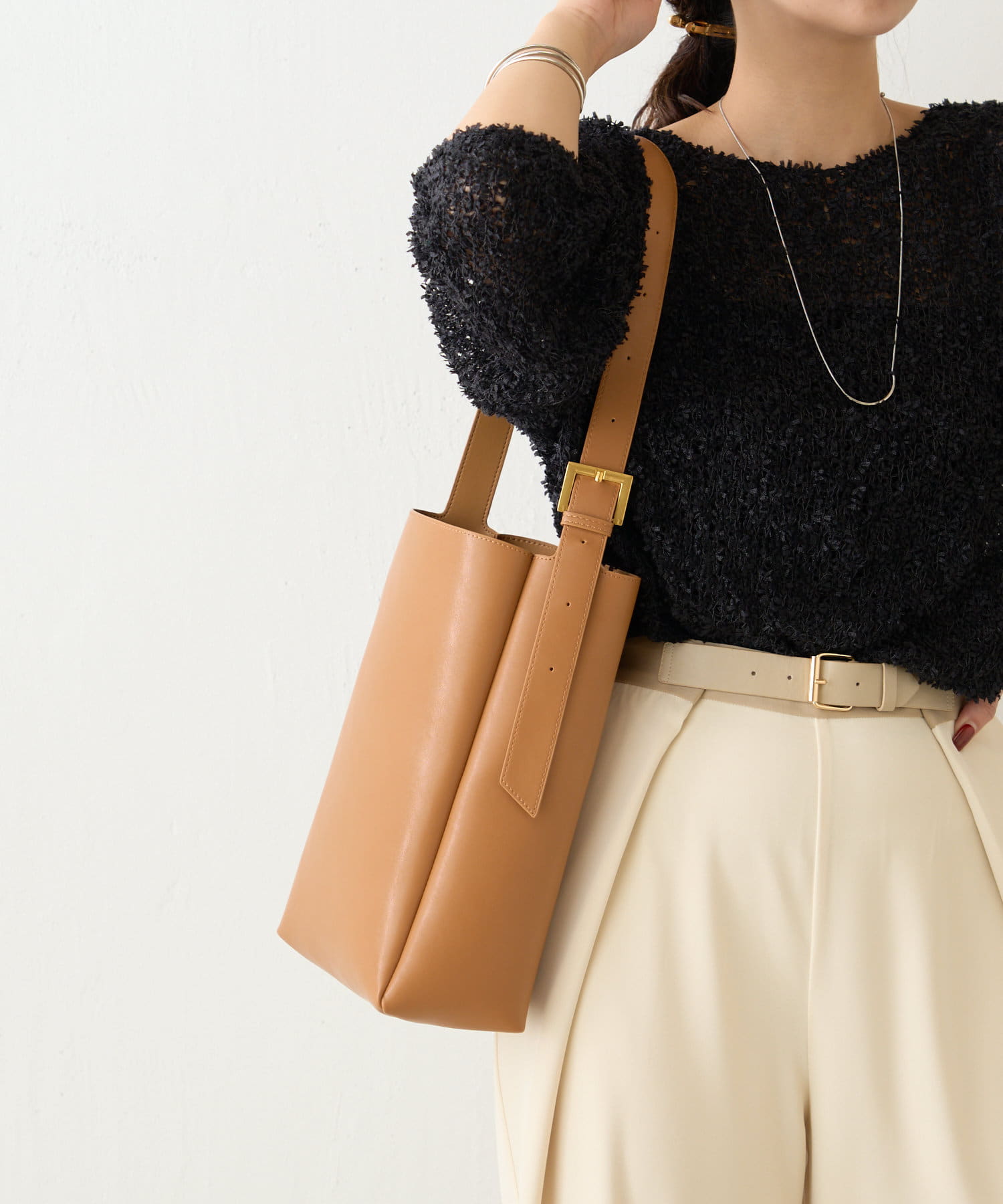 ・シンプルながらも存在感があり、どんなスタイルにもマッチする万能アイテム。