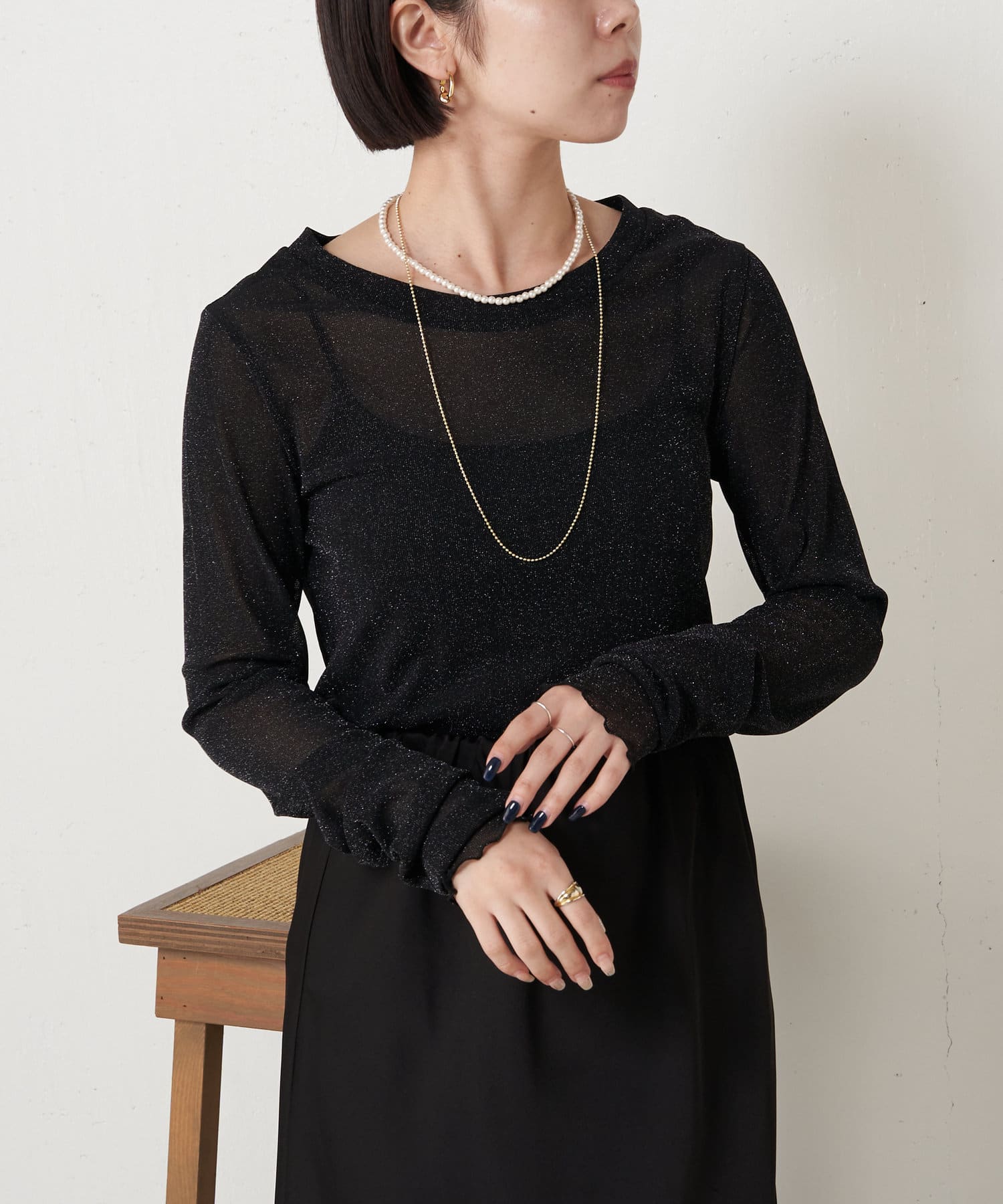 ・トレンドライクなラメ感とややシアーな素材が抜け感を演出◎