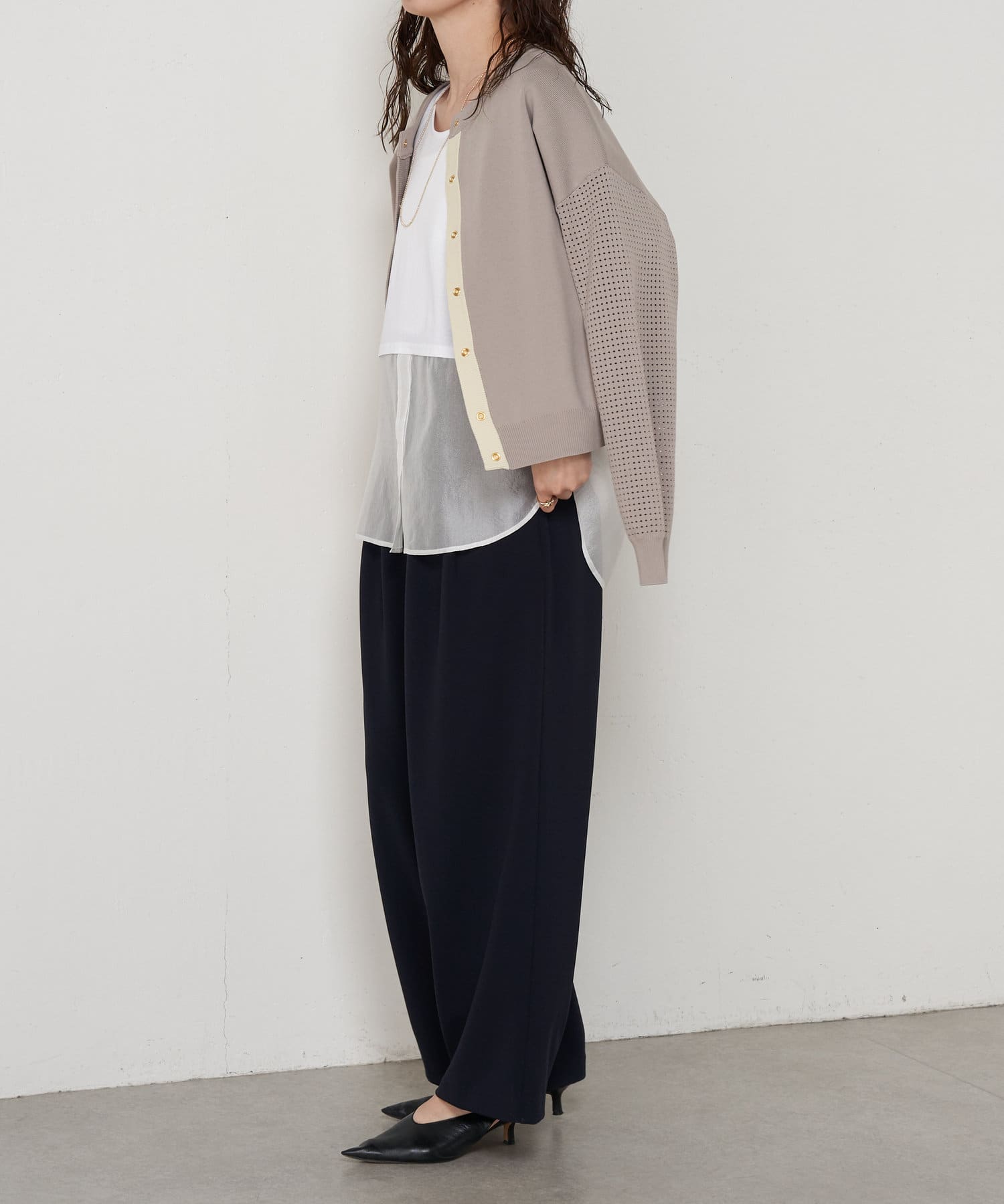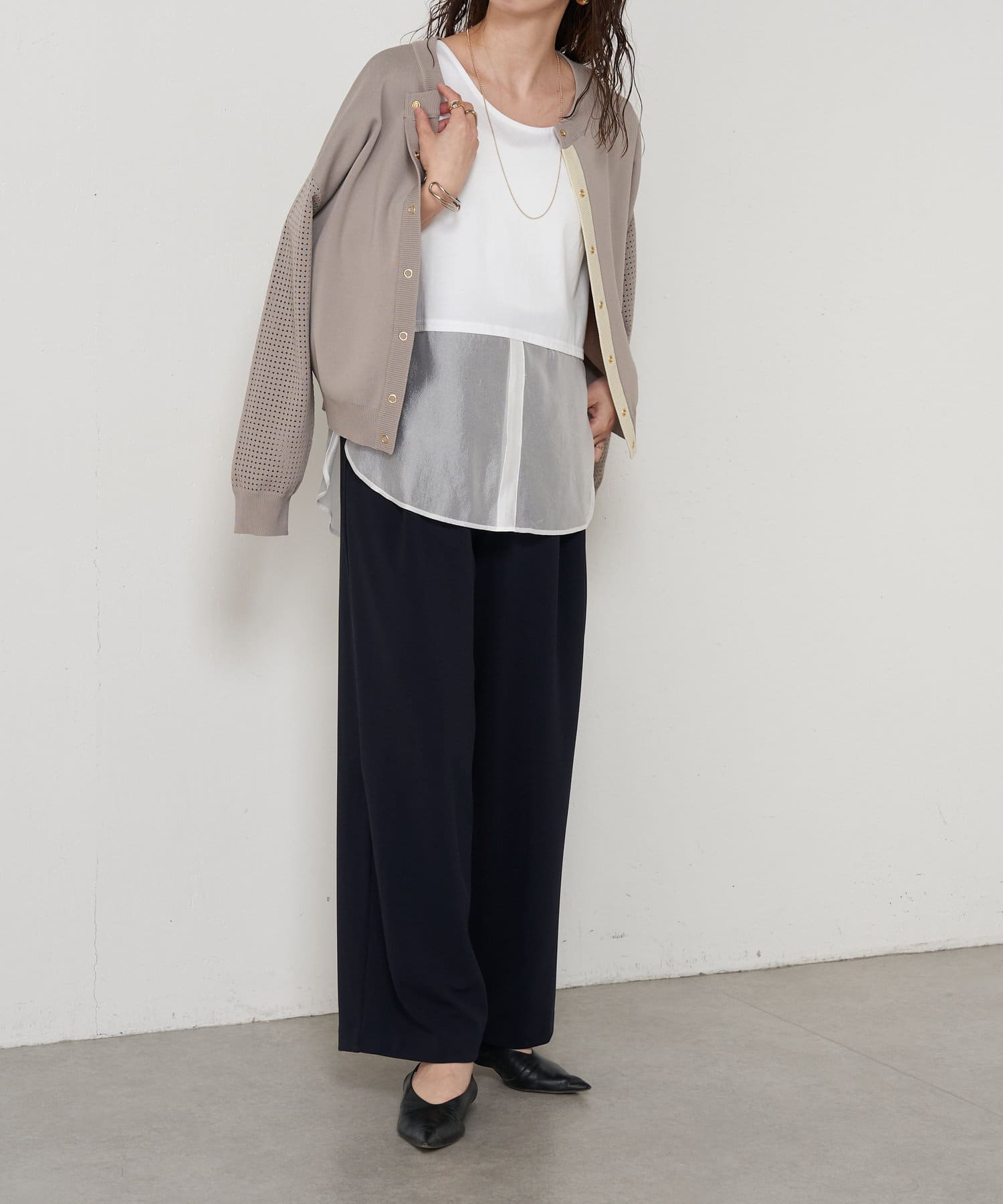 ・シアー感のある上品な素材なので、様々なシーンに着回しの効く重宝しますよ◎