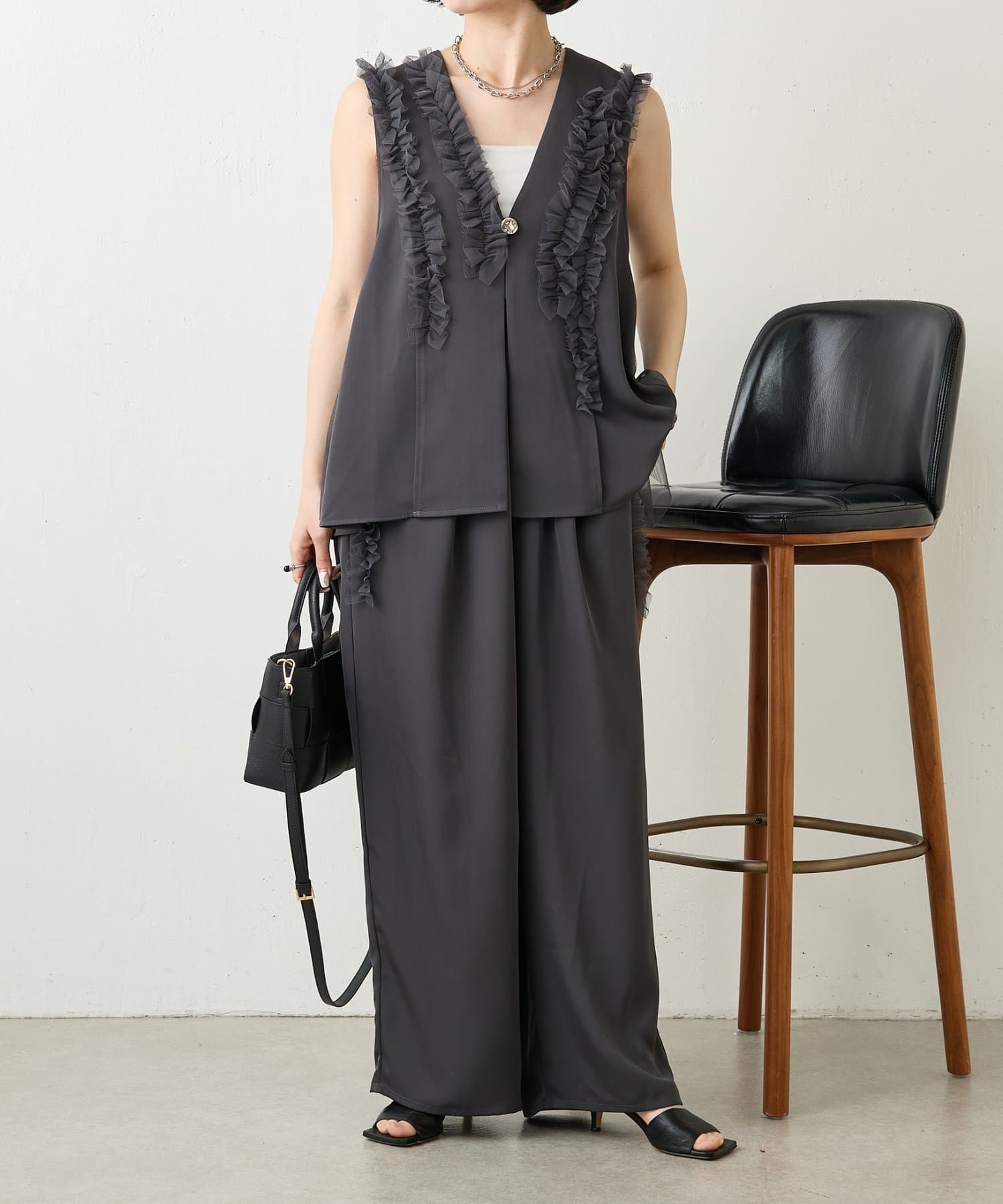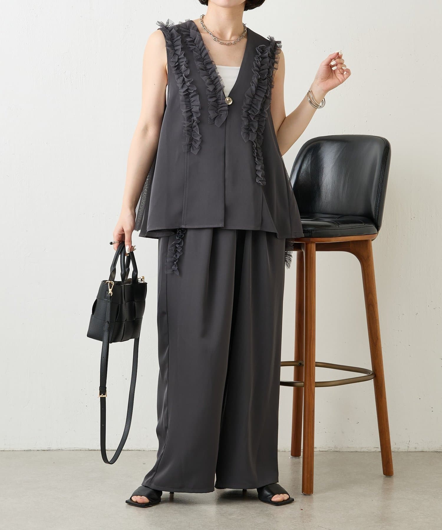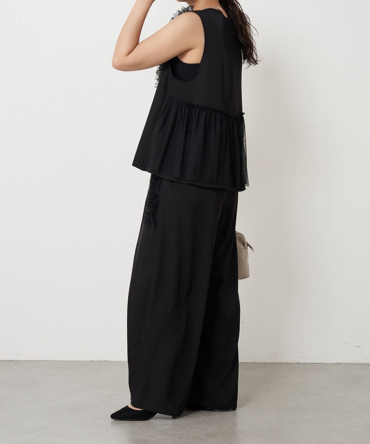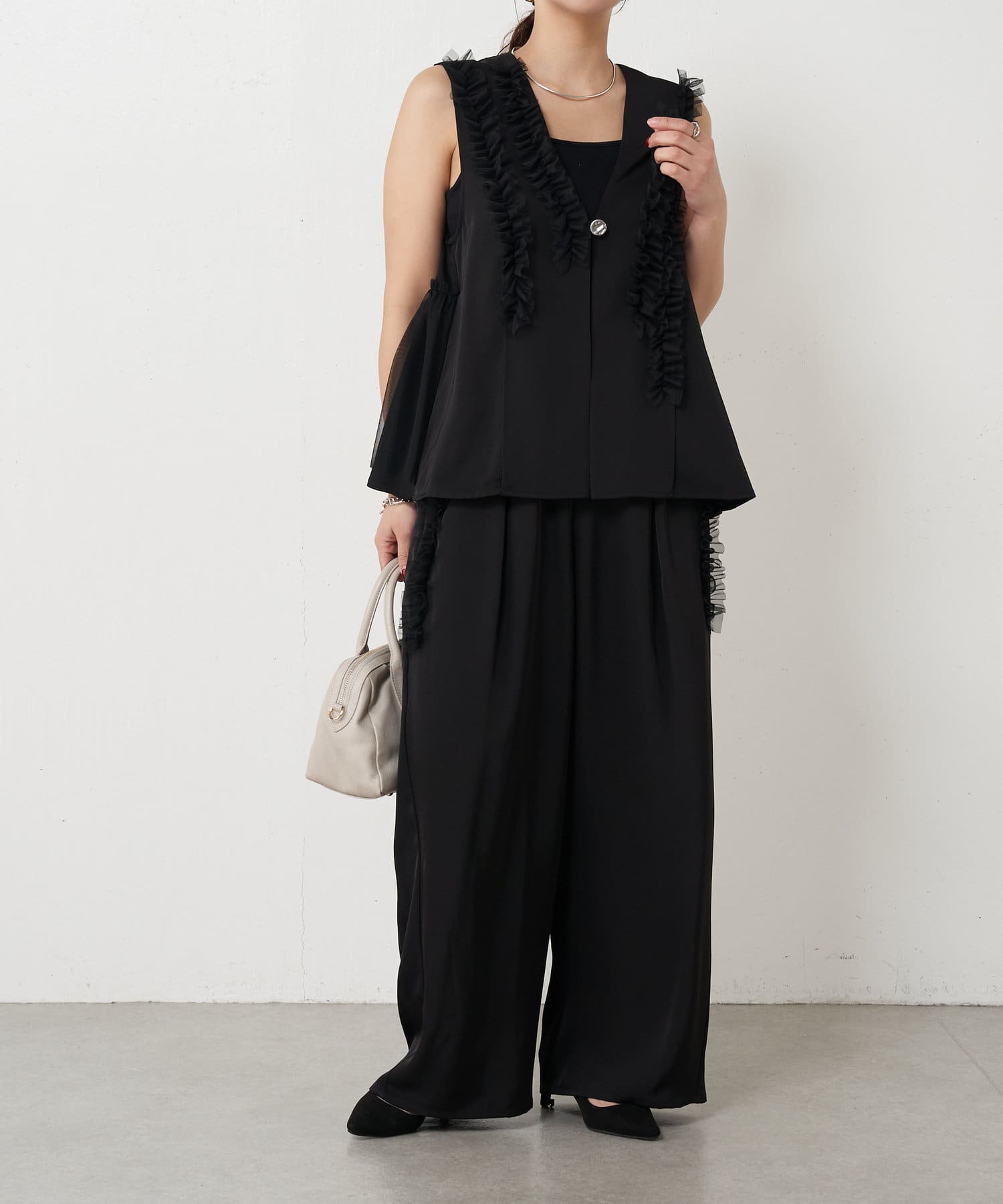 ・チュールベスト&テーパードパンツのうれしいセットアイテム。