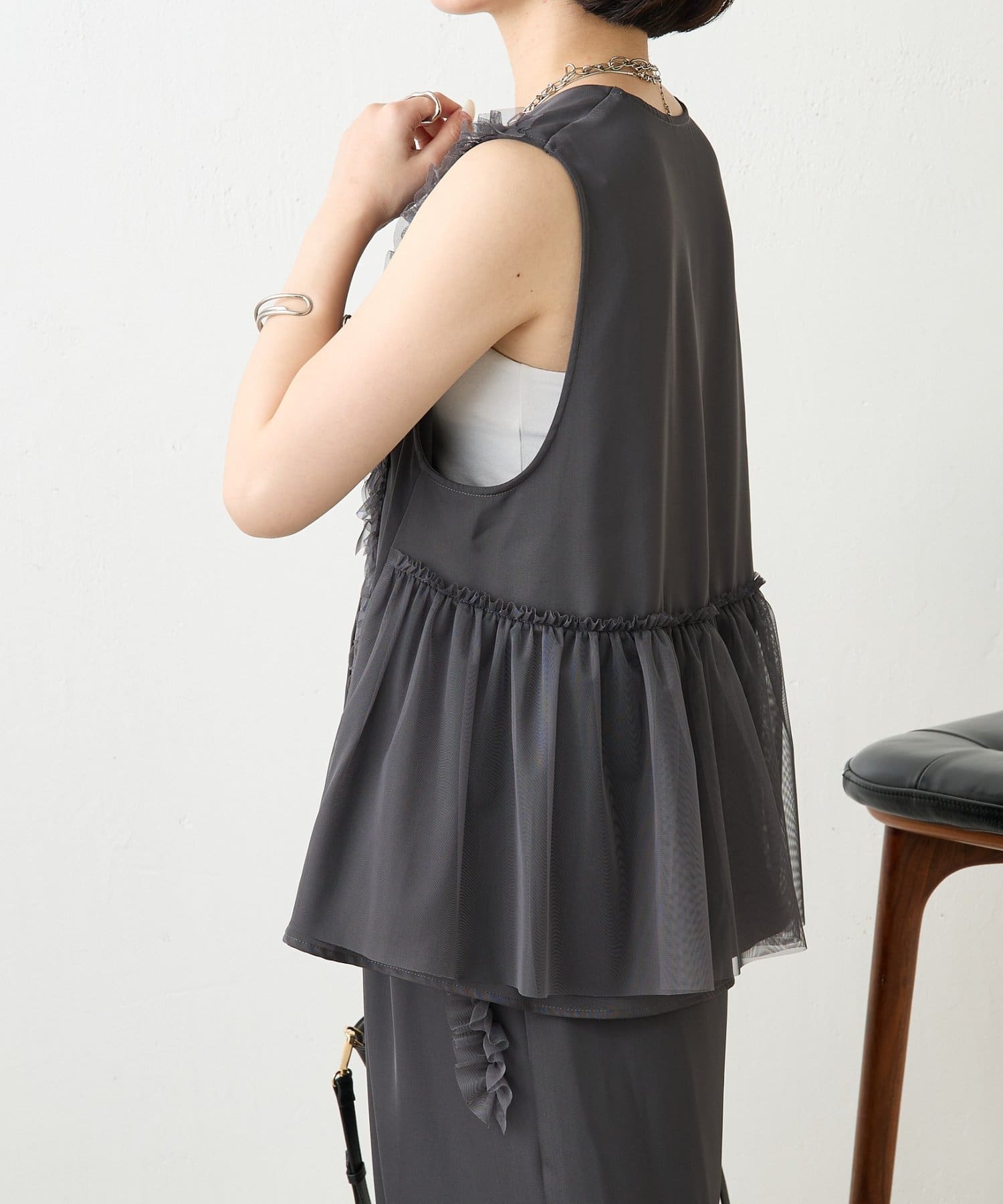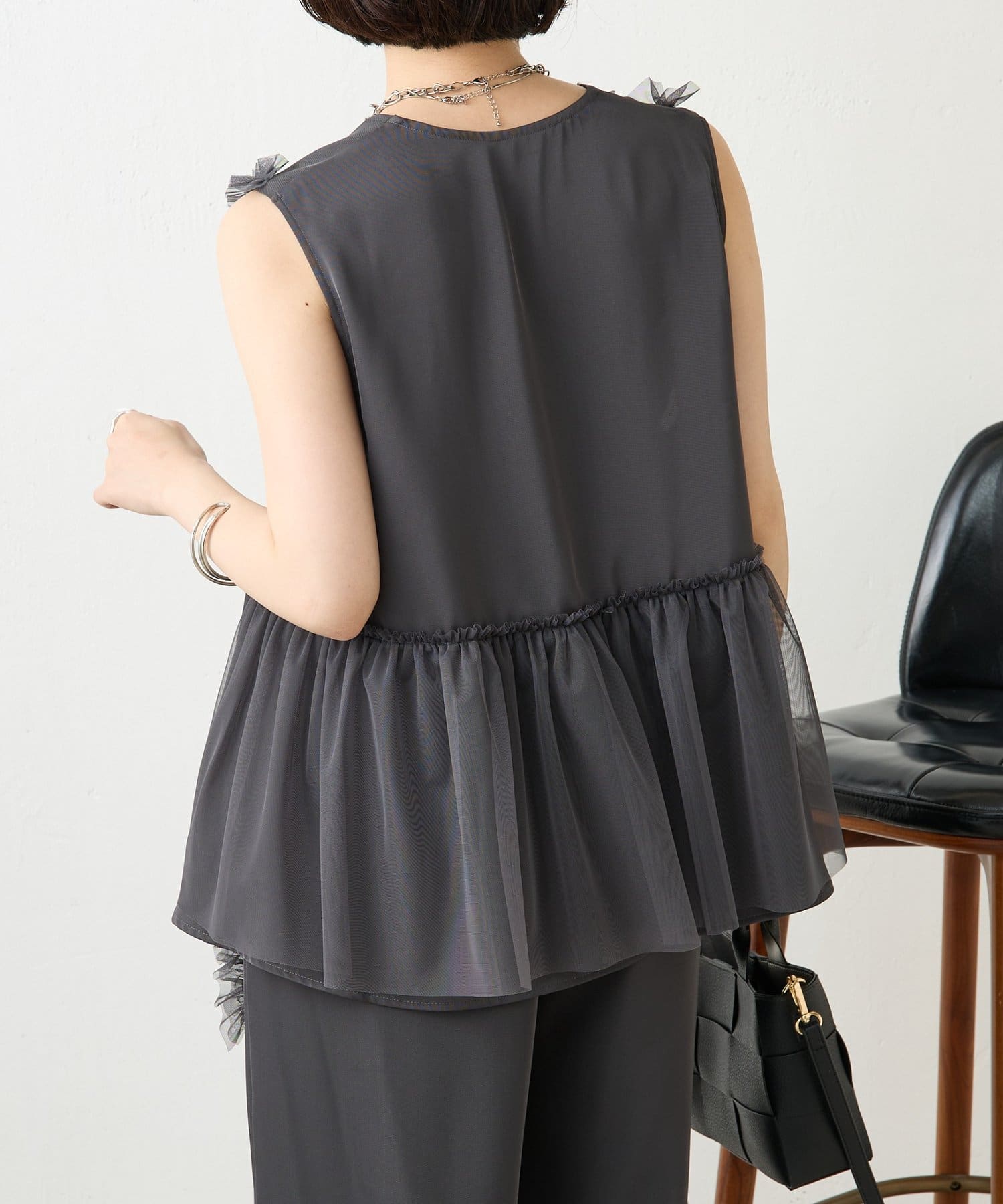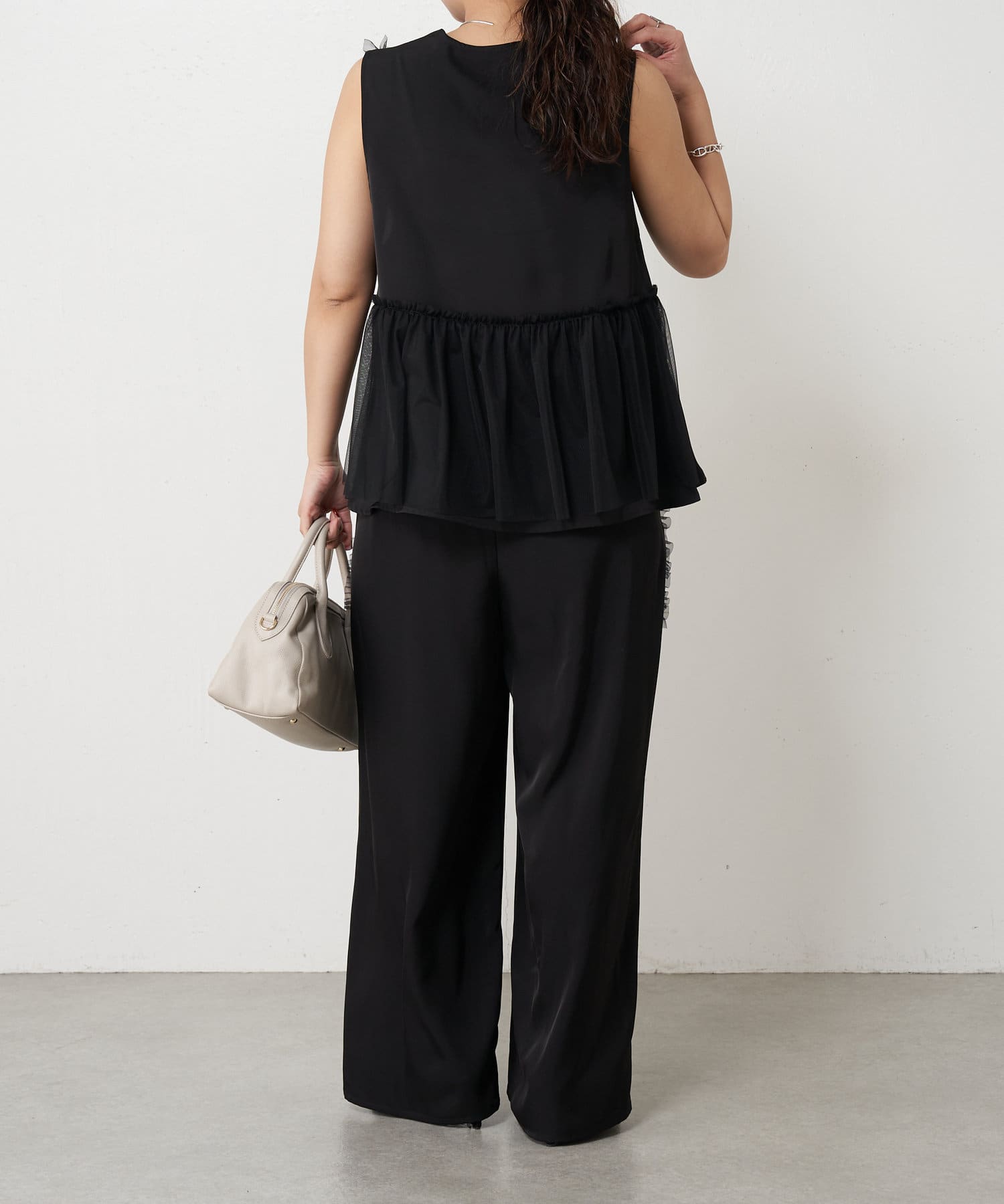 ・チュールベスト&テーパードパンツのうれしいセットアイテム。