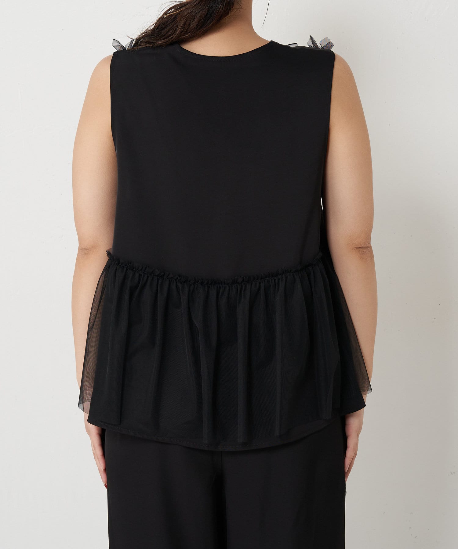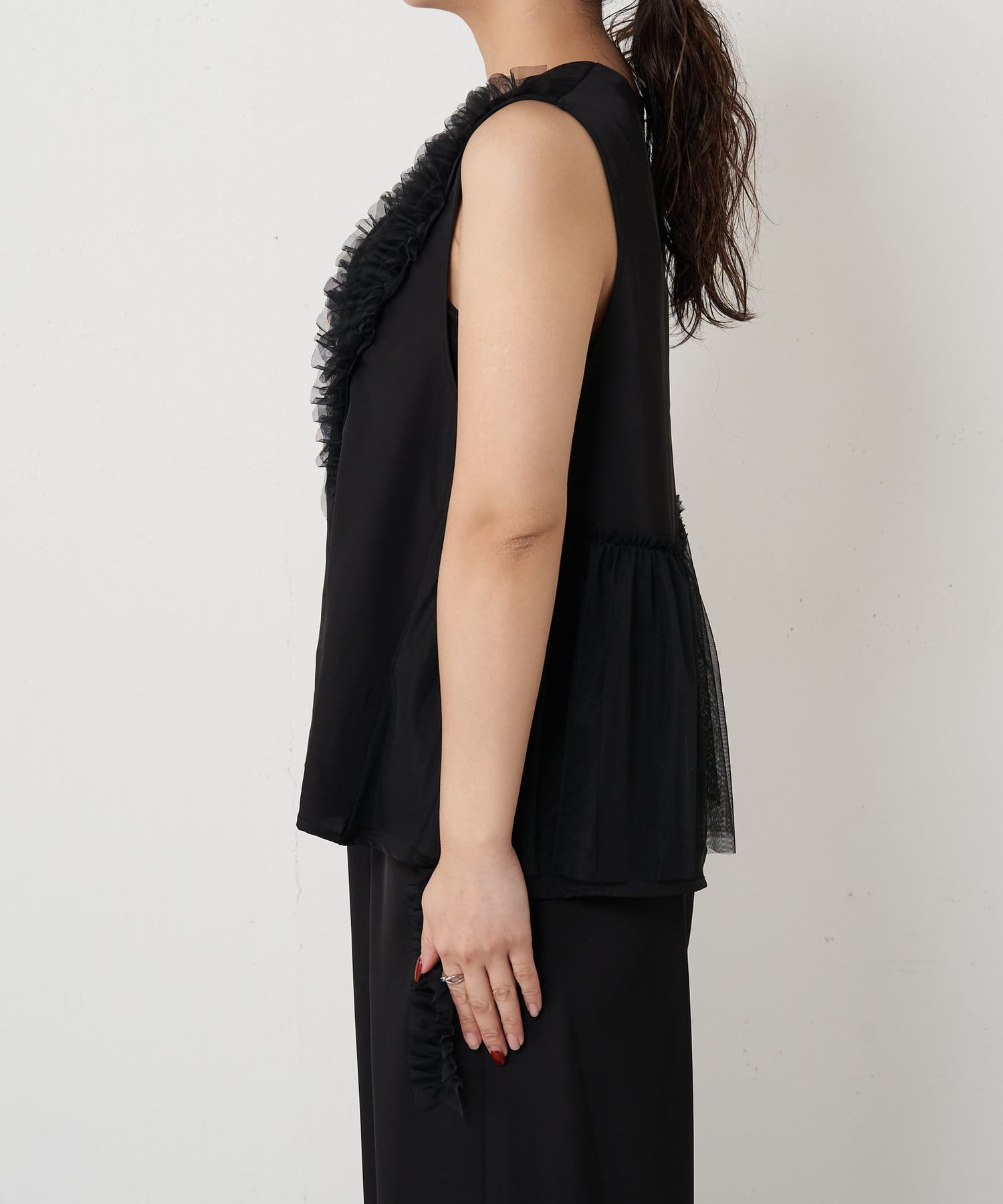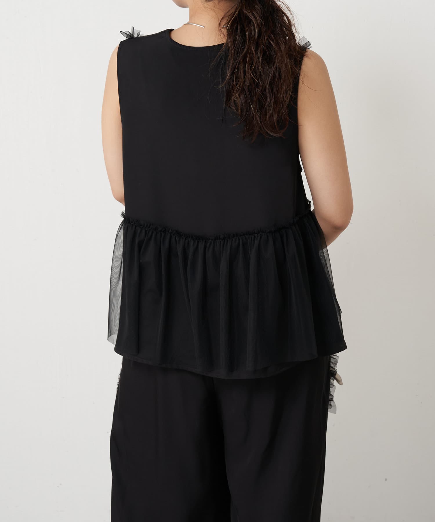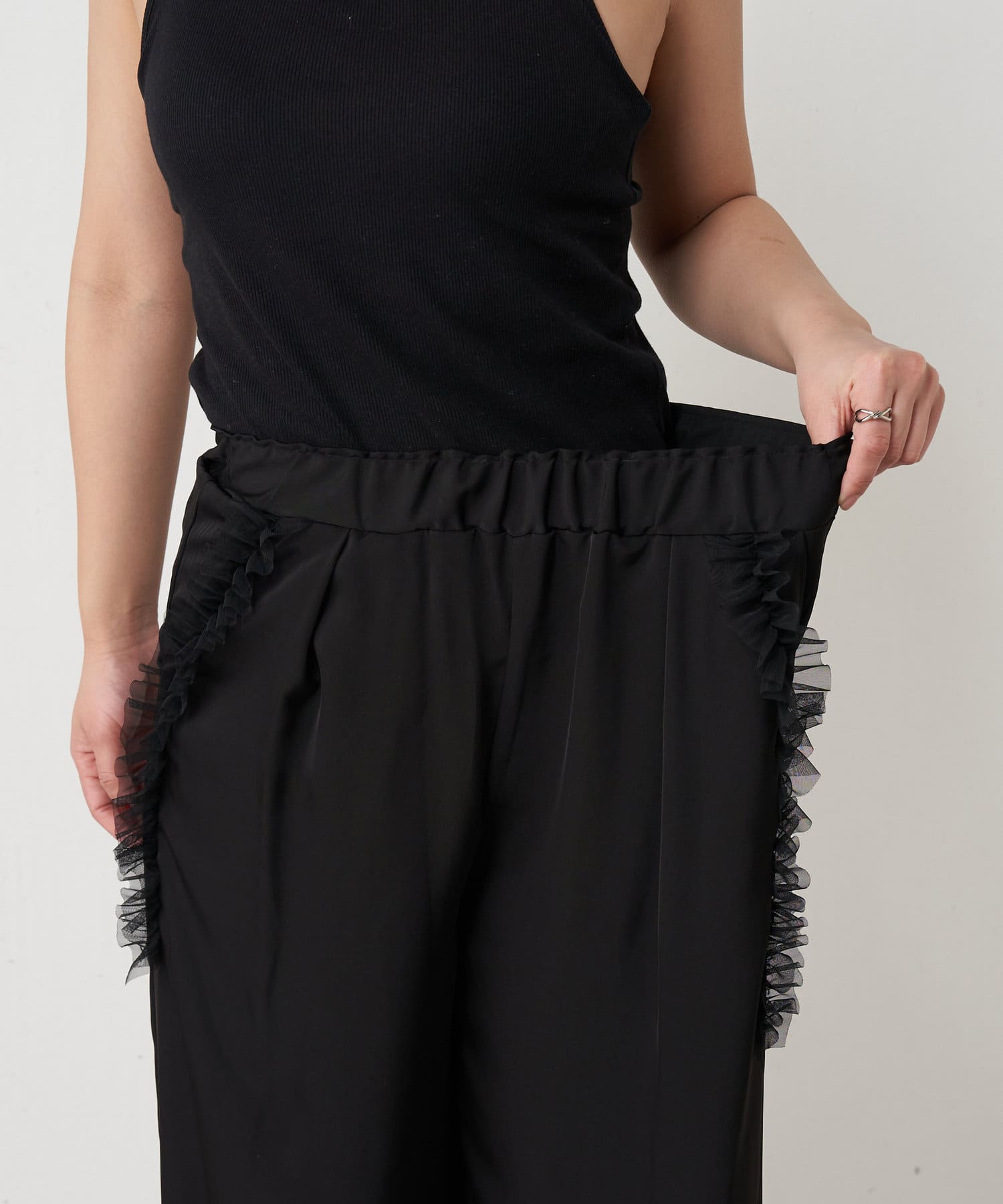 ・チュールベスト&テーパードパンツのうれしいセットアイテム。
