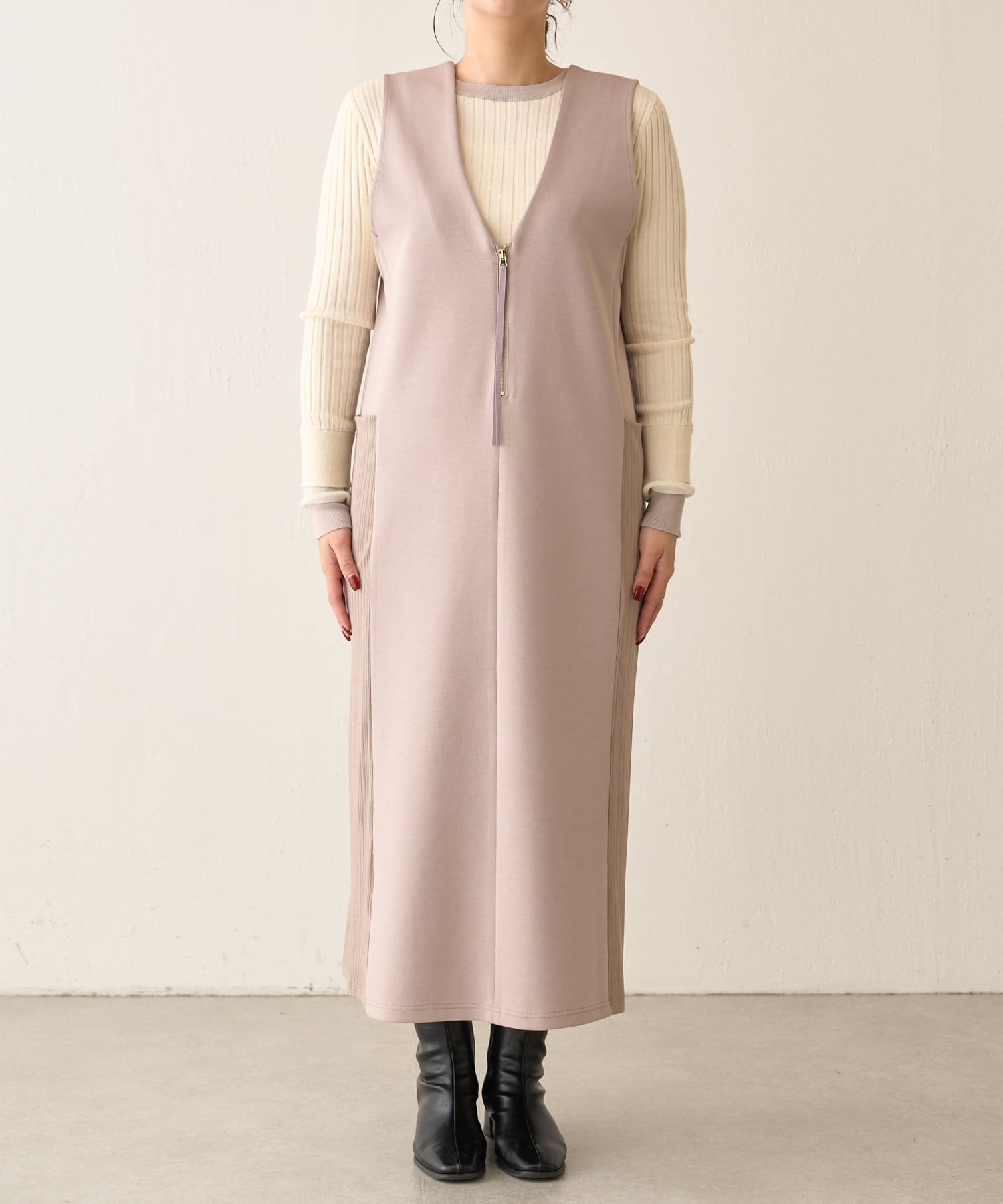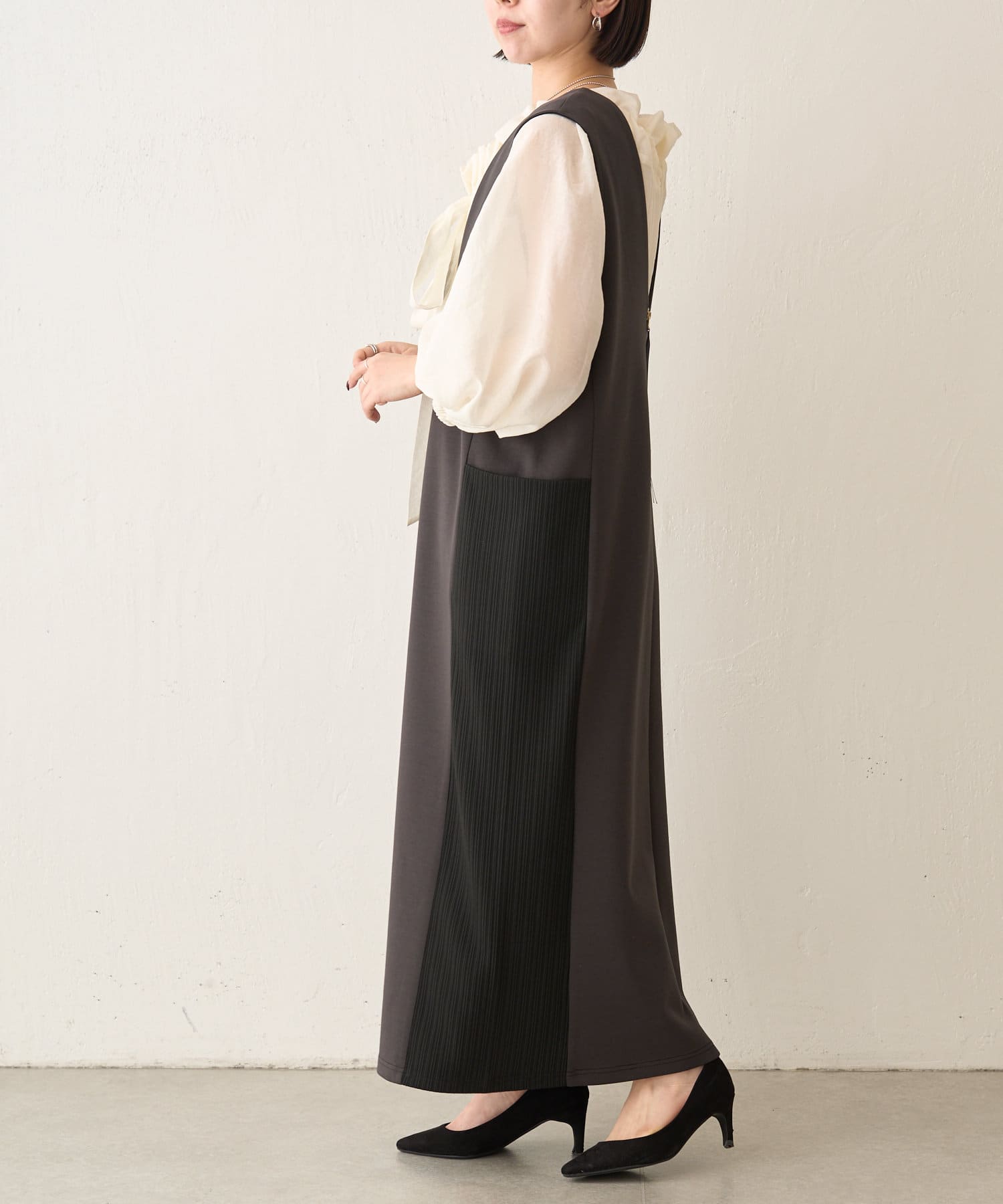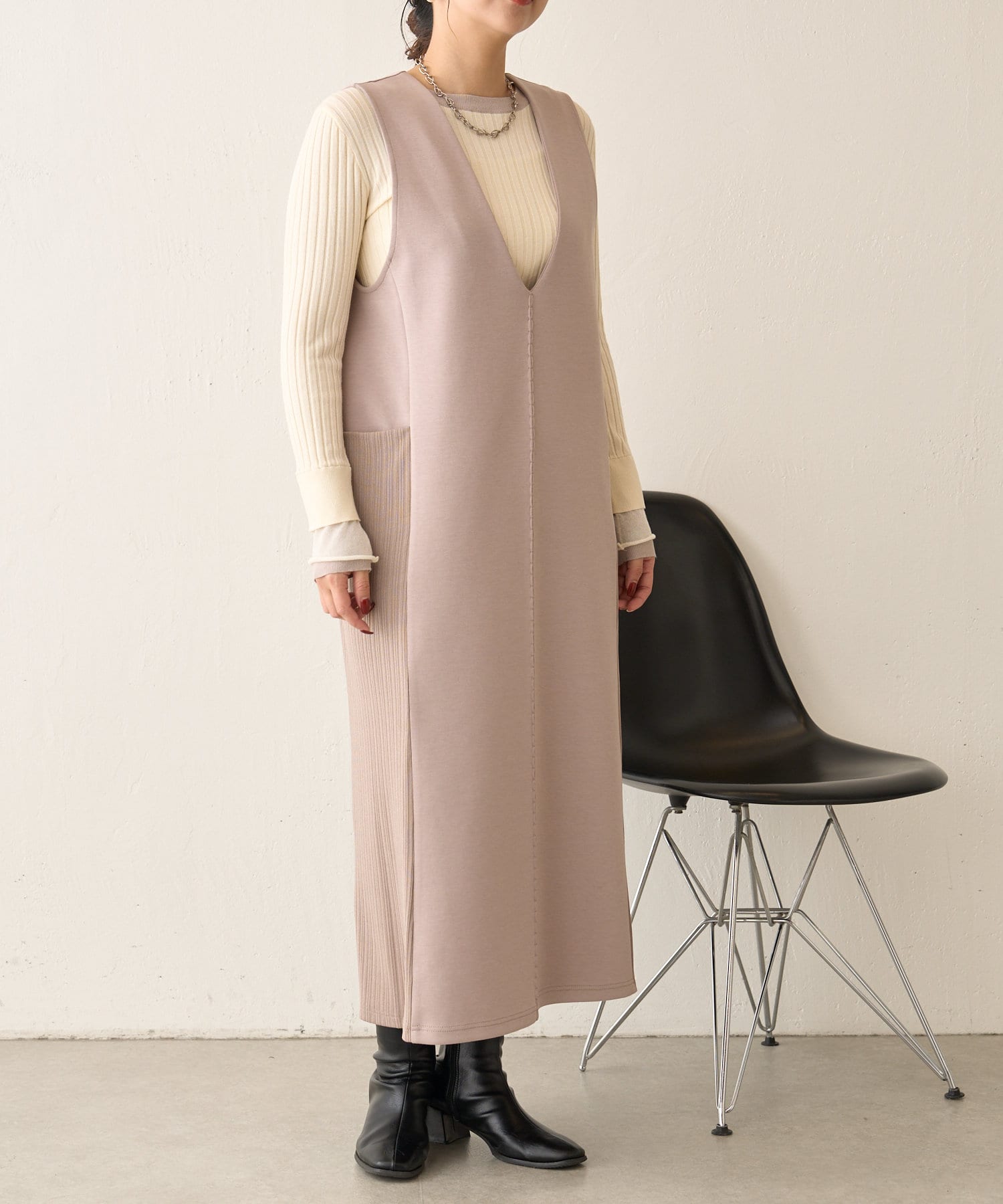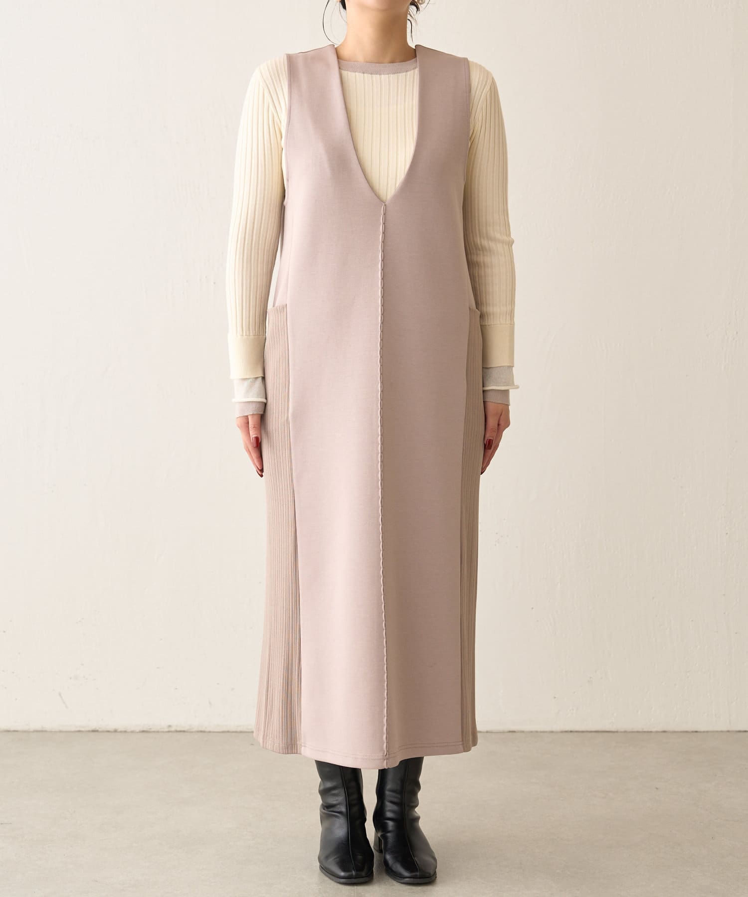 リブ切替ダンボールワンピース