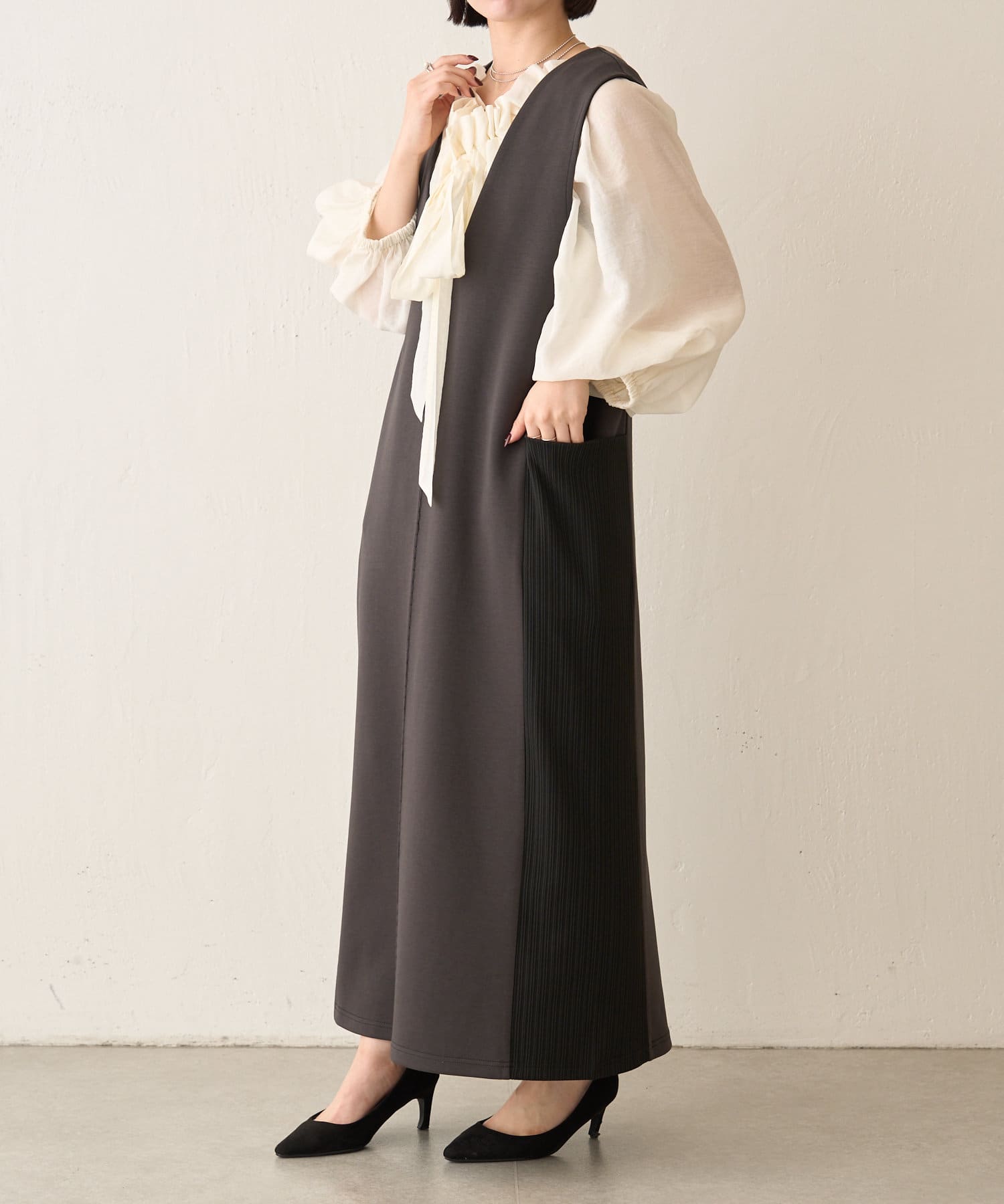 ・伸縮性もあり、軽やかな着心地。シワになりにくいのも嬉しいポイント。