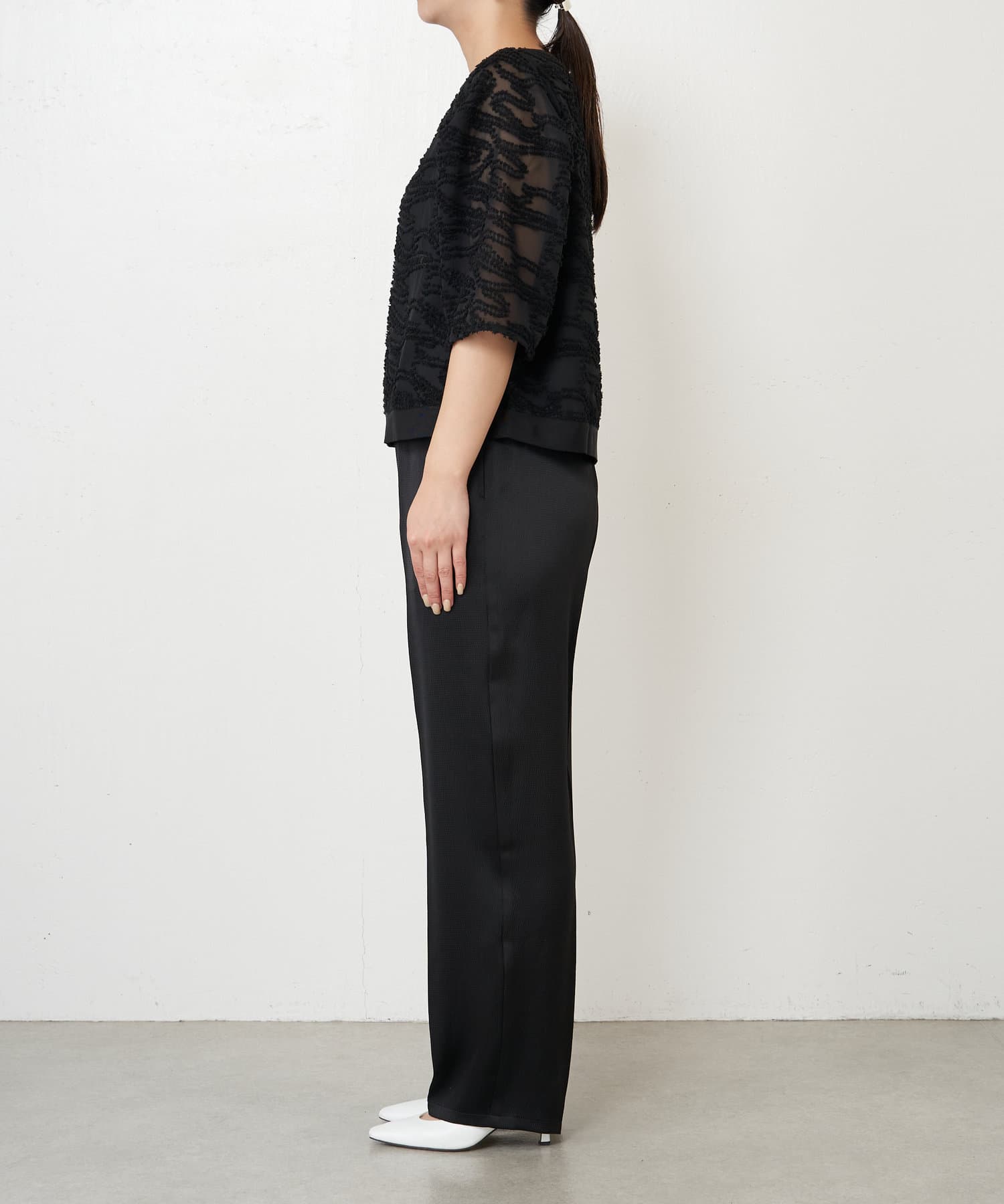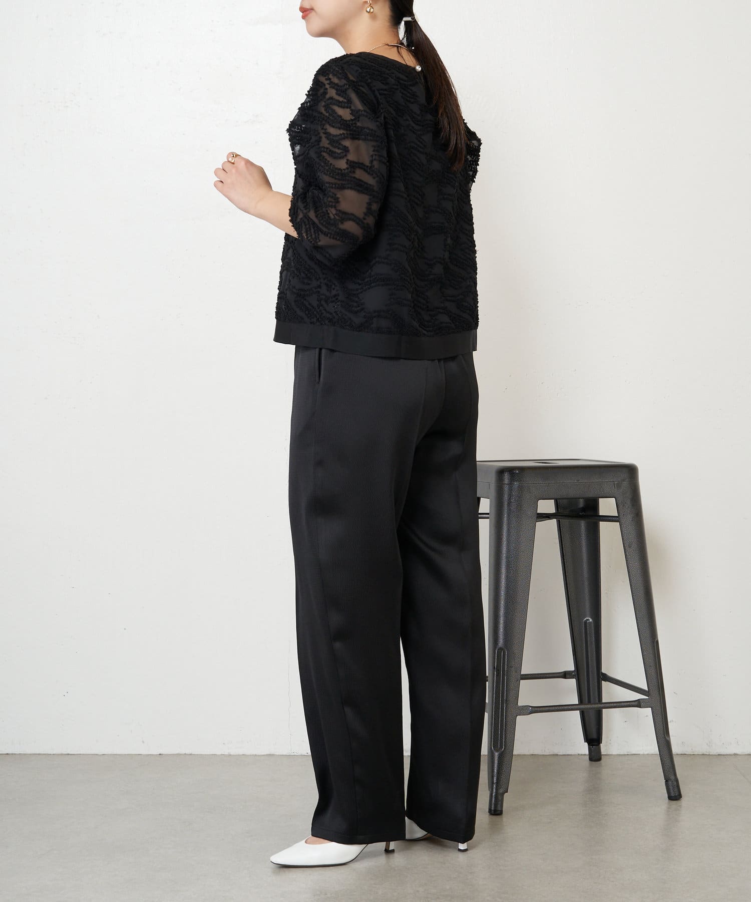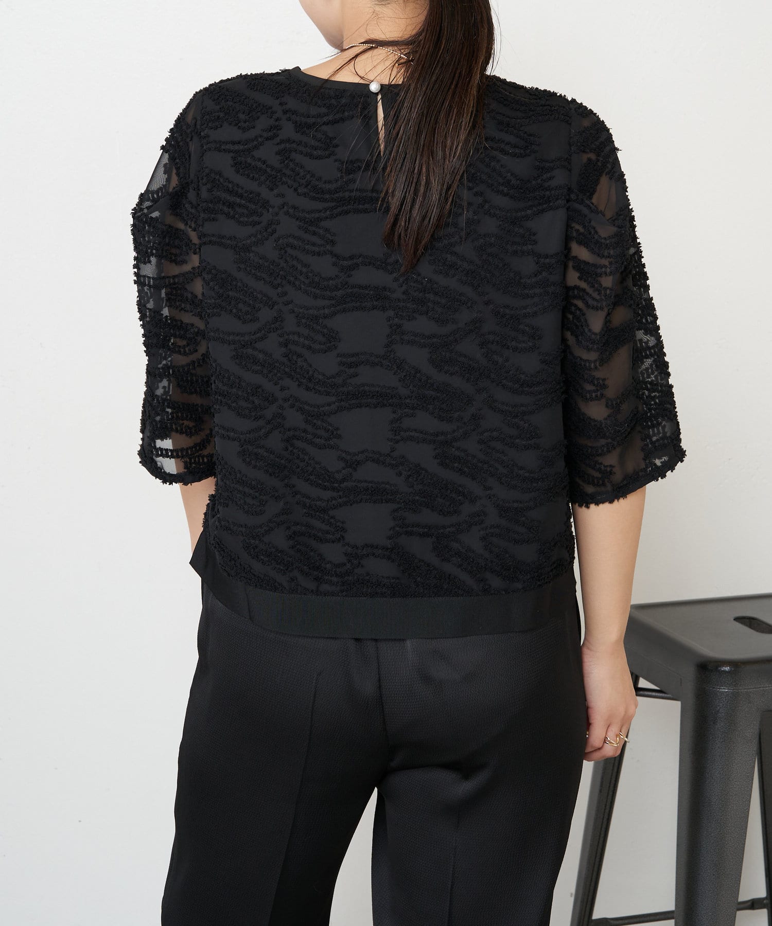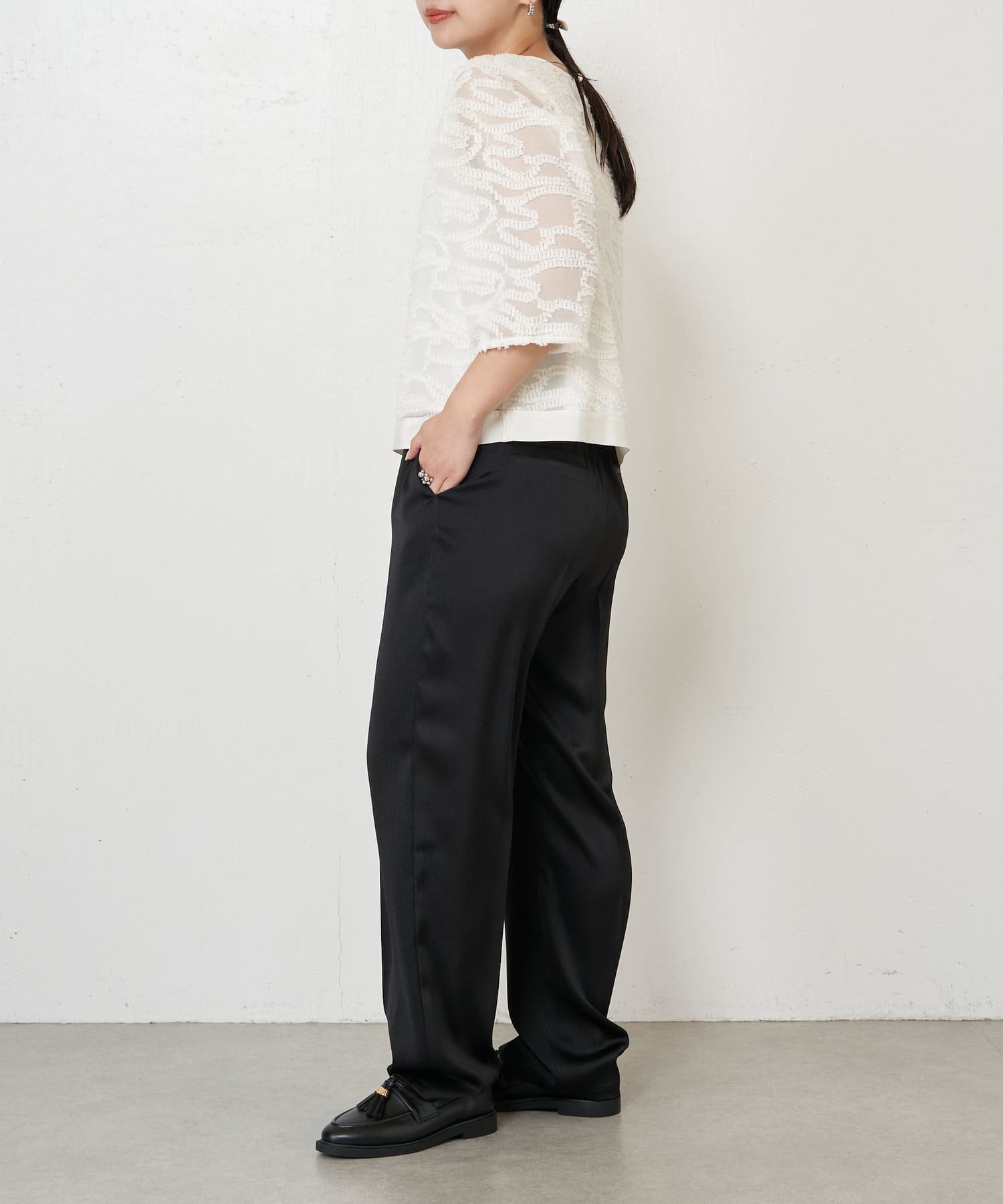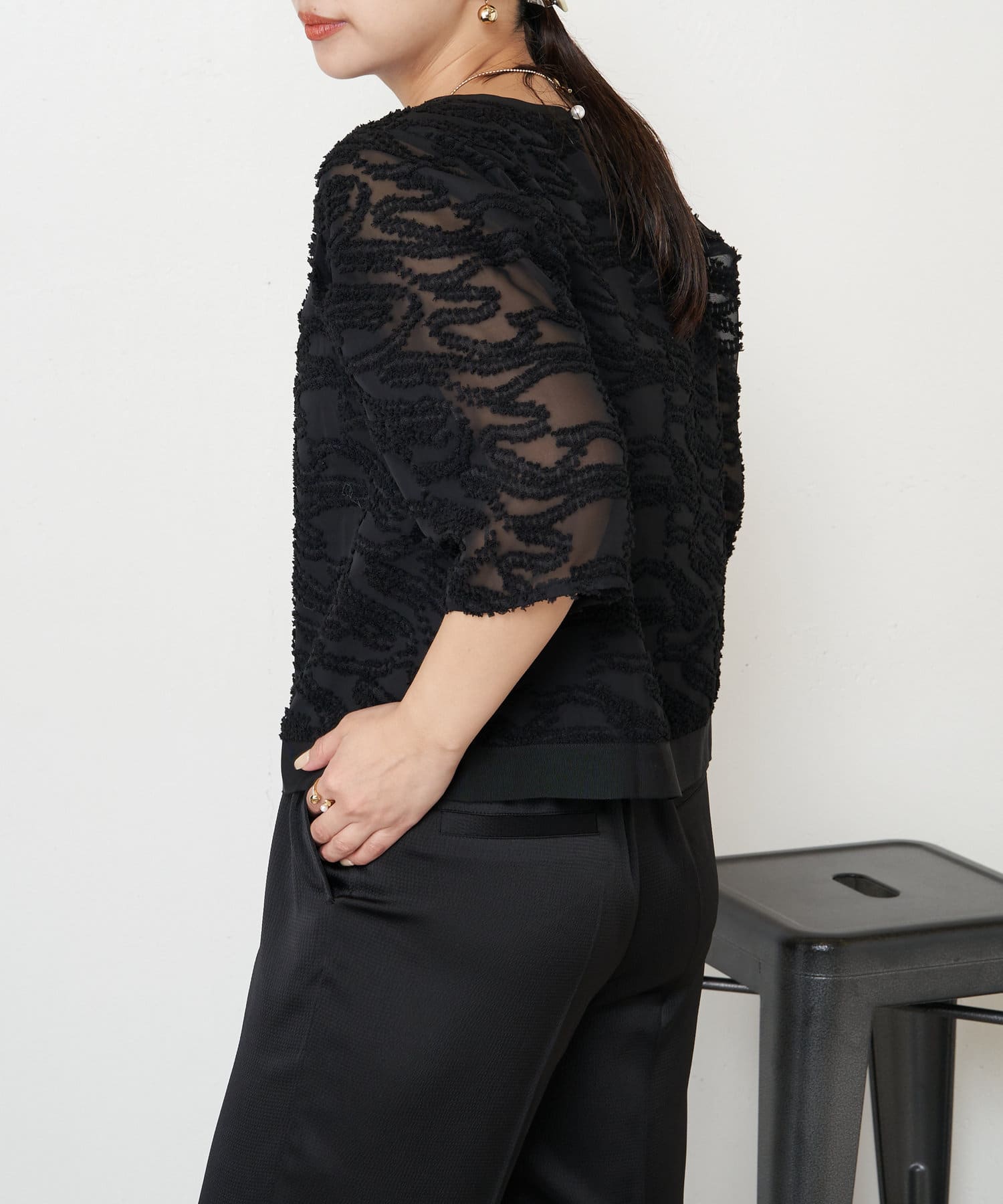 ・きちんと感があり、トップスは程よい透け感があるので上品にお召いただけます。