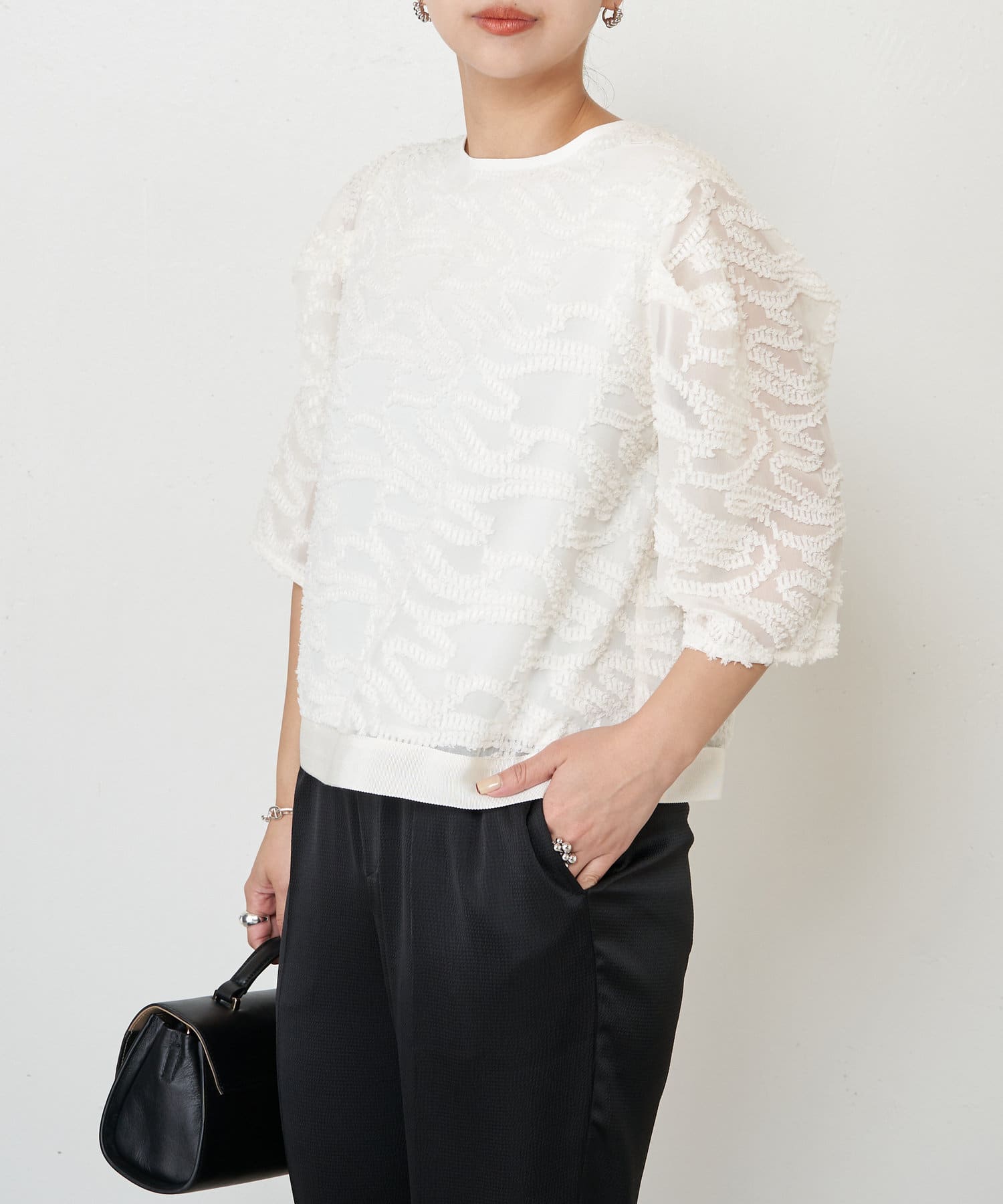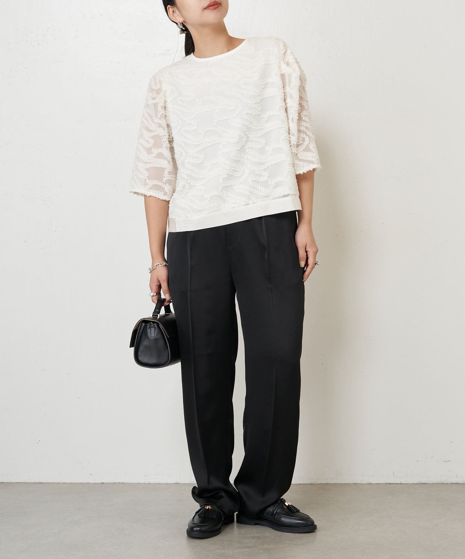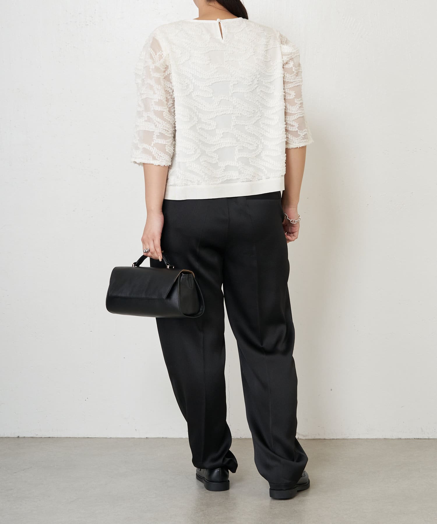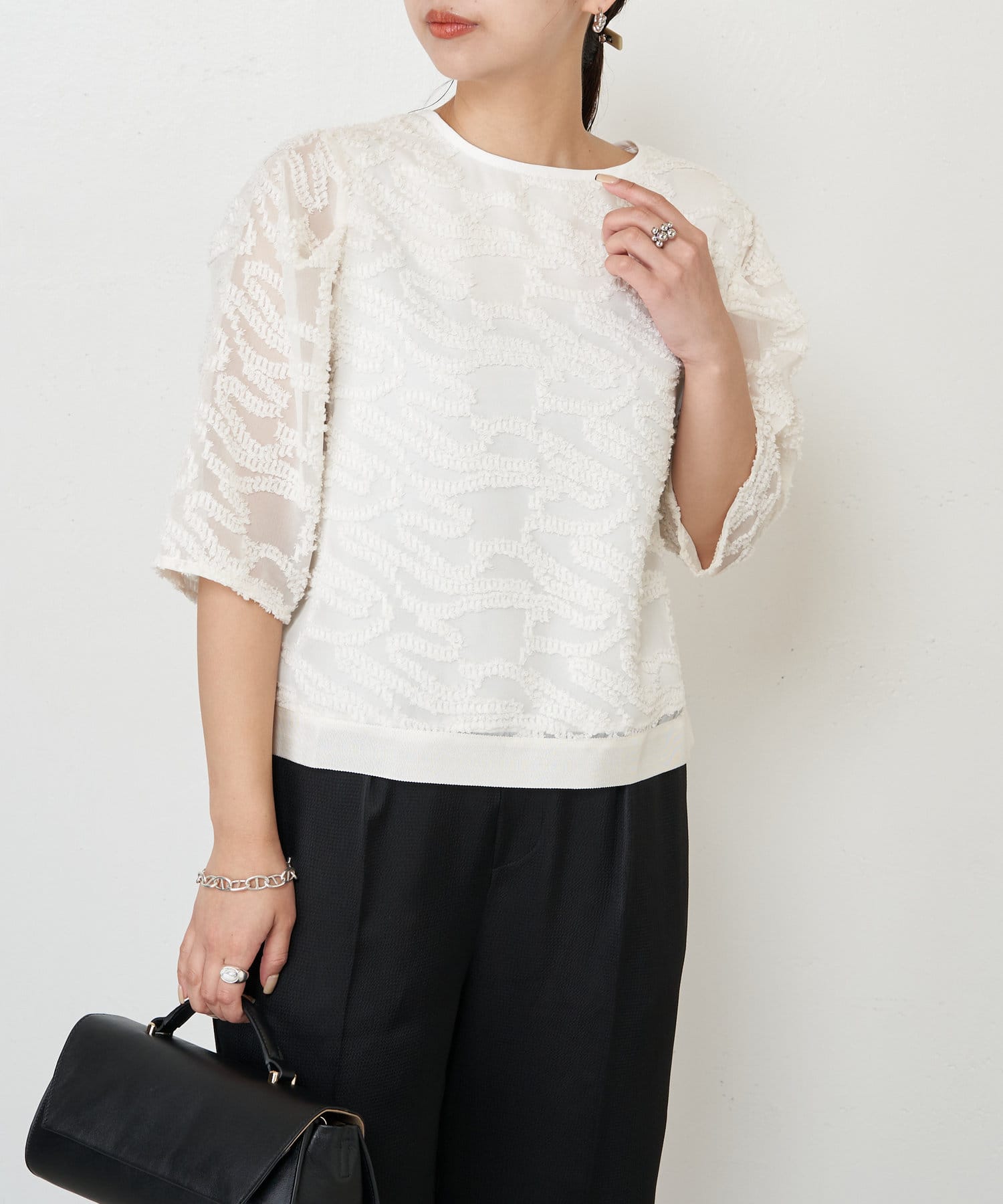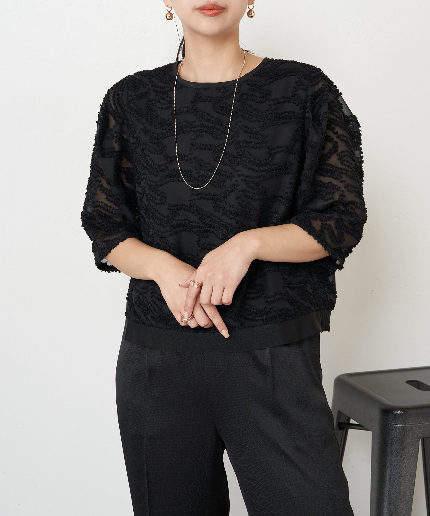 ・きちんと感があり、トップスは程よい透け感があるので上品にお召いただけます。