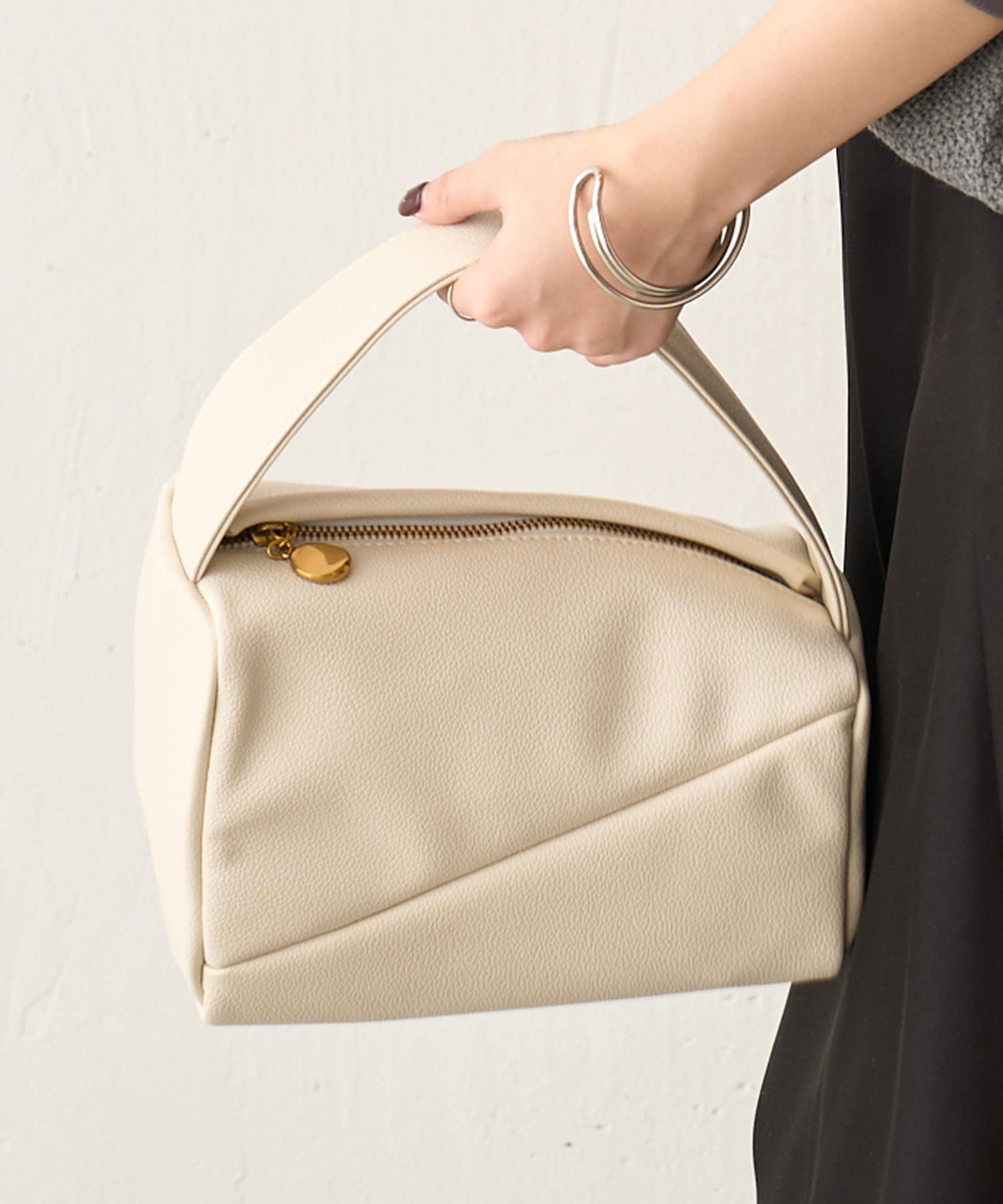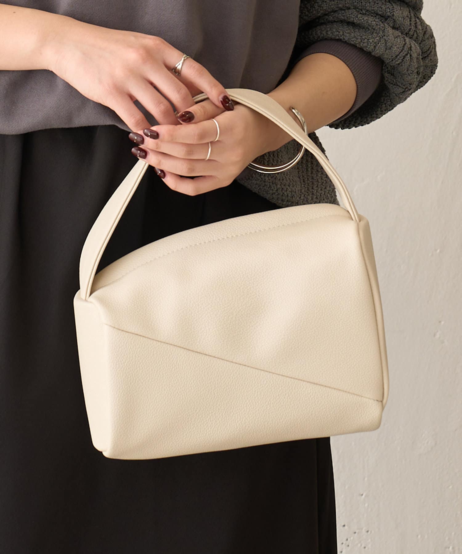 ・アシンメトリーなスクエアシルエットがトレンド感あるワンハンドルバッグ。