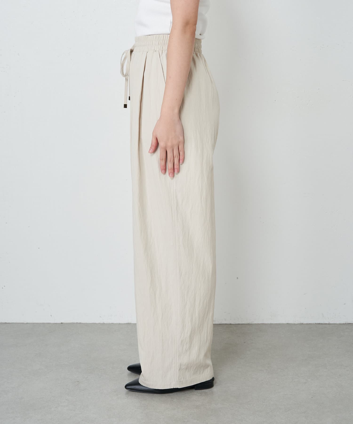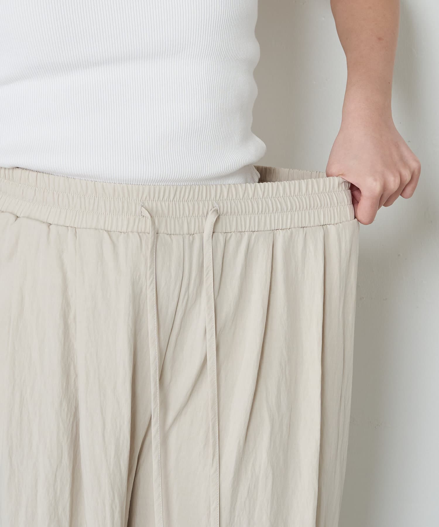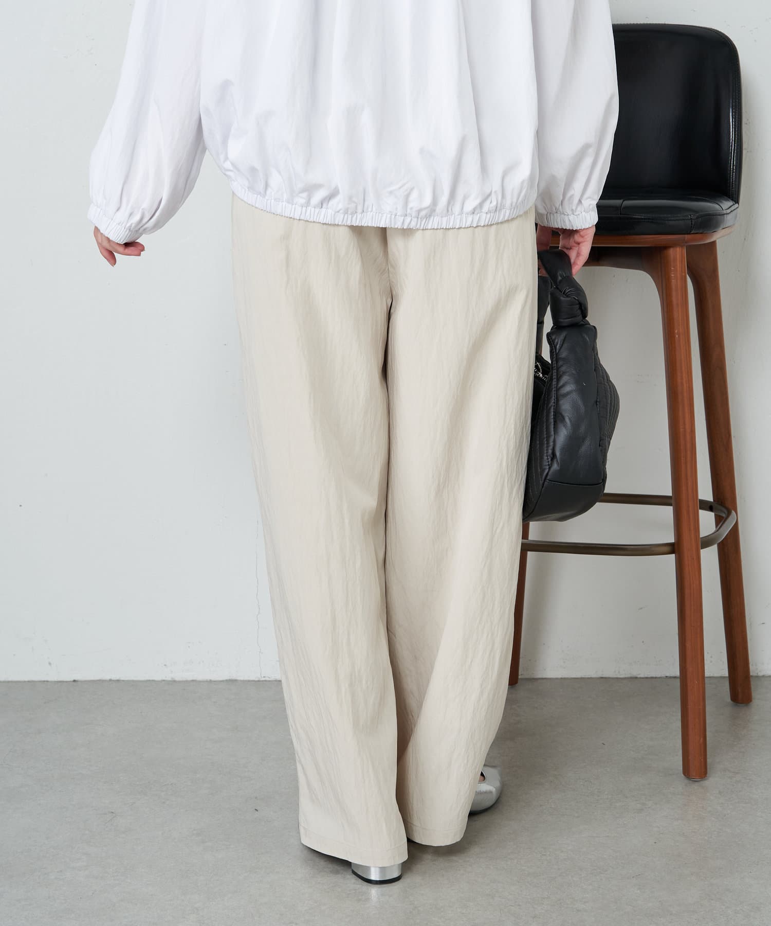 ・シャカっとしたナイロン地のカジュアルなイージーパンツ。