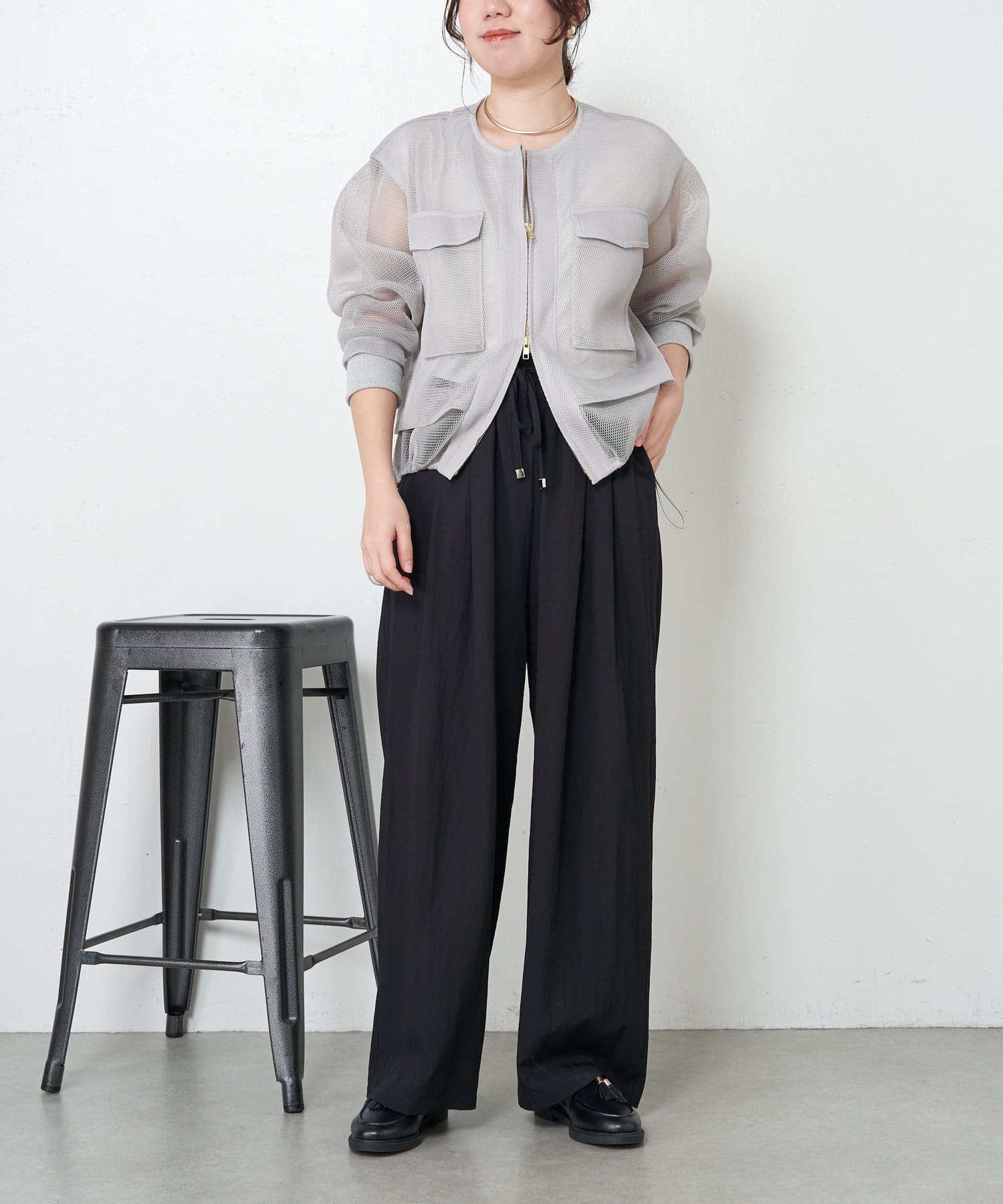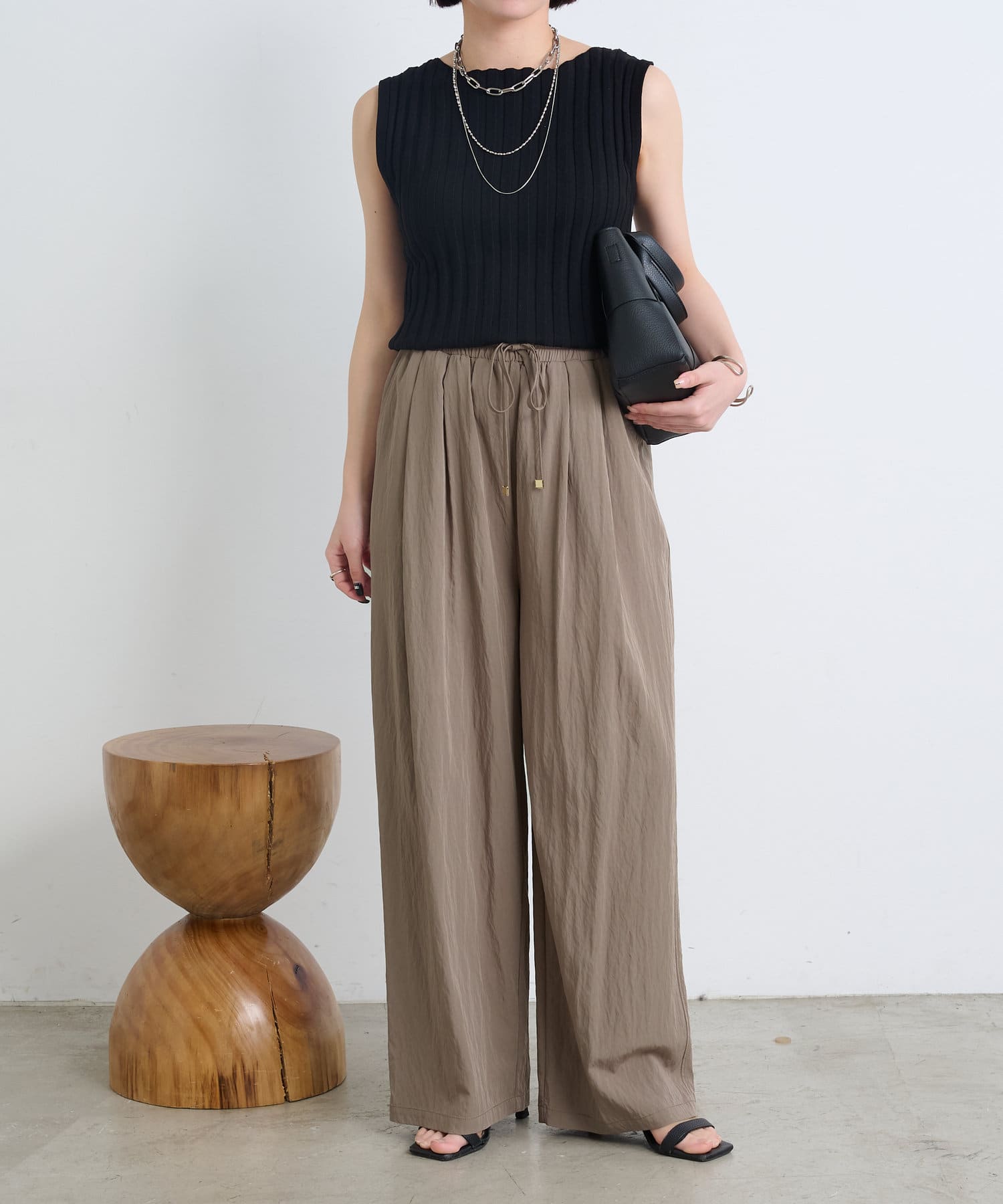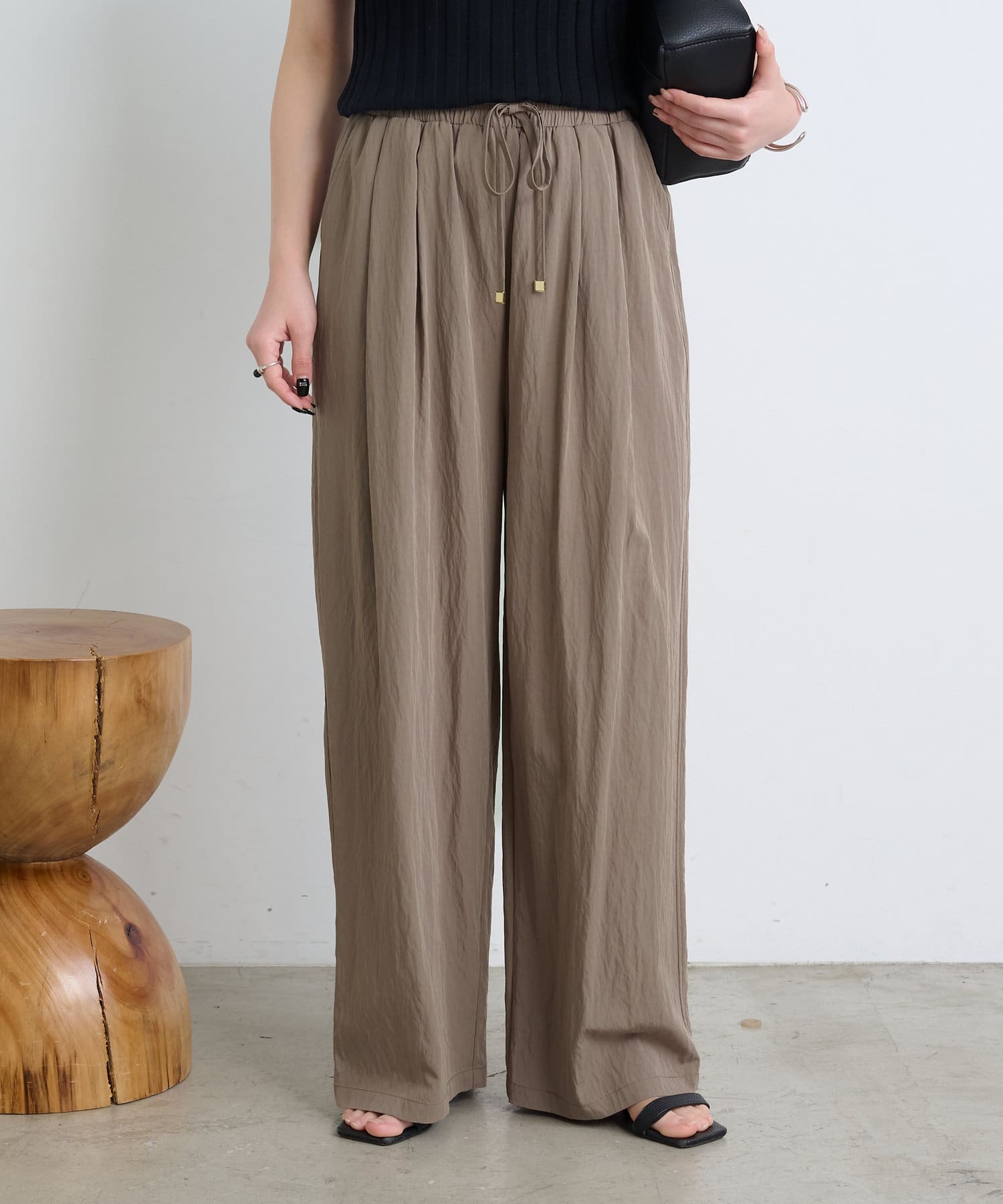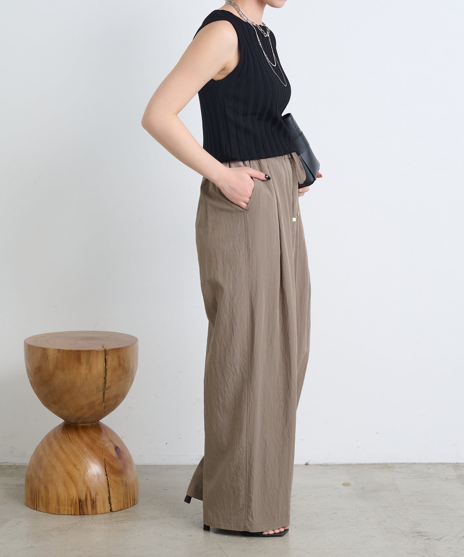 ・シャカっとしたナイロン地のカジュアルなイージーパンツ。