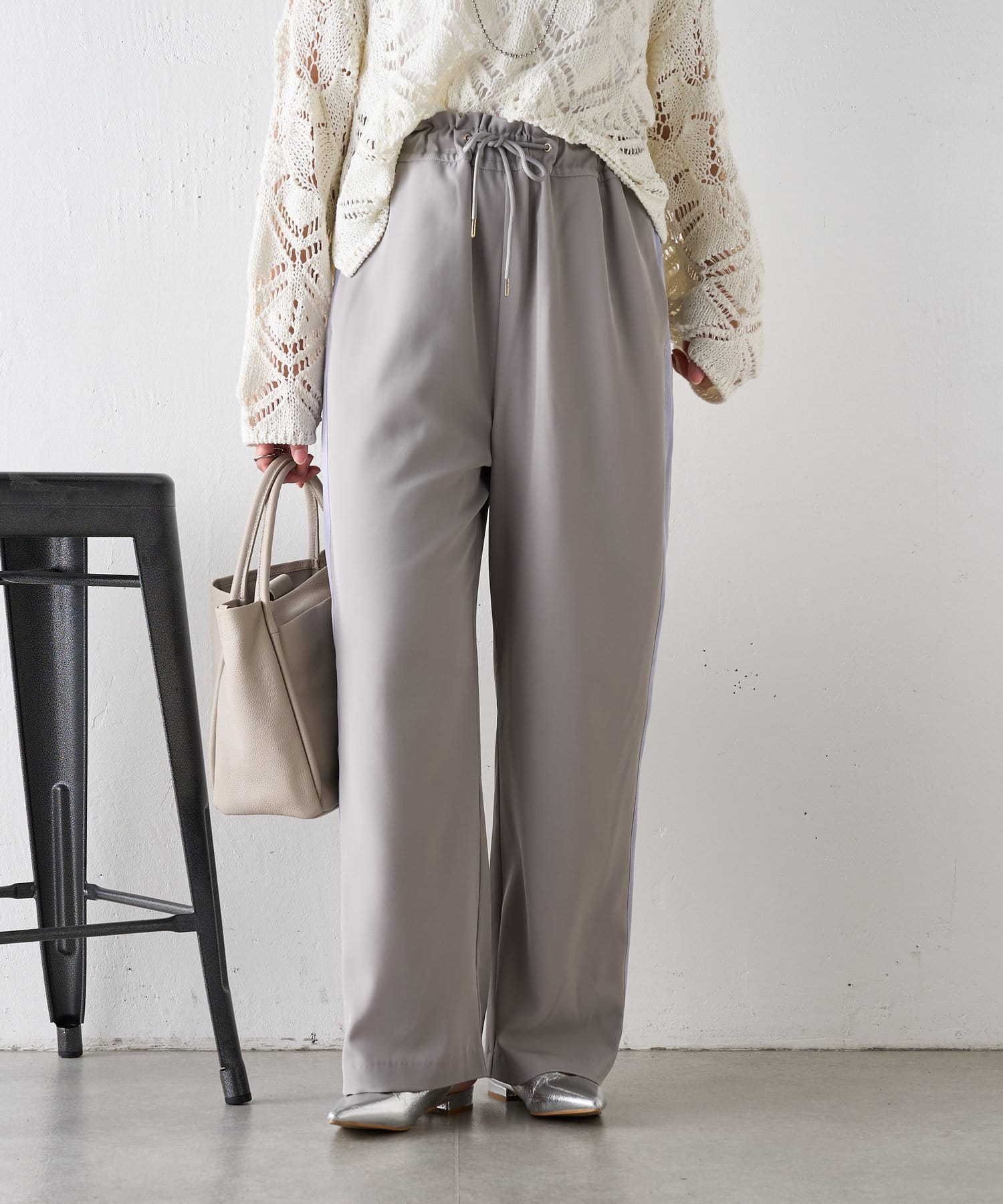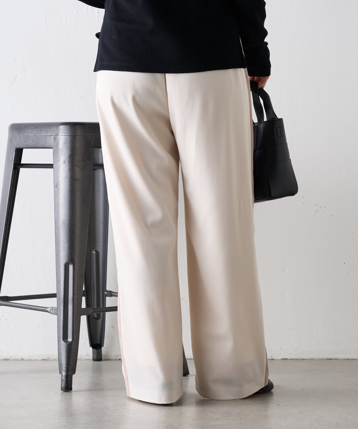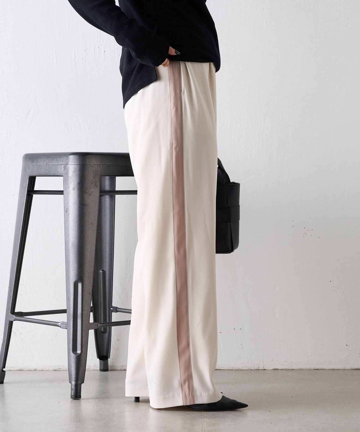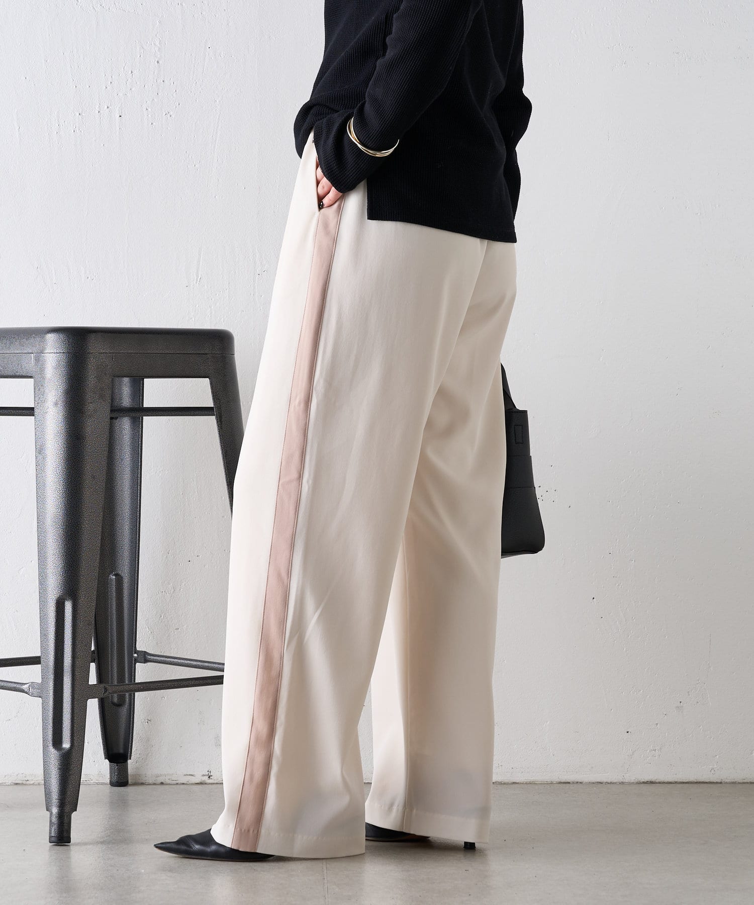 ・スッキリ見えする縦ラインのデザインがポイントのパンツ。
