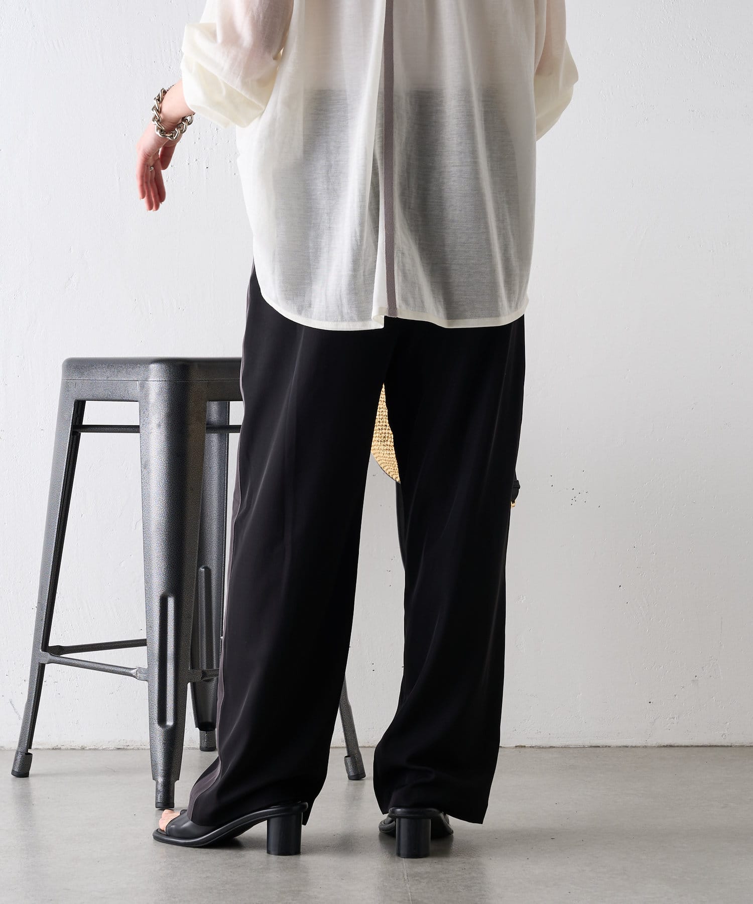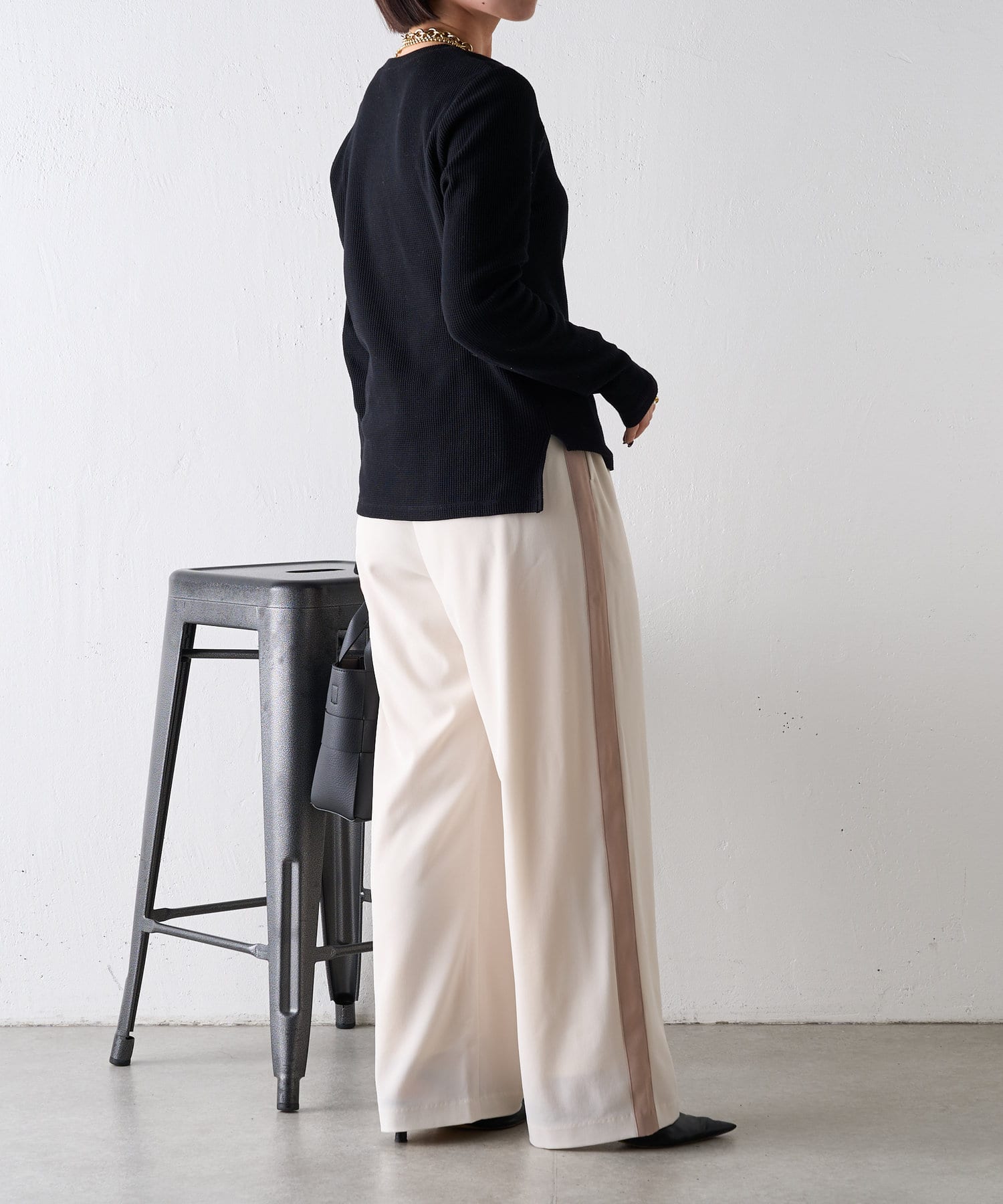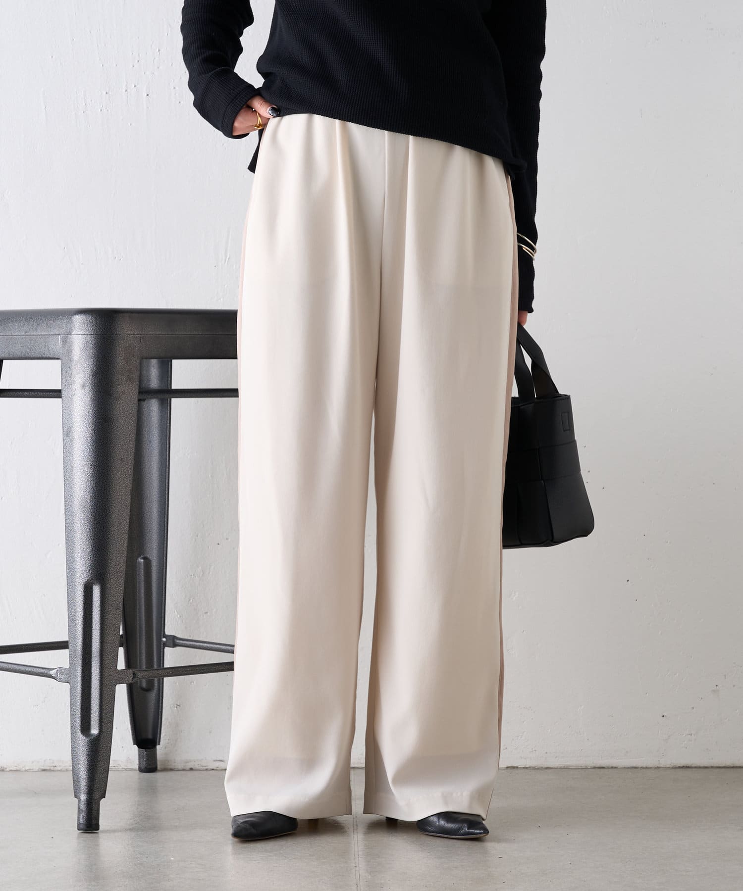 ・スッキリ見えする縦ラインのデザインがポイントのパンツ。