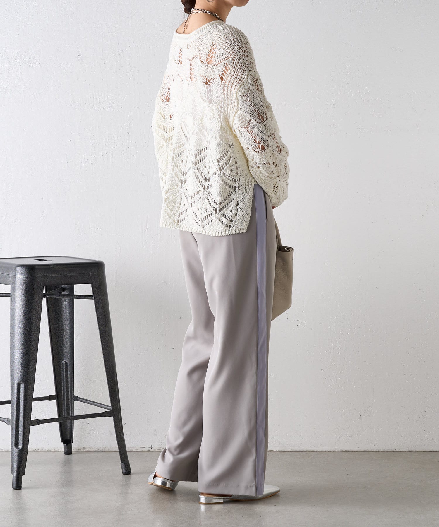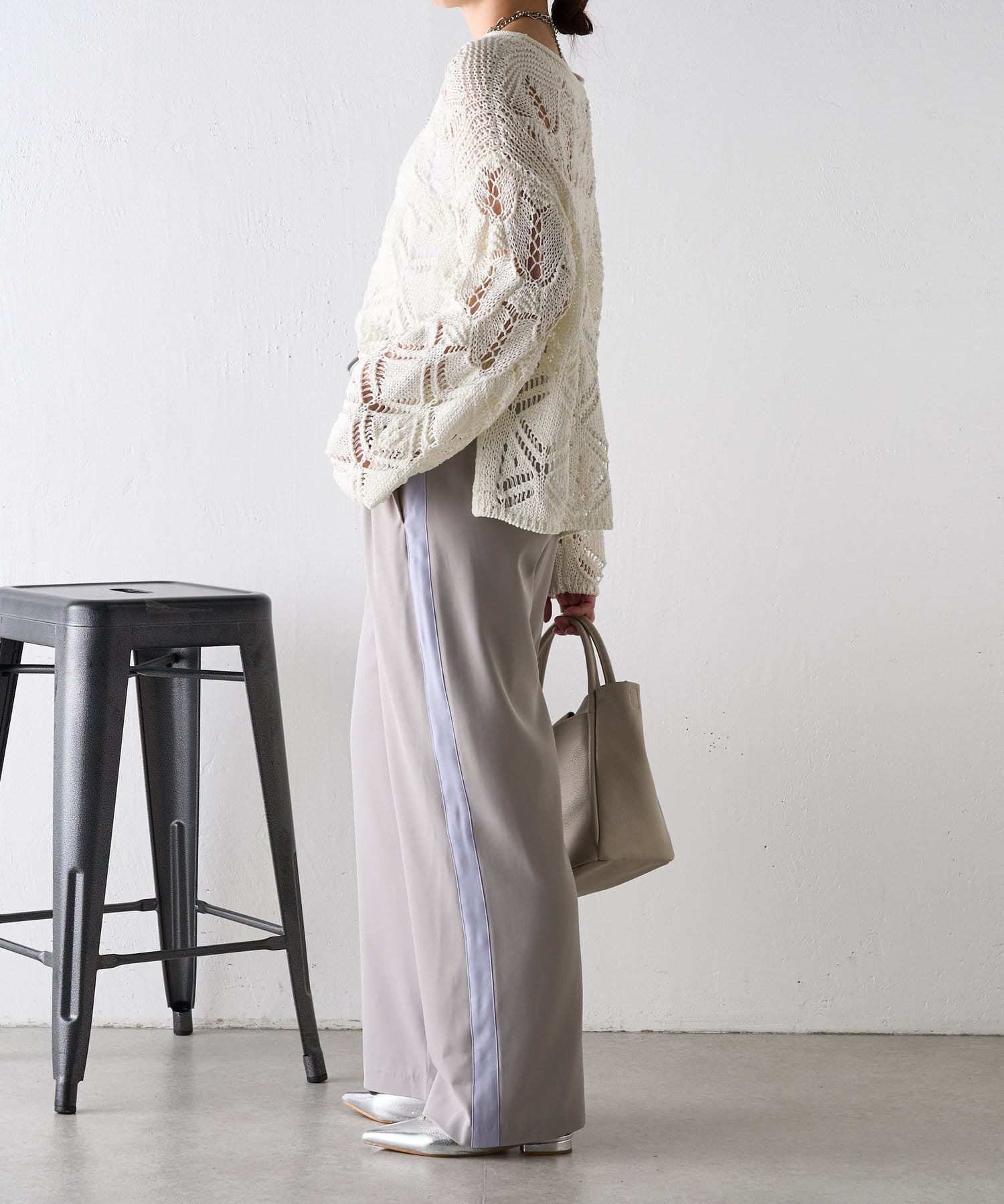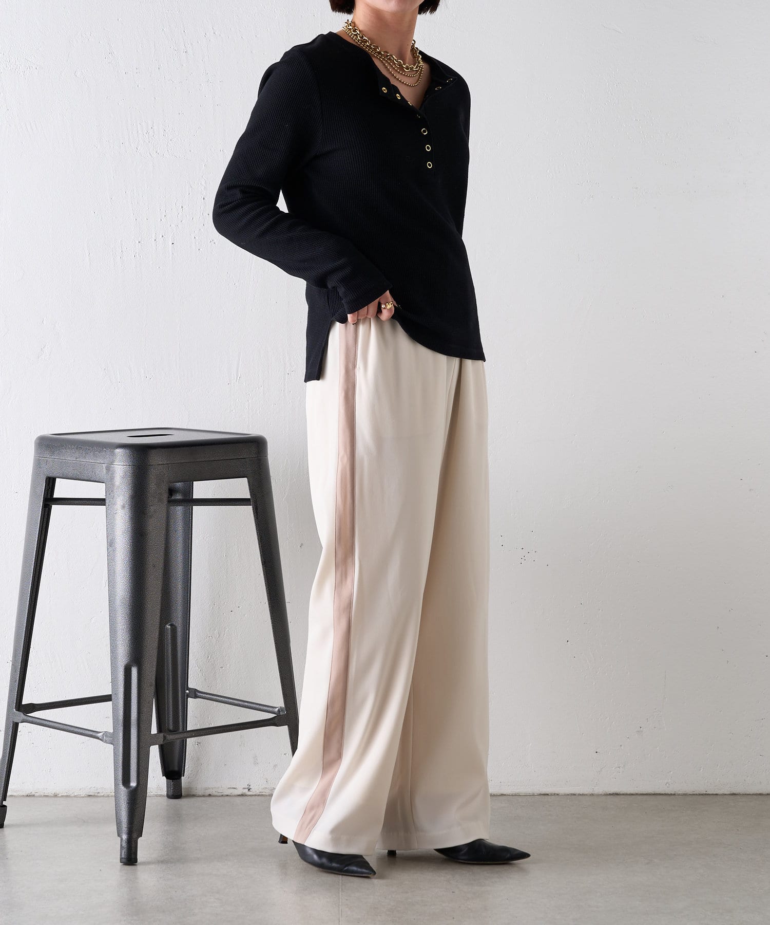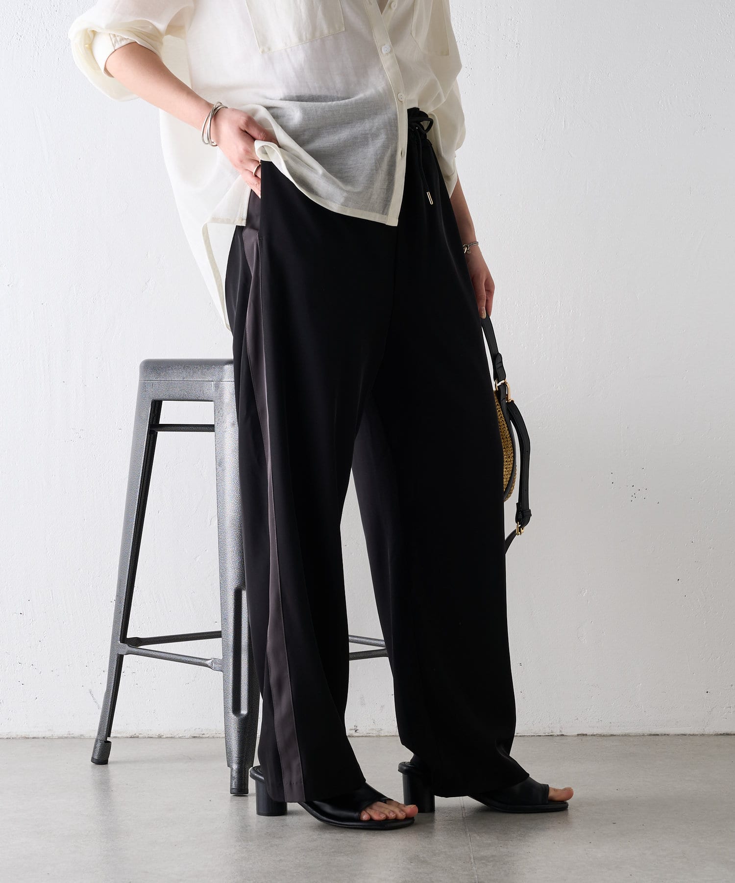 ・スッキリ見えする縦ラインのデザインがポイントのパンツ。