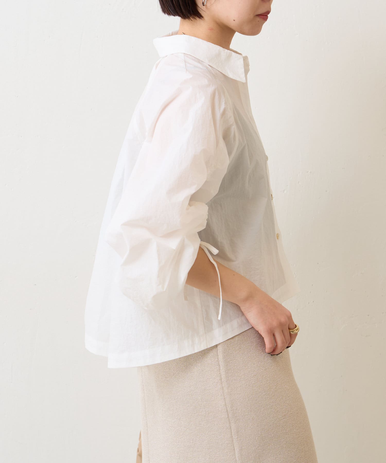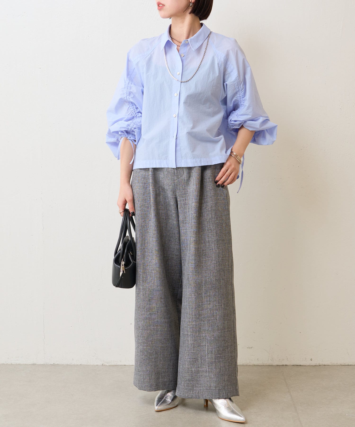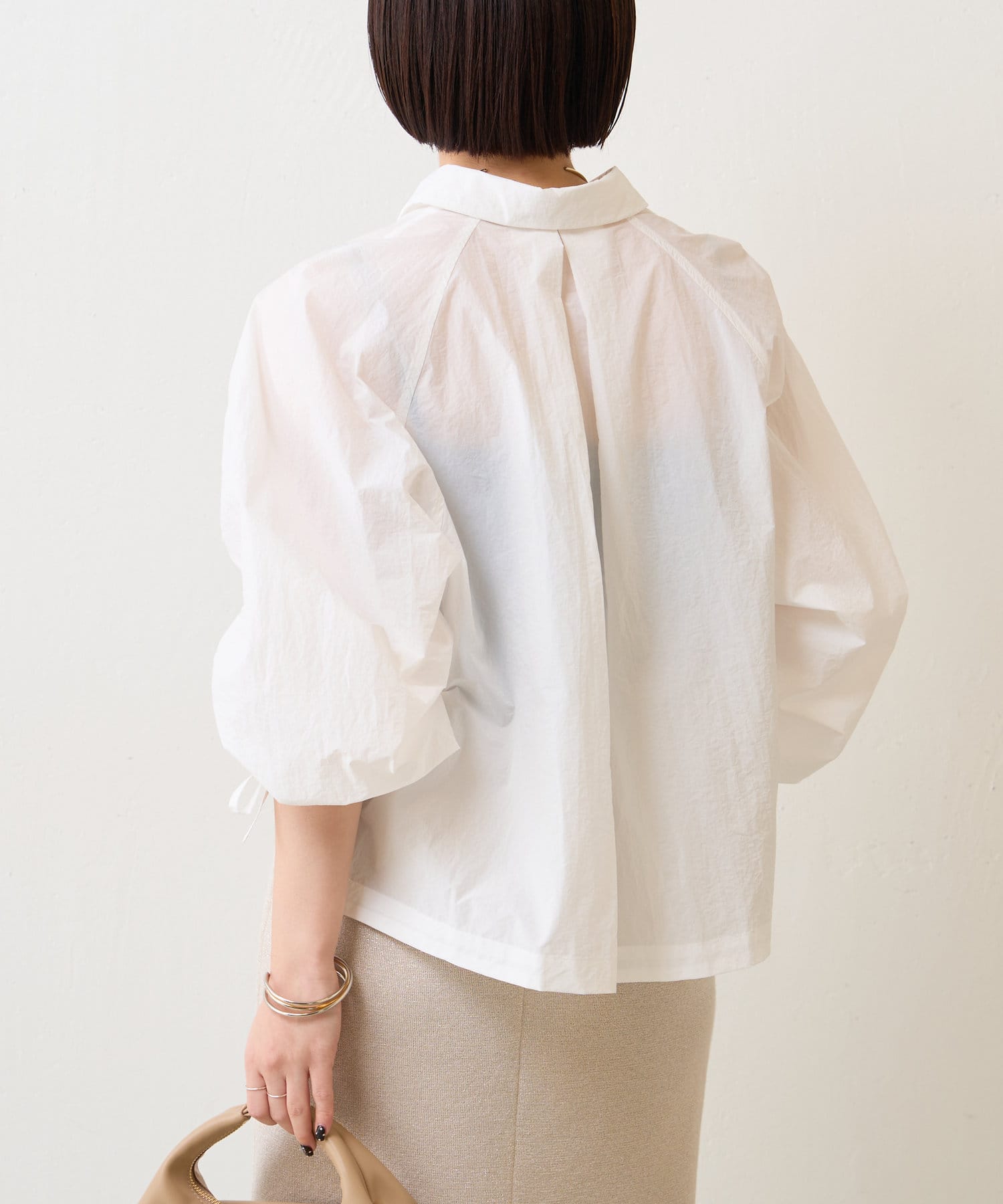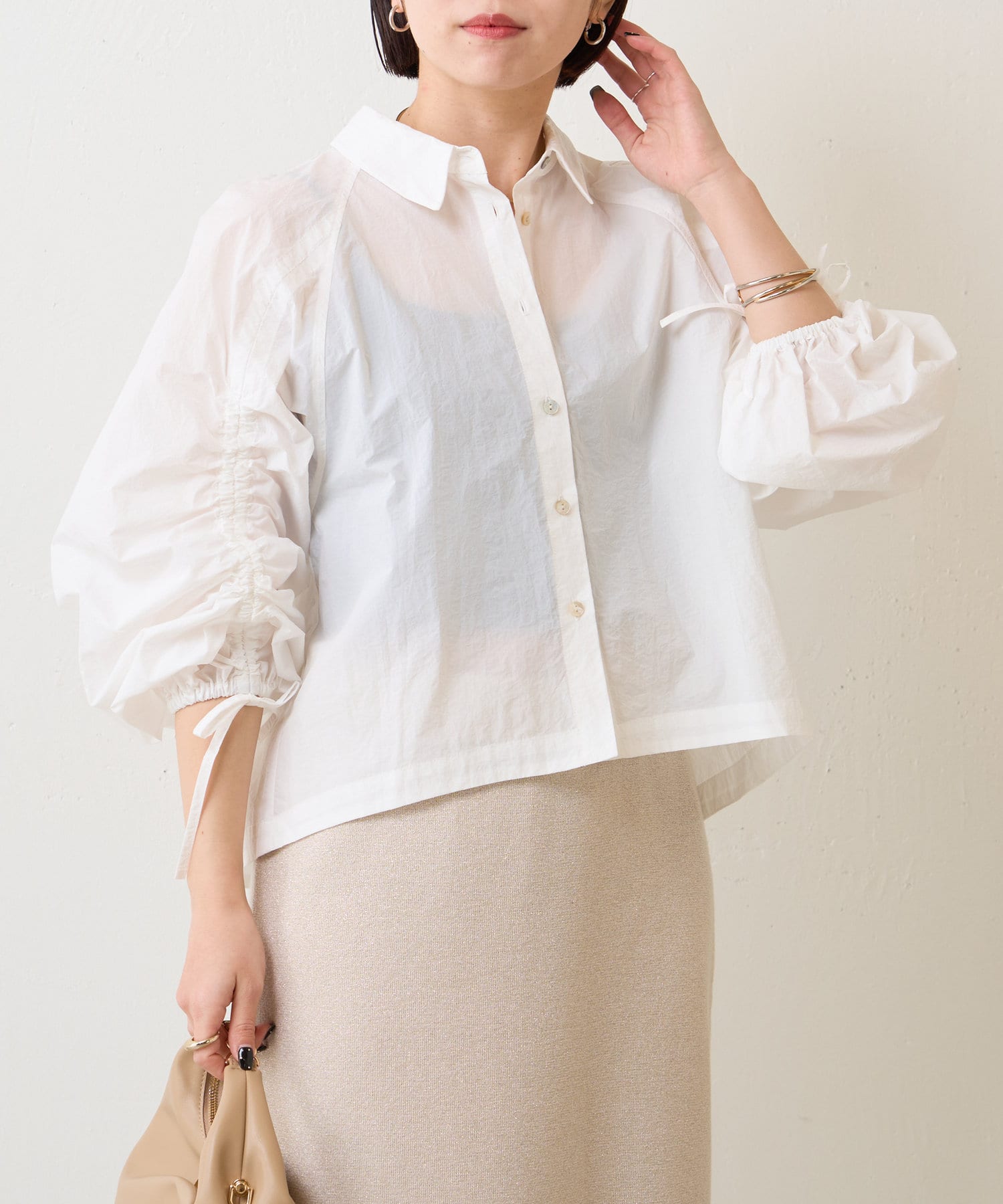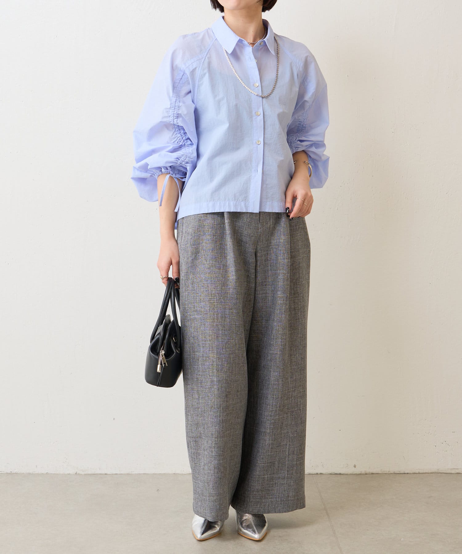 ・袖のシャーリングが特徴的なデザインのブラウスです。