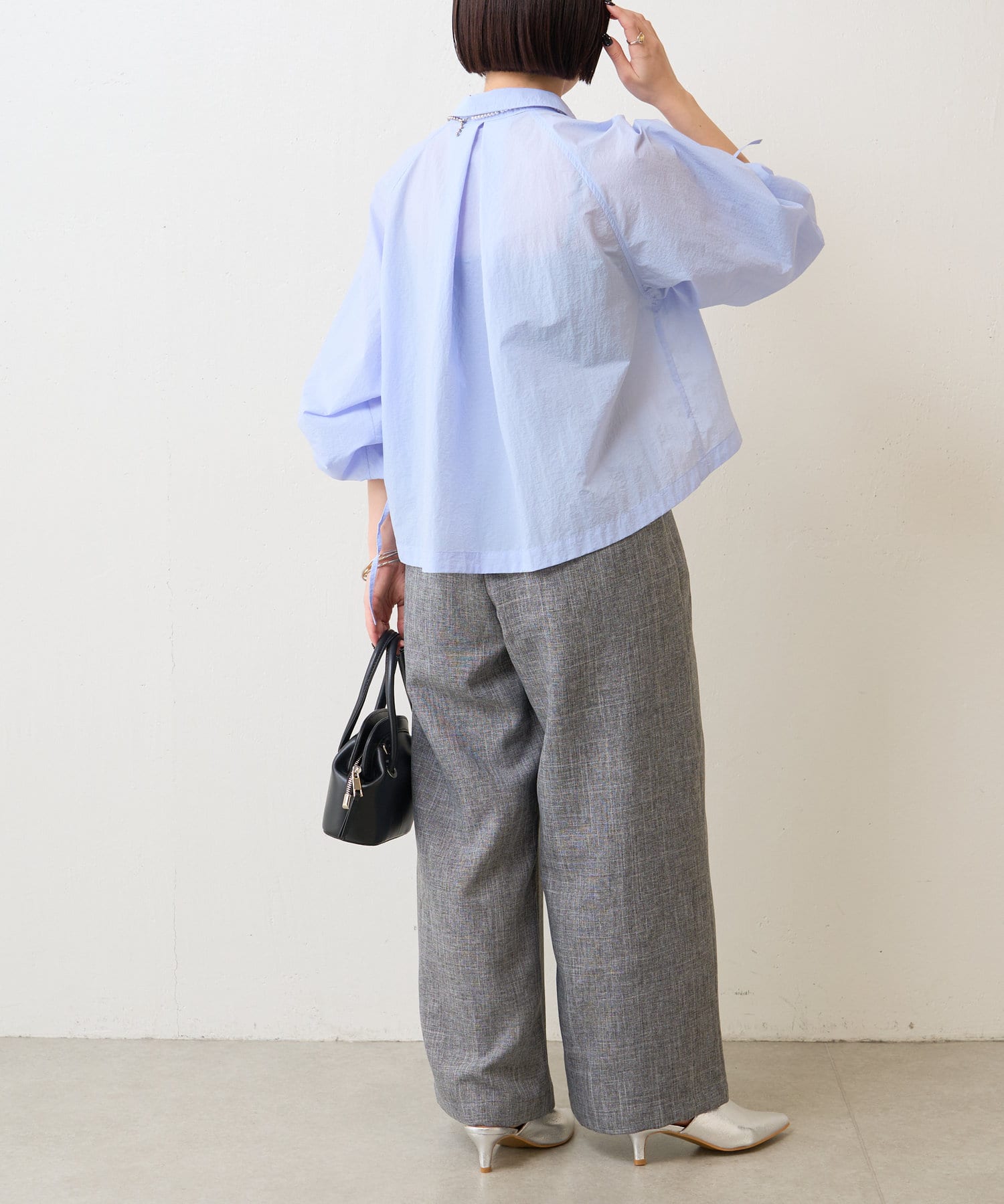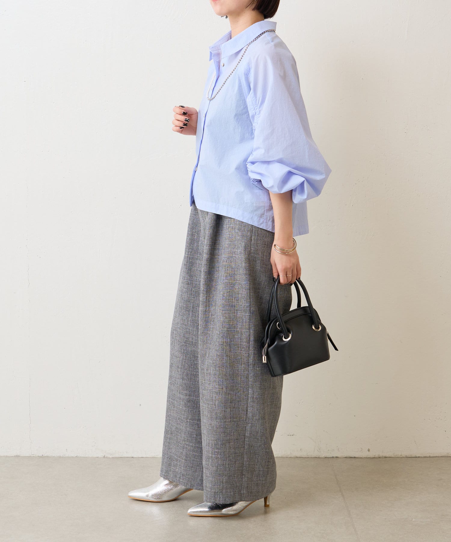 ・ショート丈なのでワイドパンツなどボリュームのボトムスなどと相性抜群。低身長さんでもキレイに着ていただけます◎