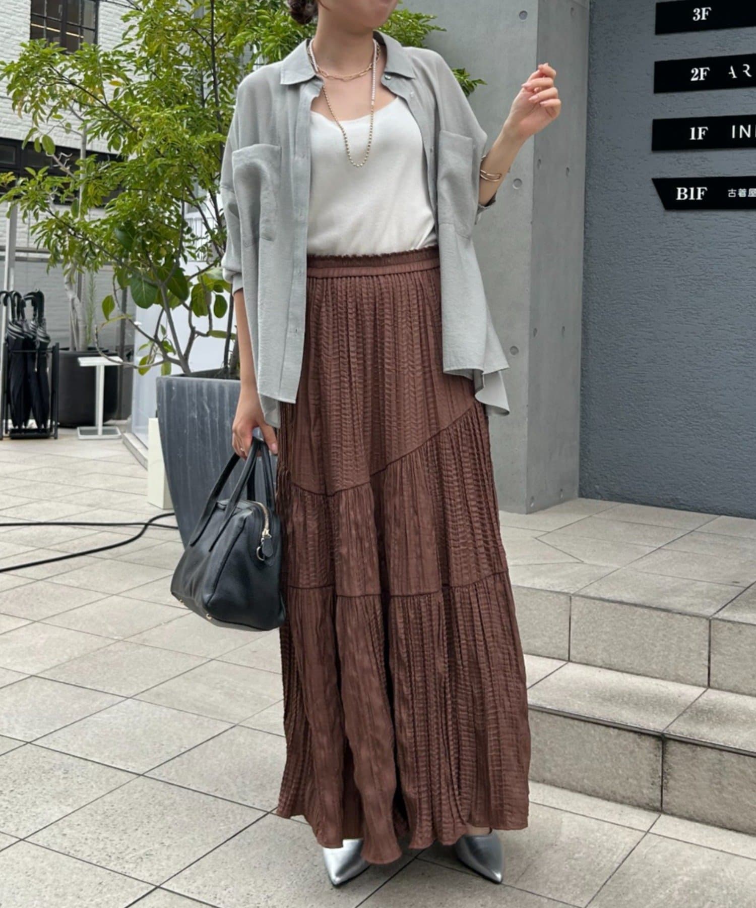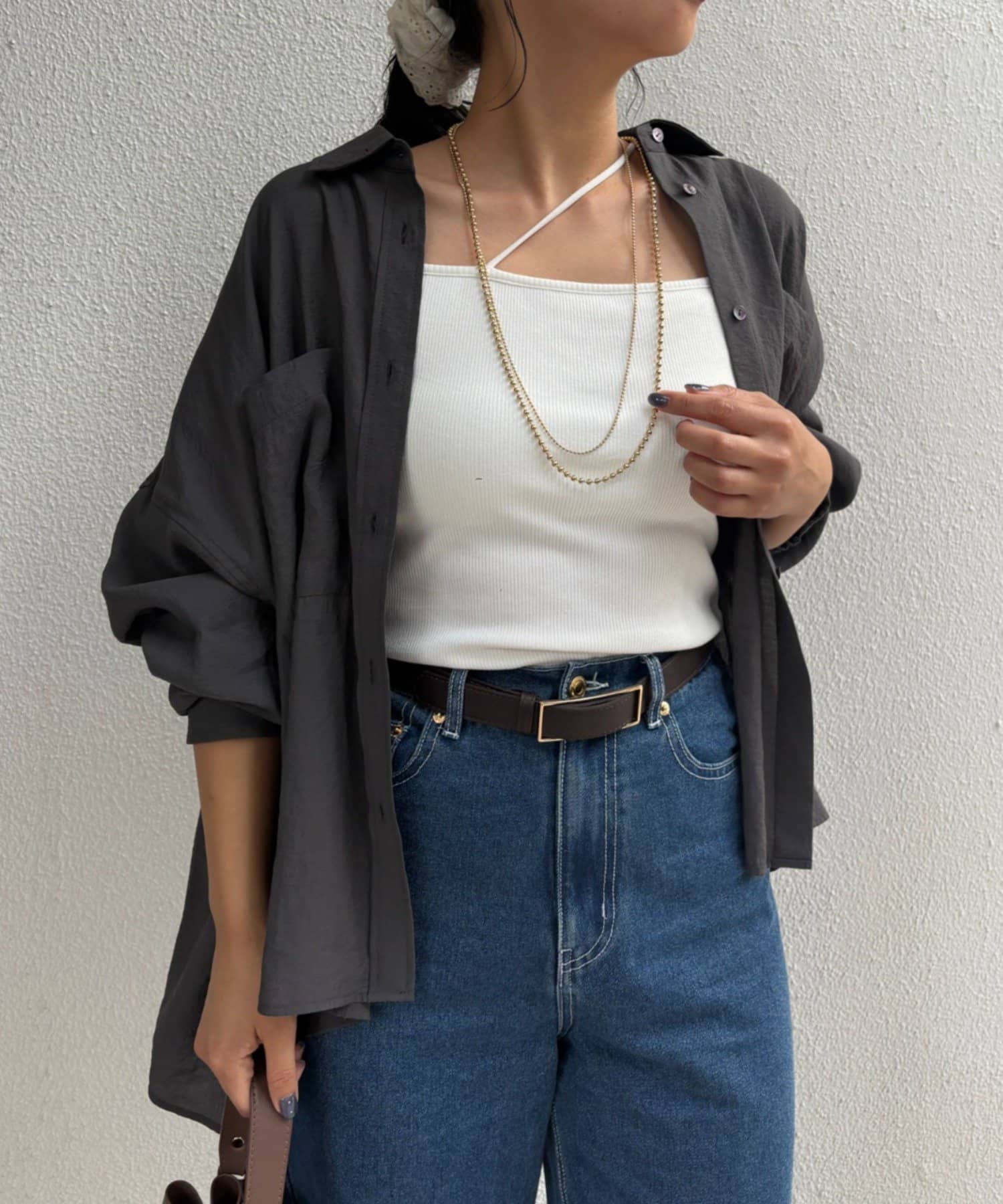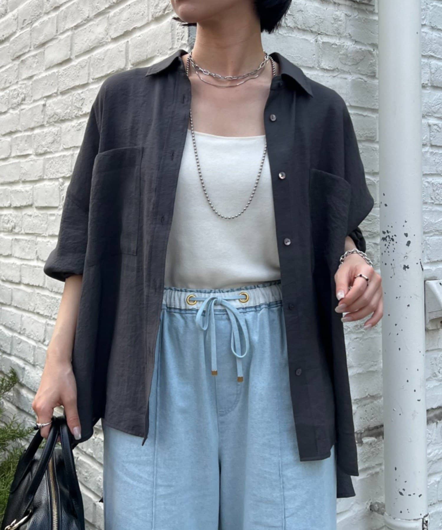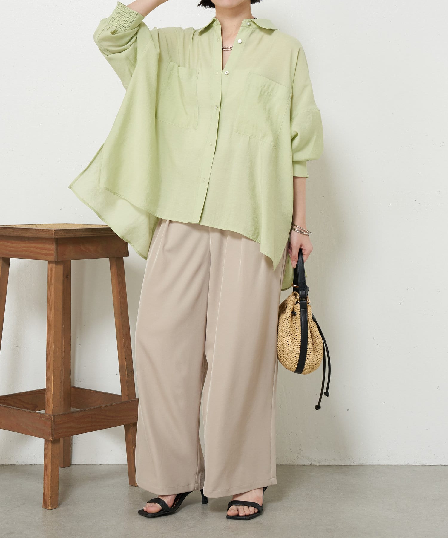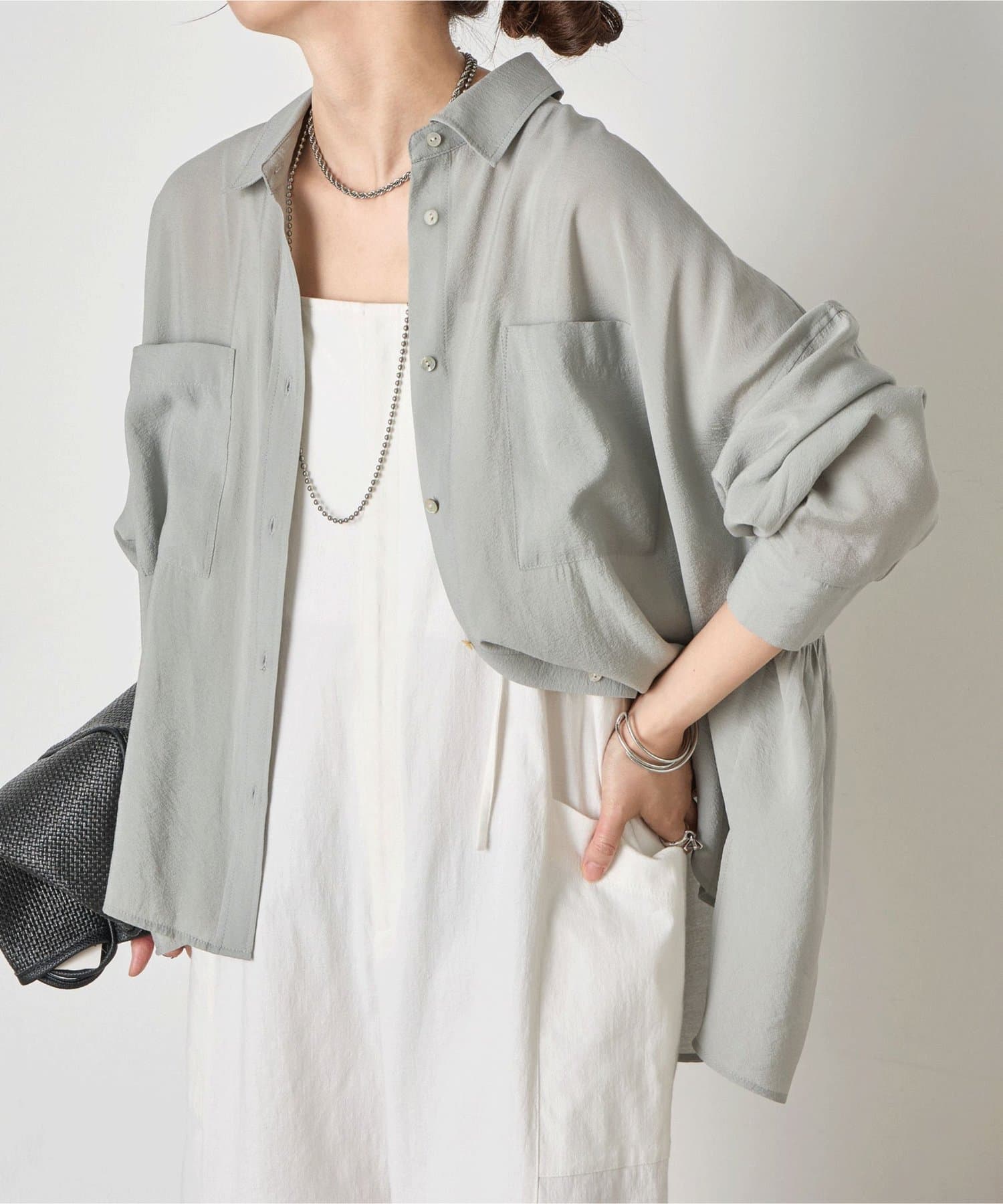 ・パンツやスカートとの相性も良く、一枚でさらりと着ても、ノースリーブやキャミソールの上から羽織としても活躍する万能アイテムです。