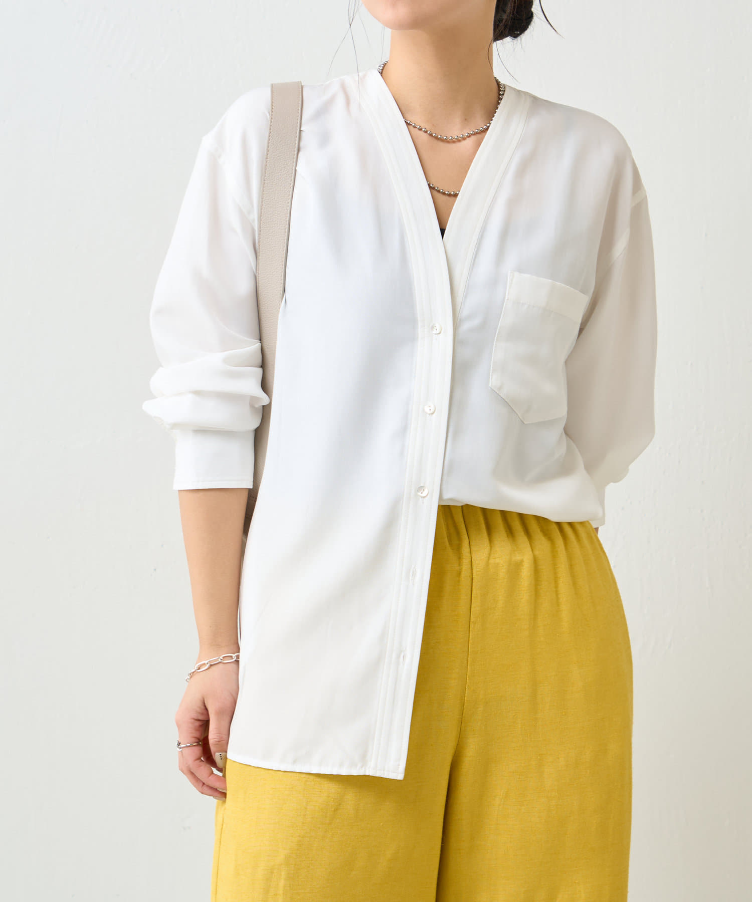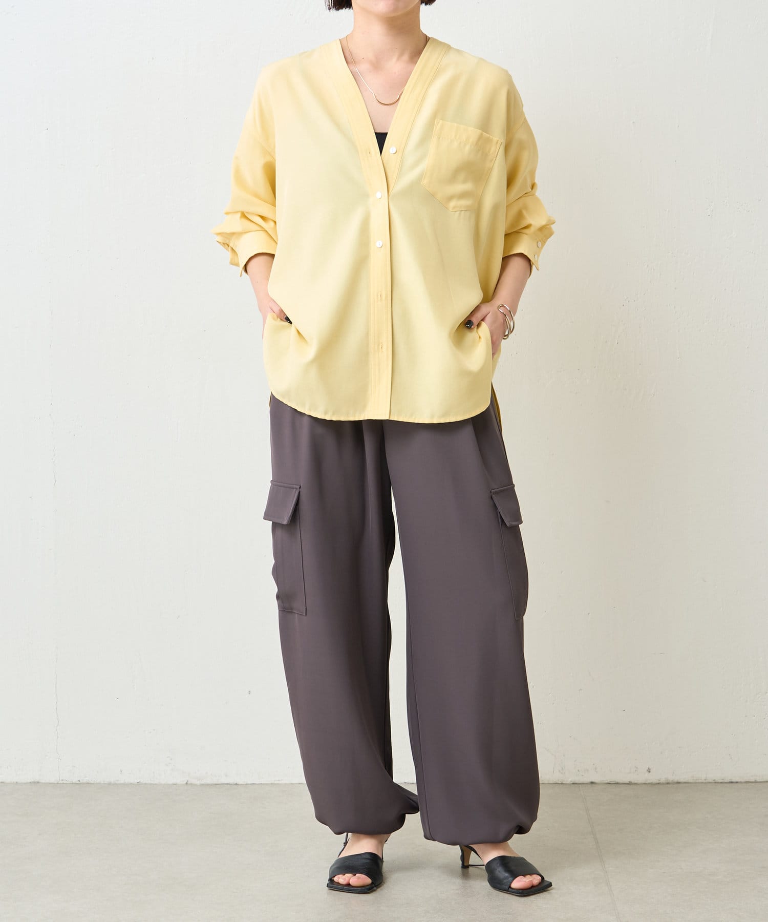 ・パンツスタイル・スカートスタイルどちらにもはまる万能シャツです。
