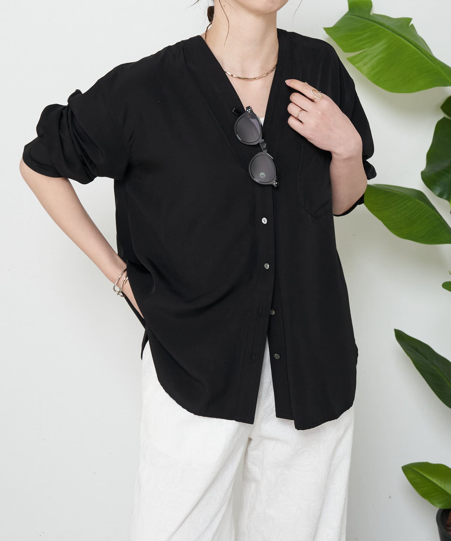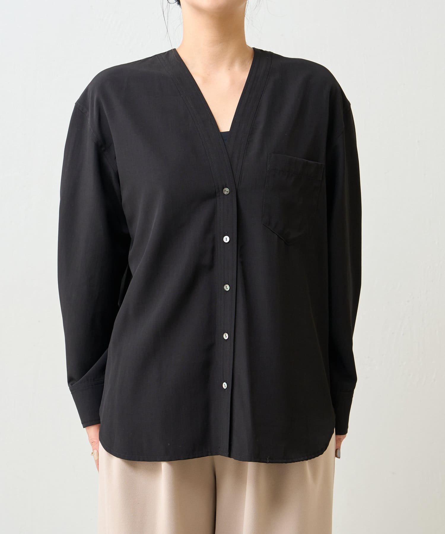 【SNSで話題/しわになりにくい/デコルテすっきり】トロミダブルVシャツ