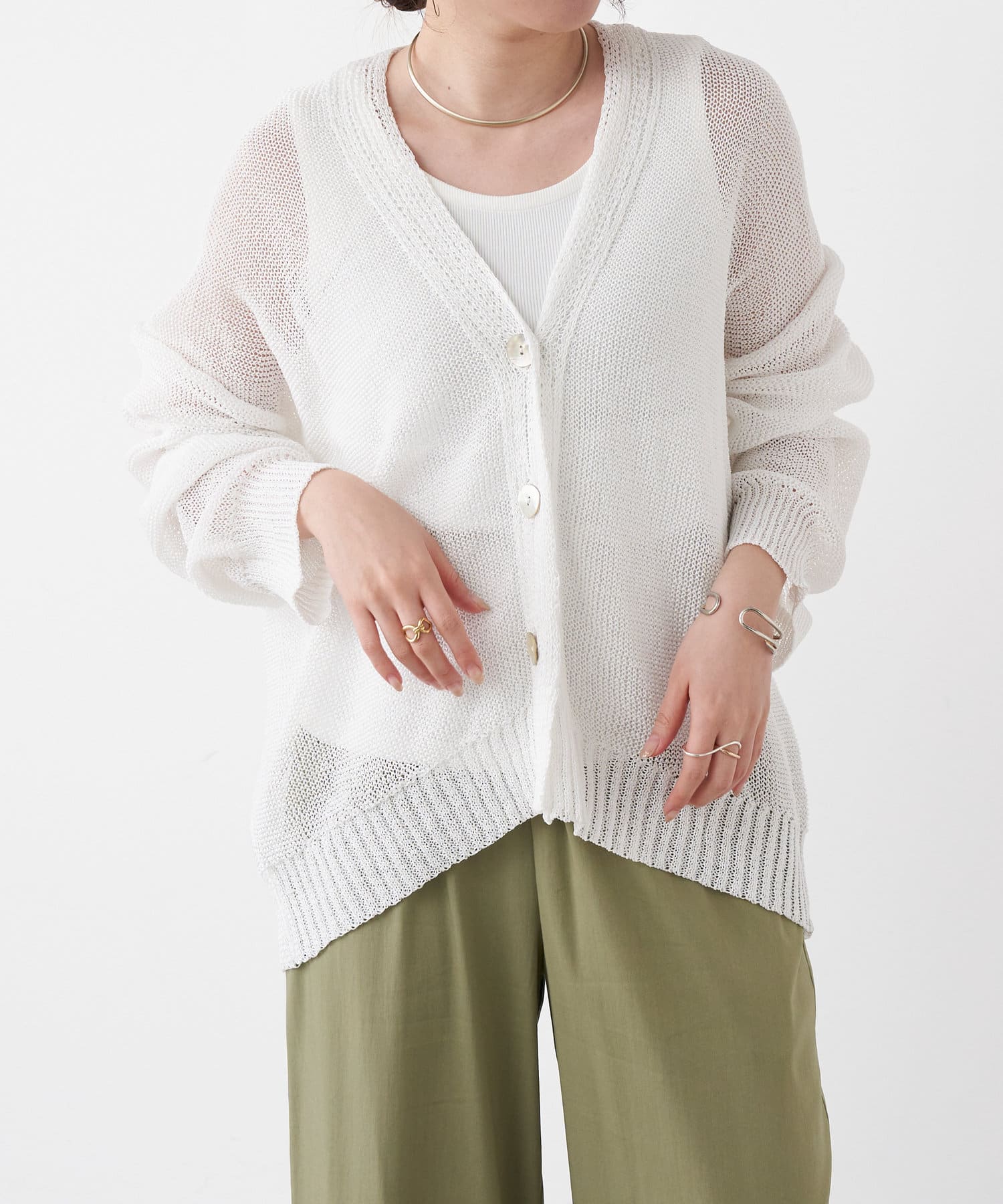 ・日焼け対策、冷房対策にも重宝するスッキリした肌触りのカーディガンです。