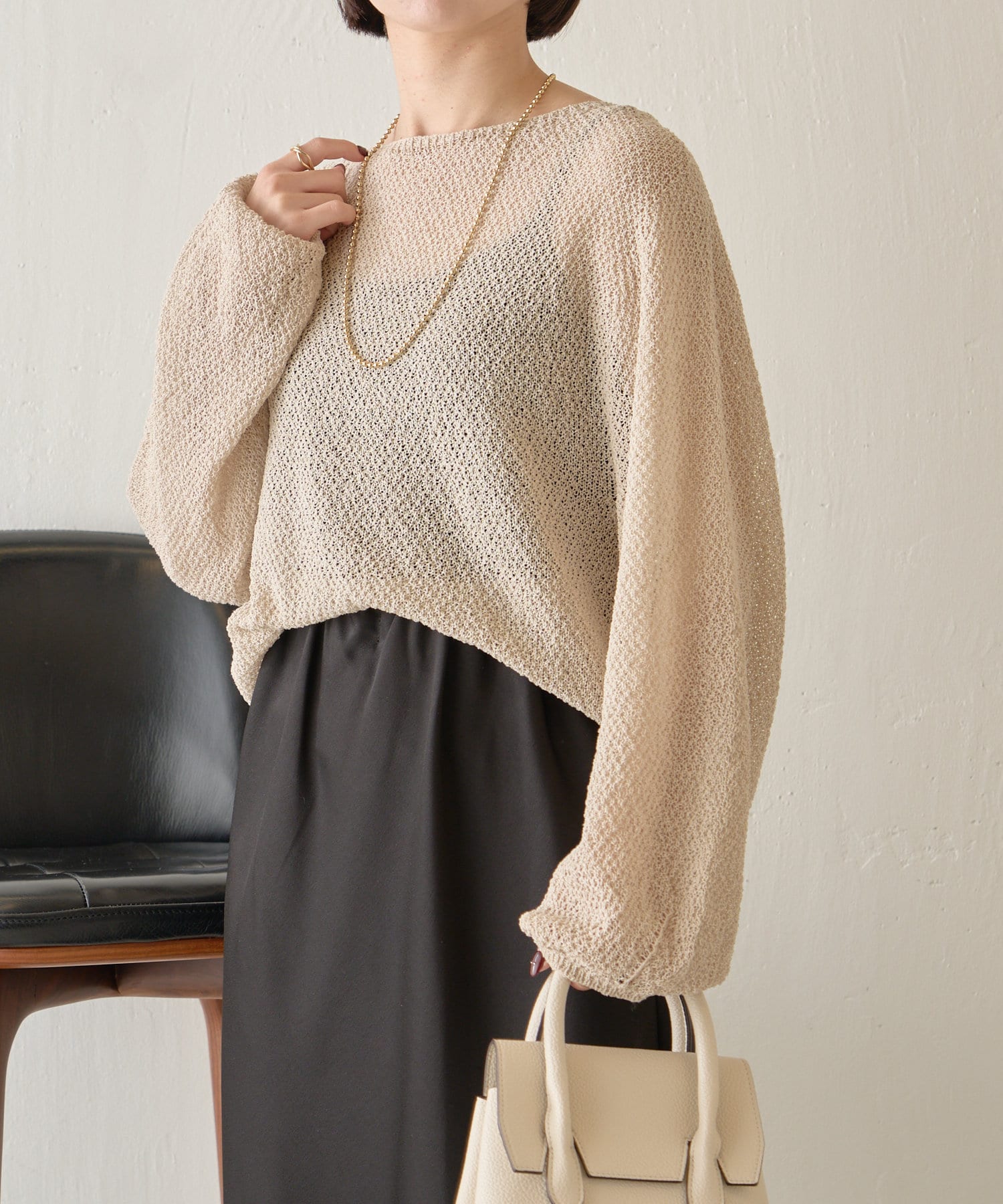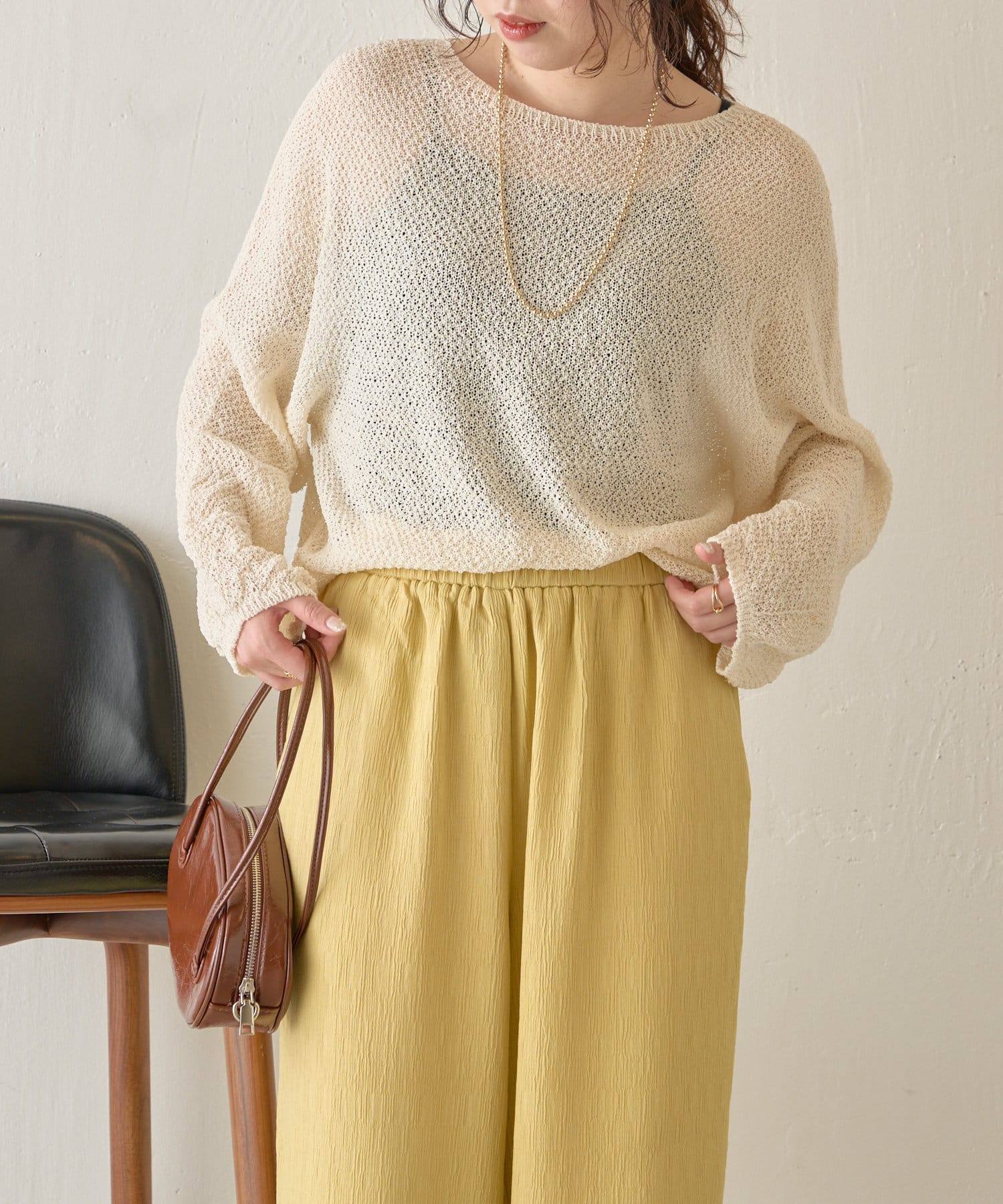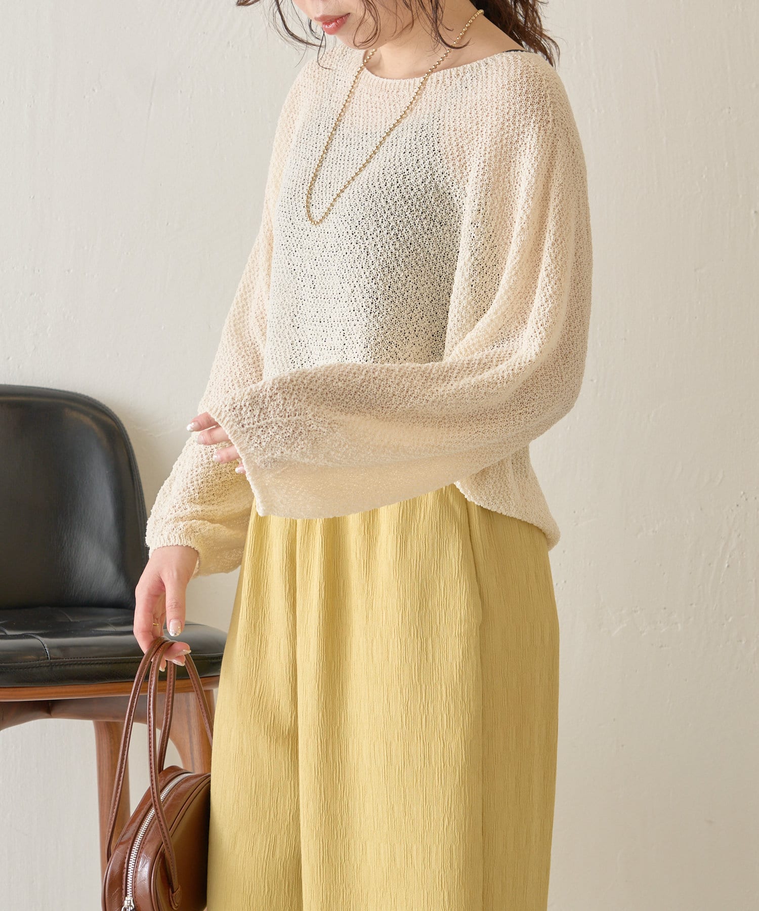 ・ゆるっとした程よくオーバーなサイズ感のニットは、インナー次第で幅広いレイヤードが楽しめます。