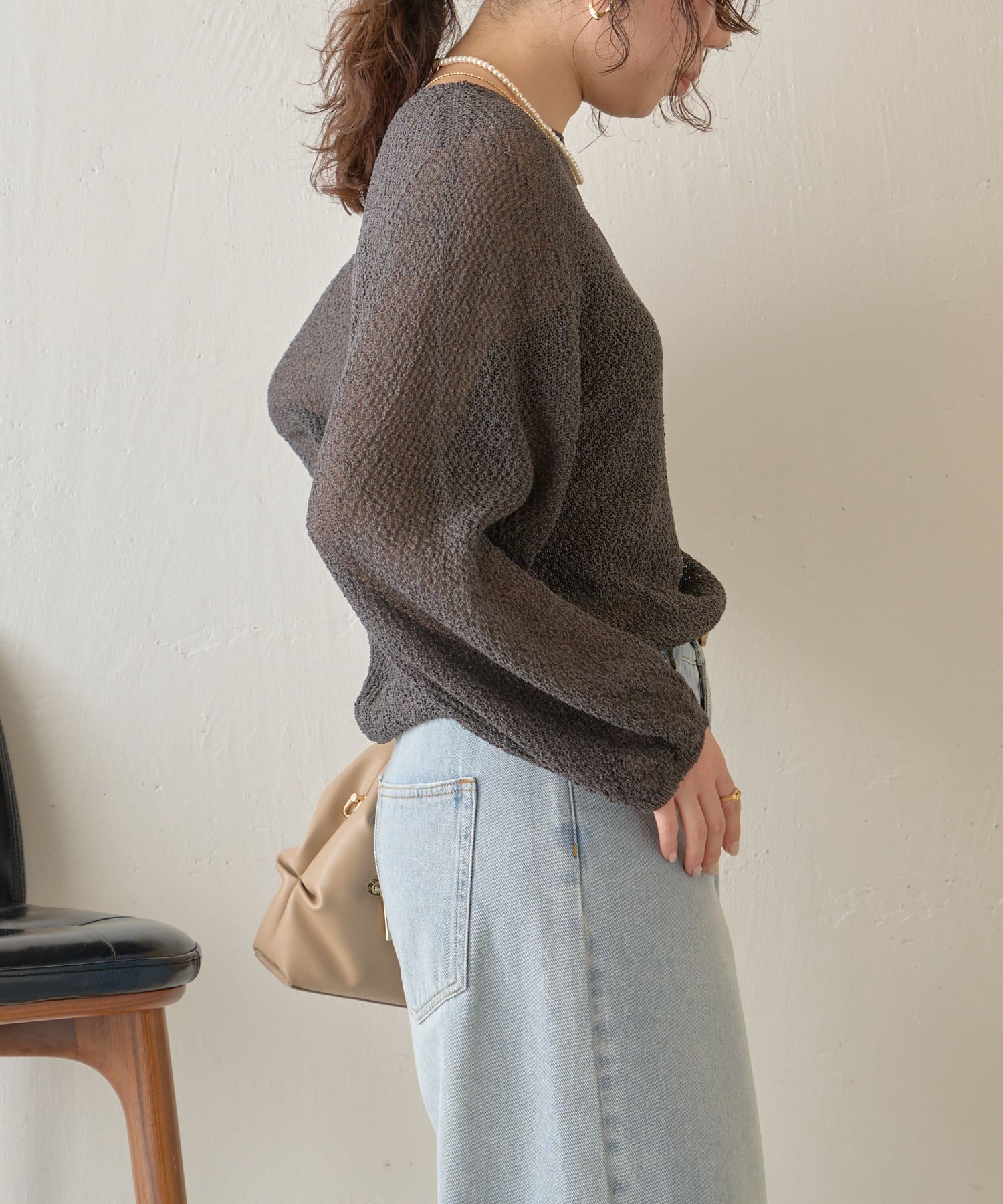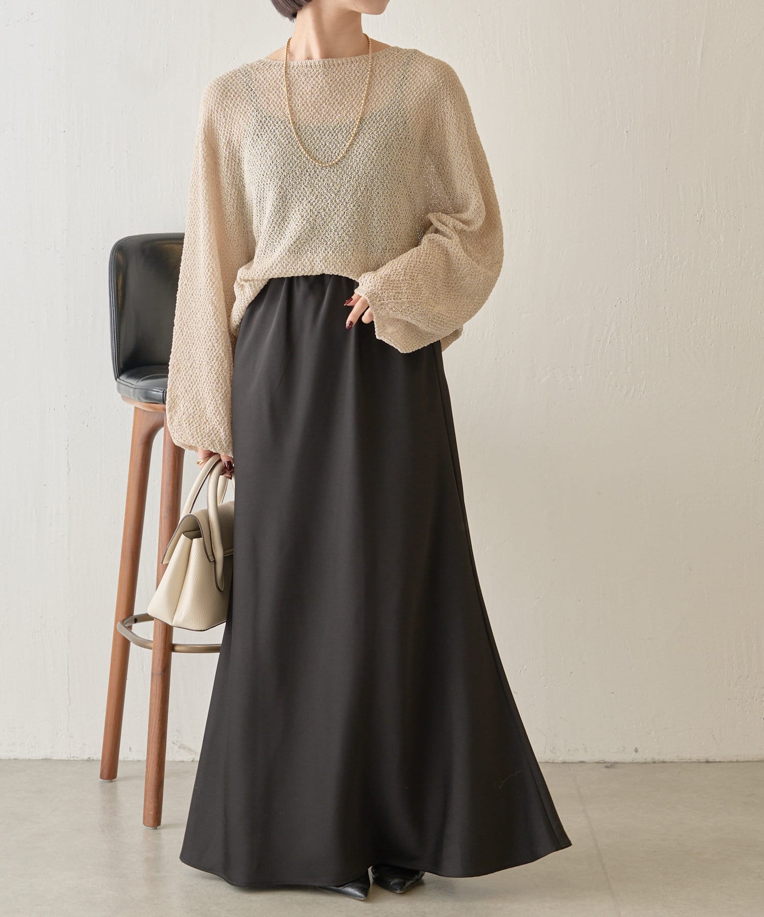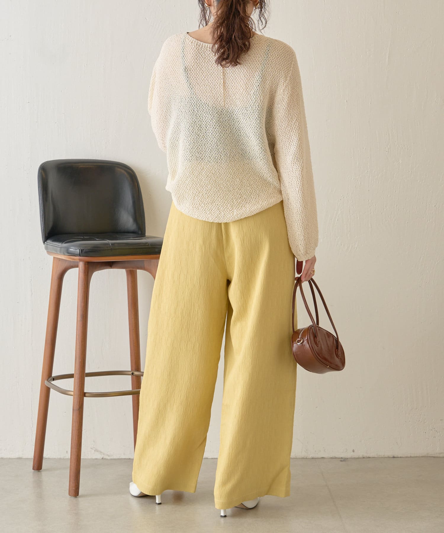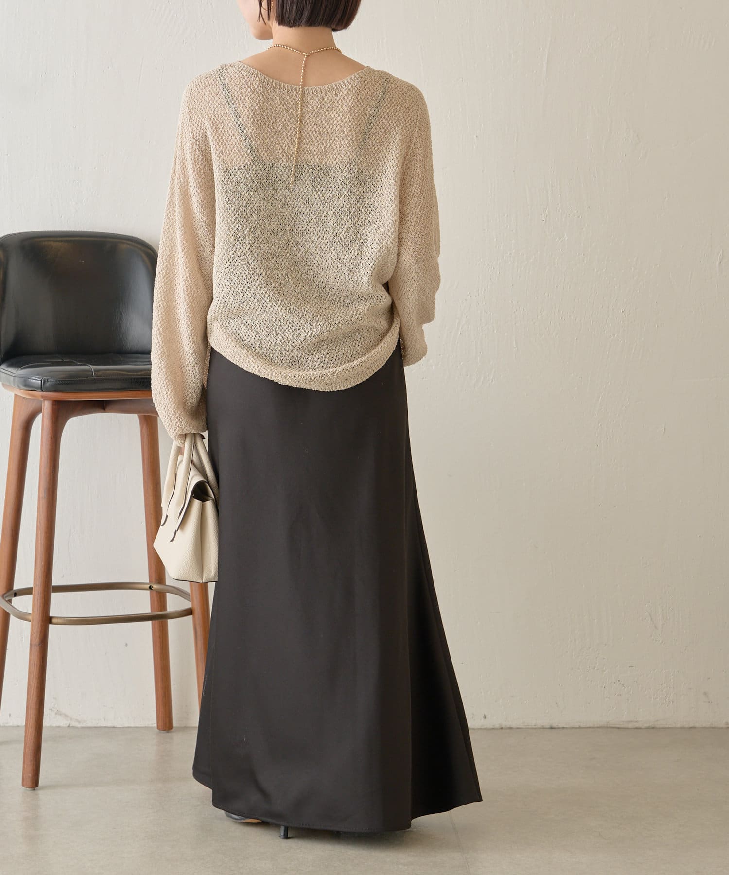 ・ゆるっとした程よくオーバーなサイズ感のニットは、インナー次第で幅広いレイヤードが楽しめます。