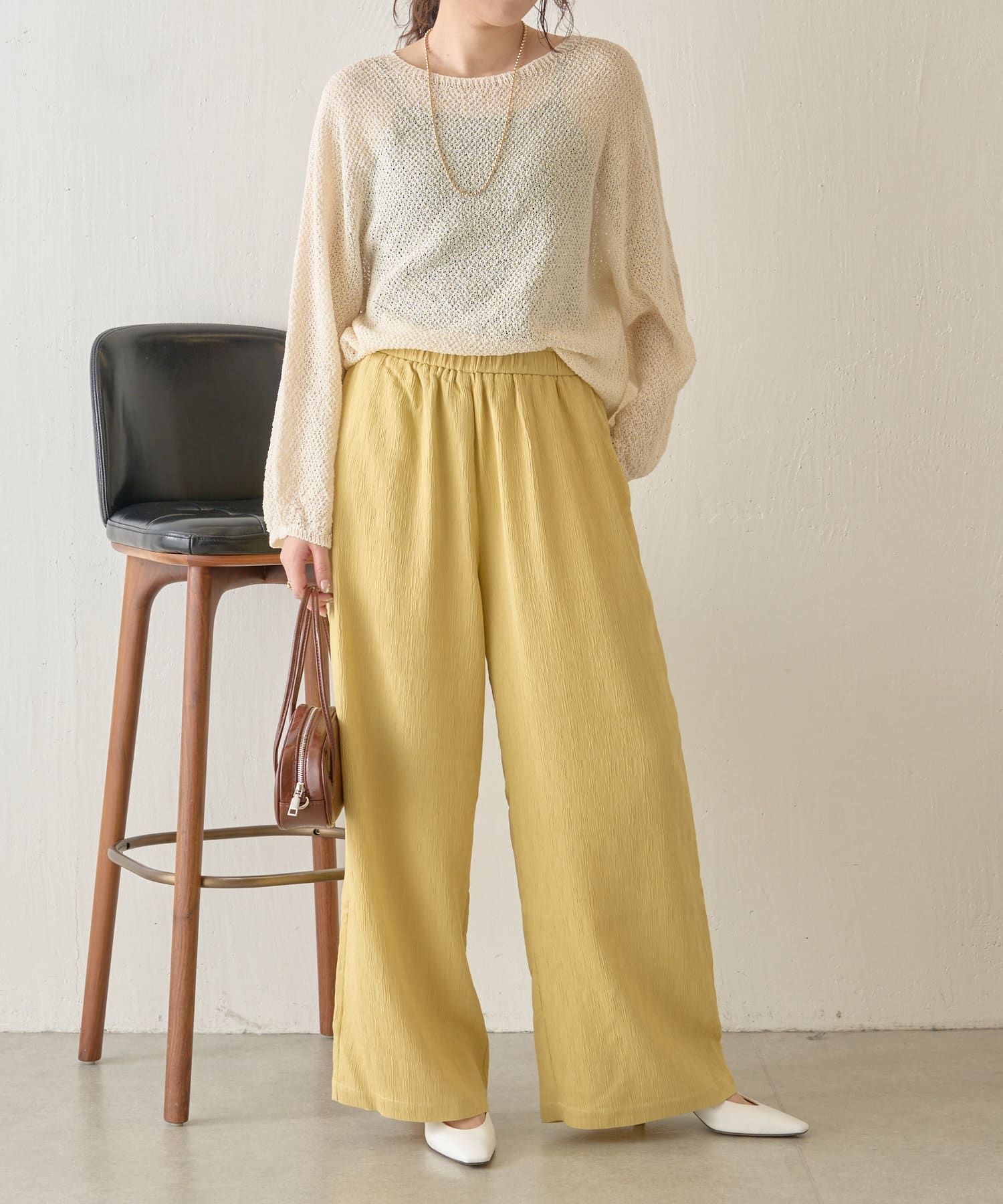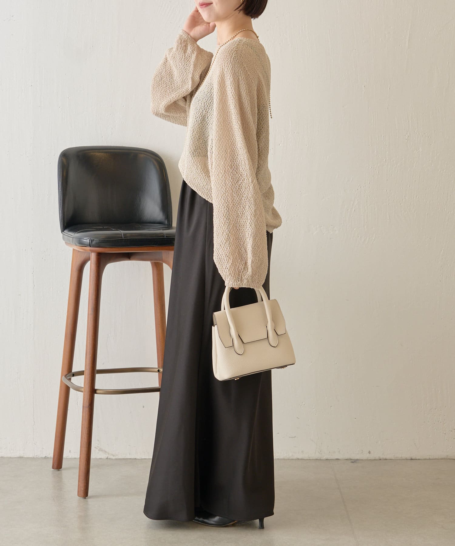 ・また、テーパードやワイドパンツと好相性!フロントインすればバランス良くスタイルアップした着こなしにも◎