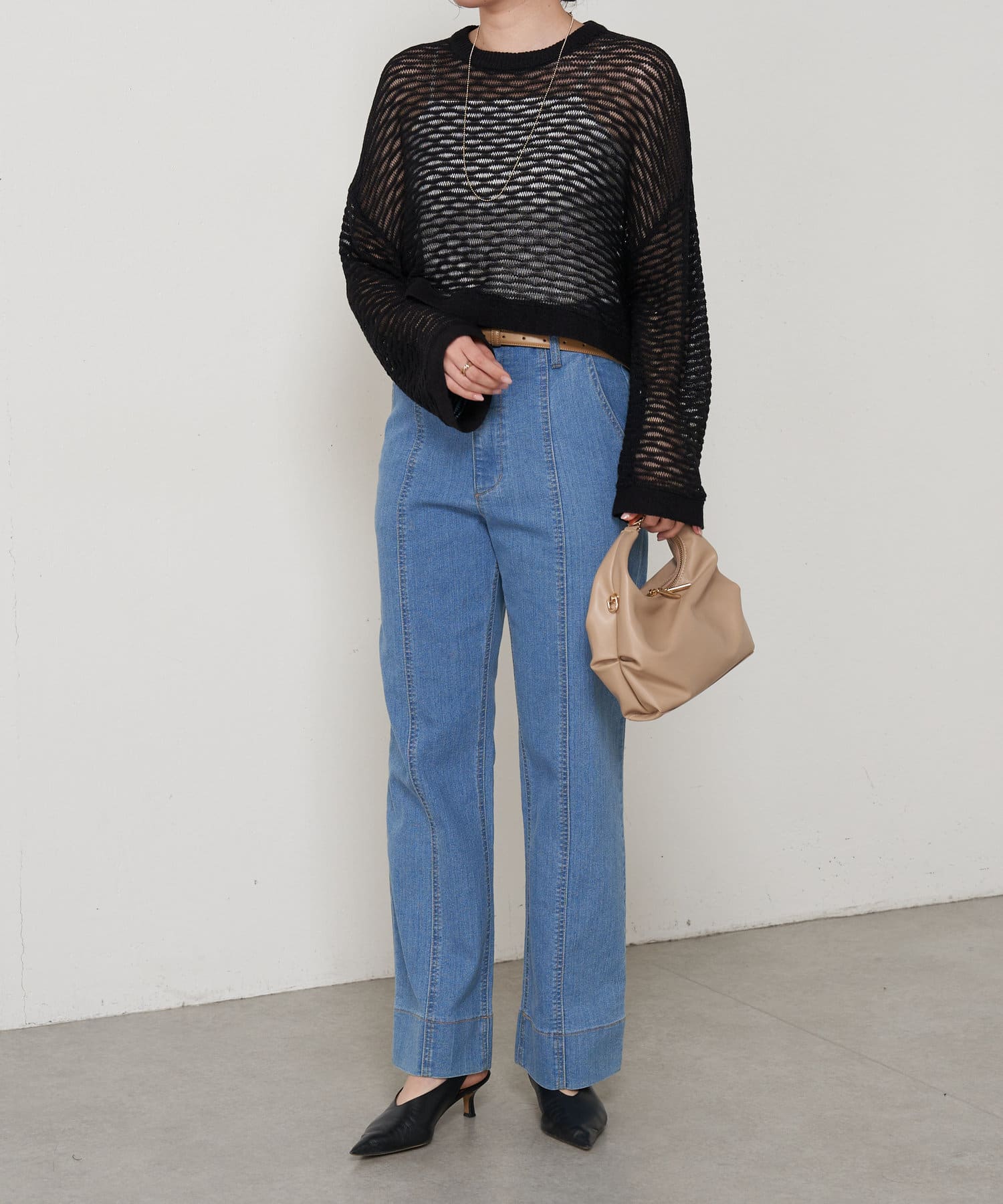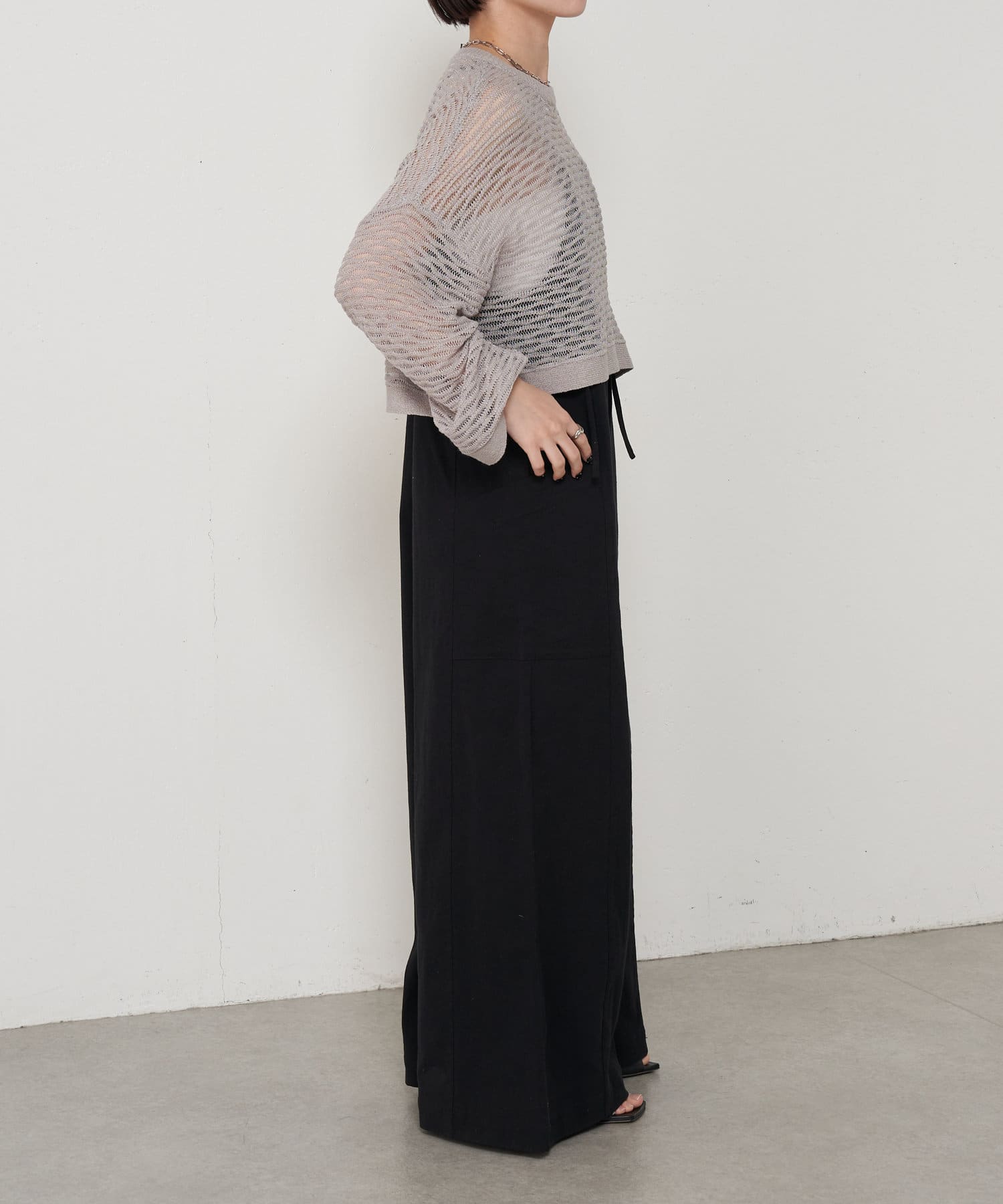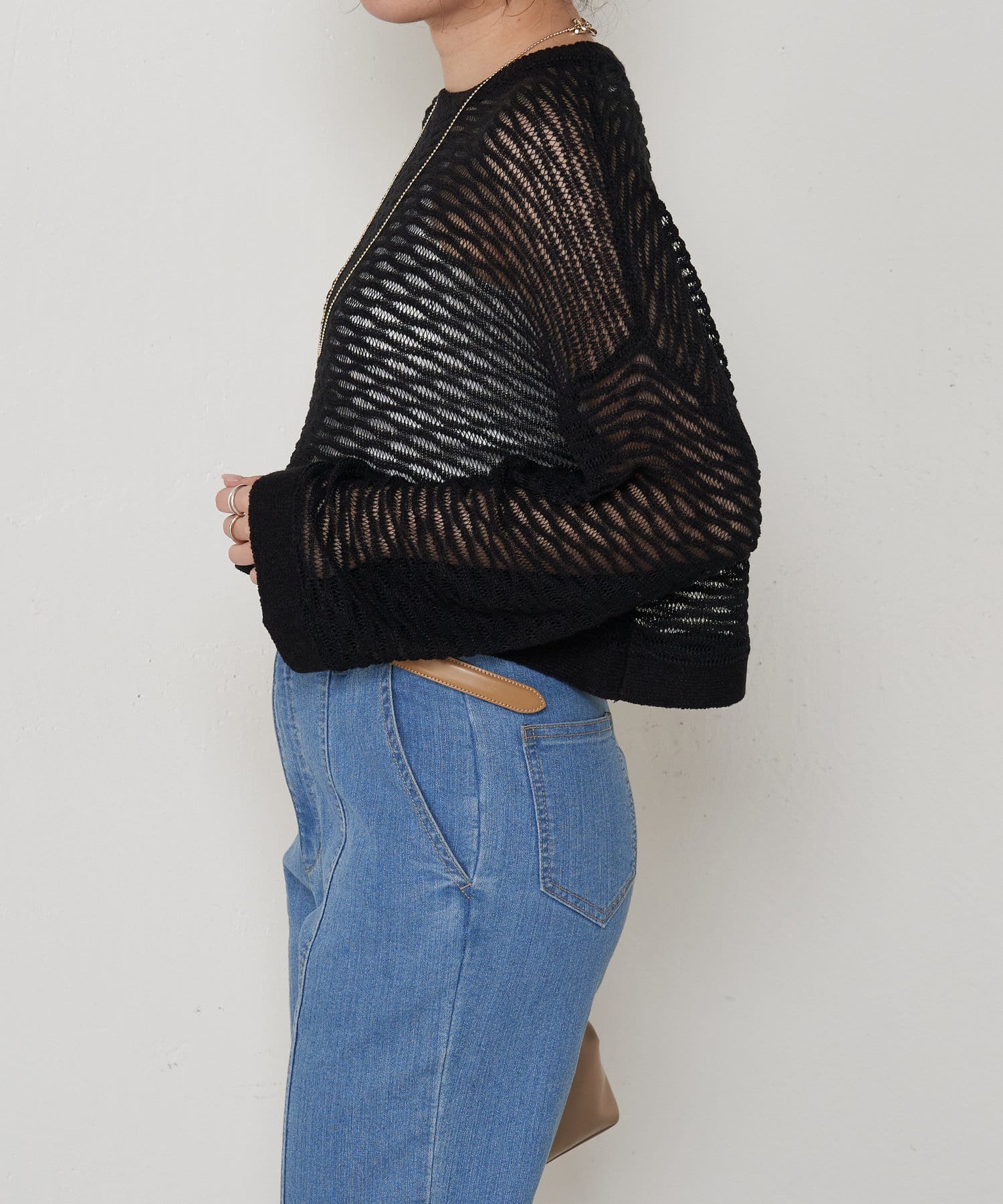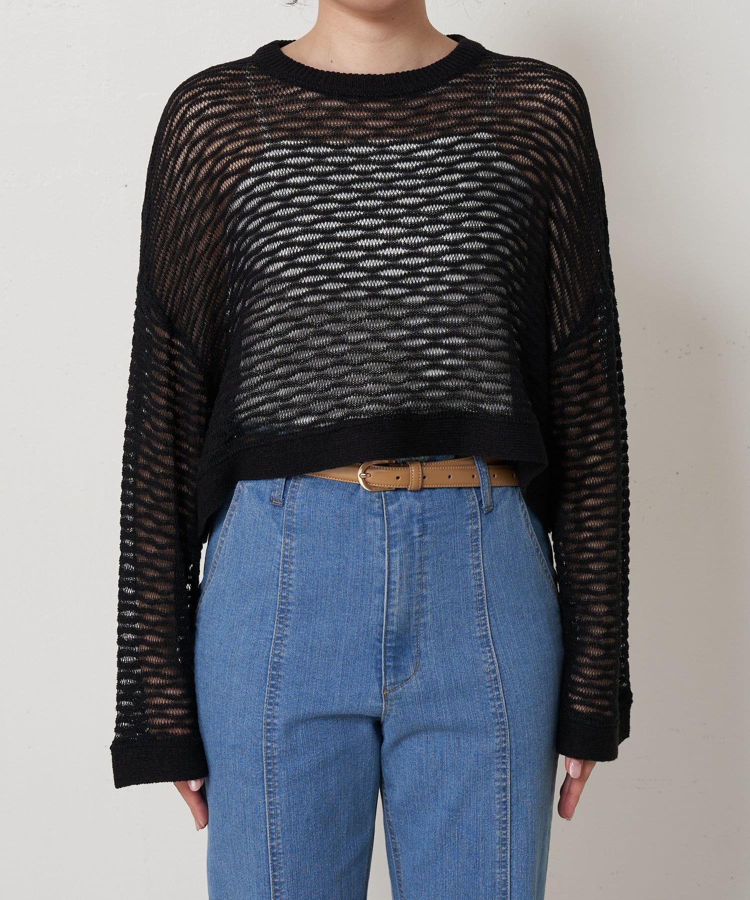 ・ショート丈ニットは重心が上がって腰の位置が高く見えることでスタイルアップも叶うアイテムです。