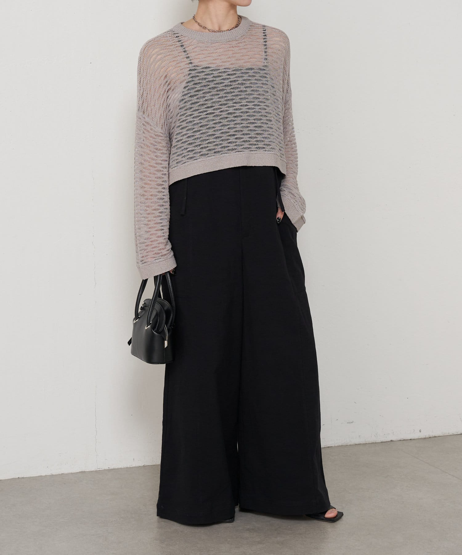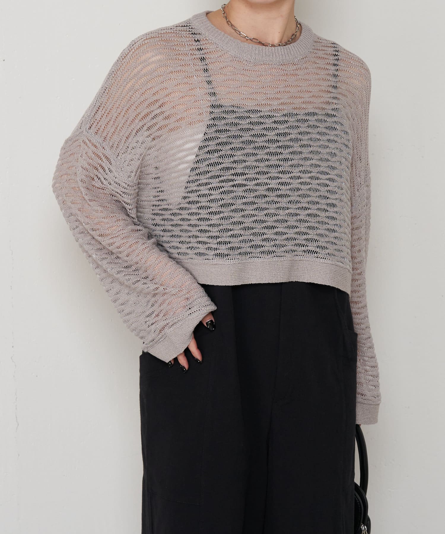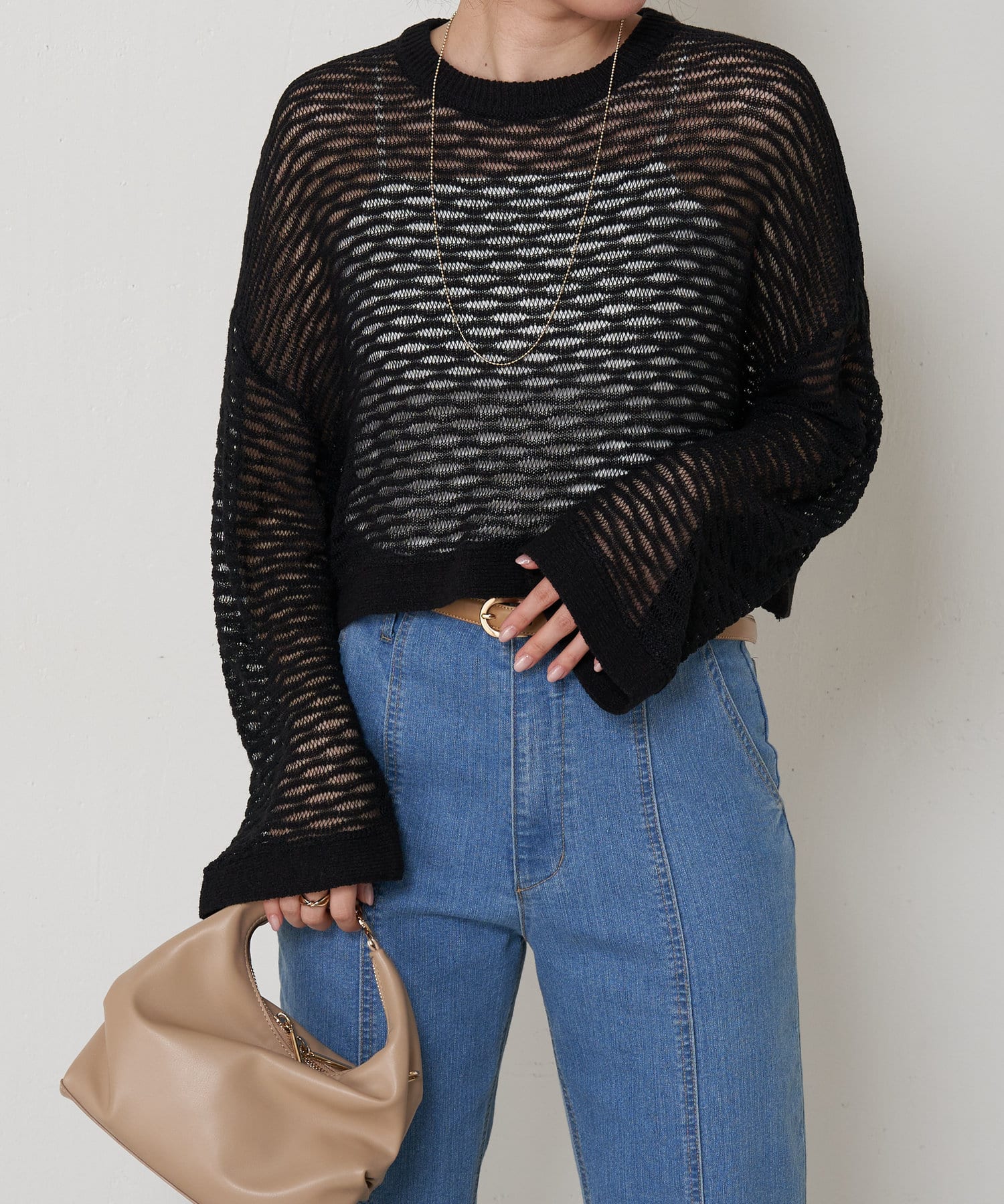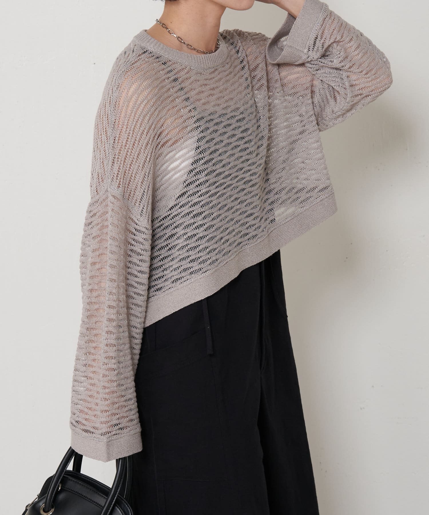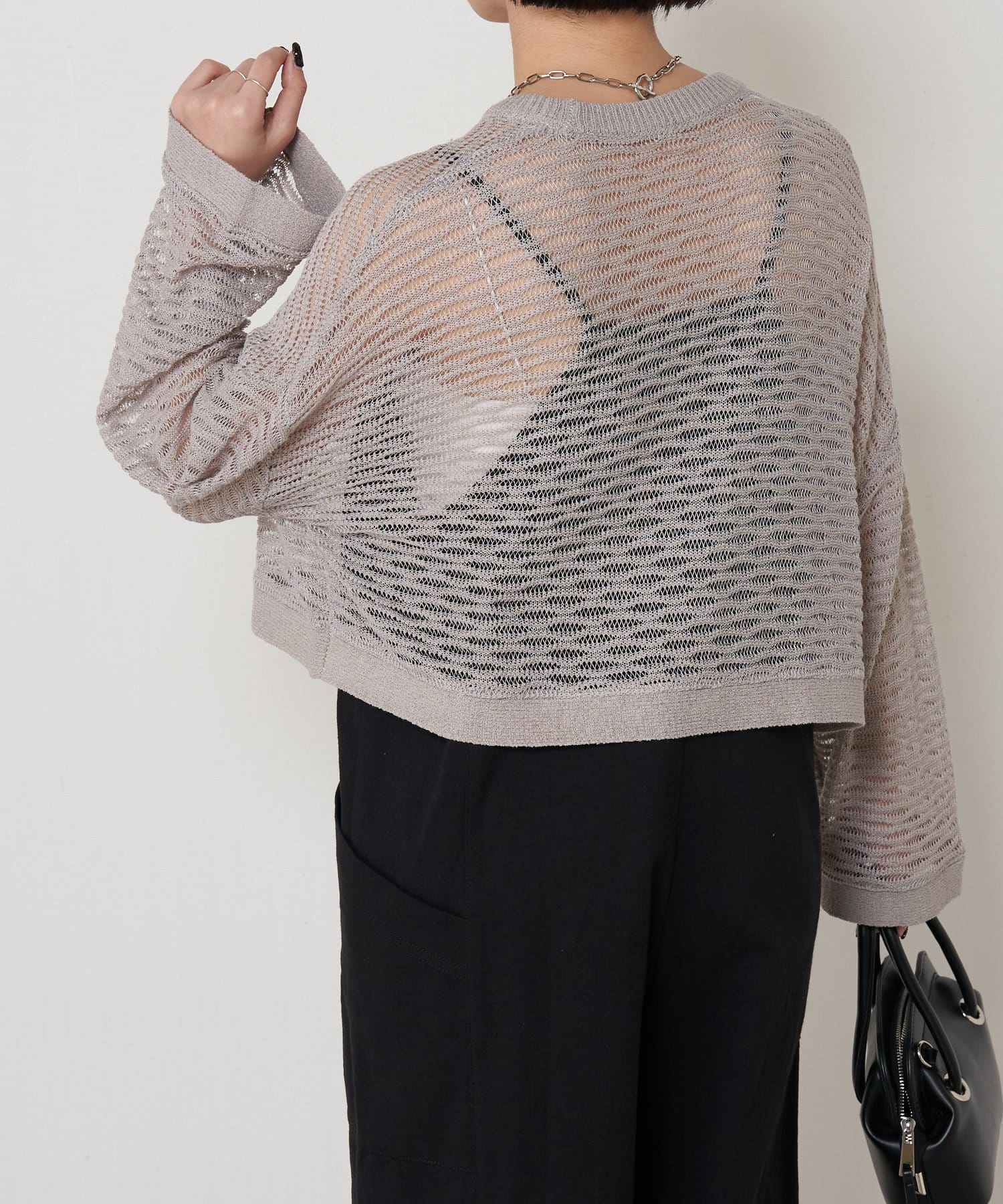 ・ショート丈ニットは重心が上がって腰の位置が高く見えることでスタイルアップも叶うアイテムです。