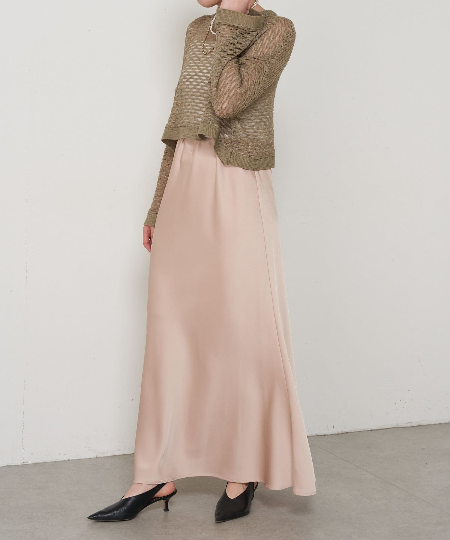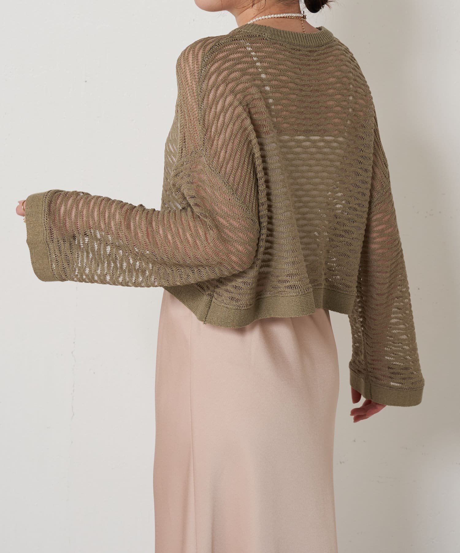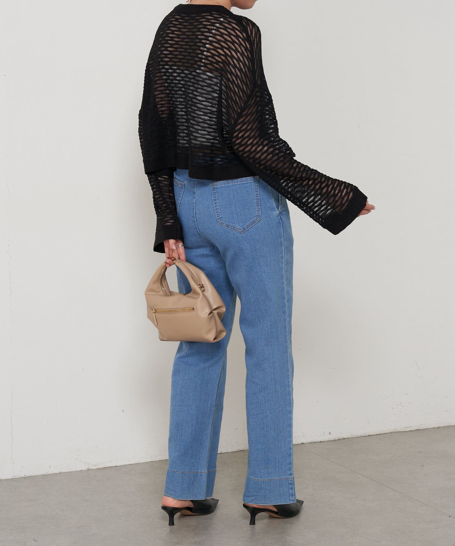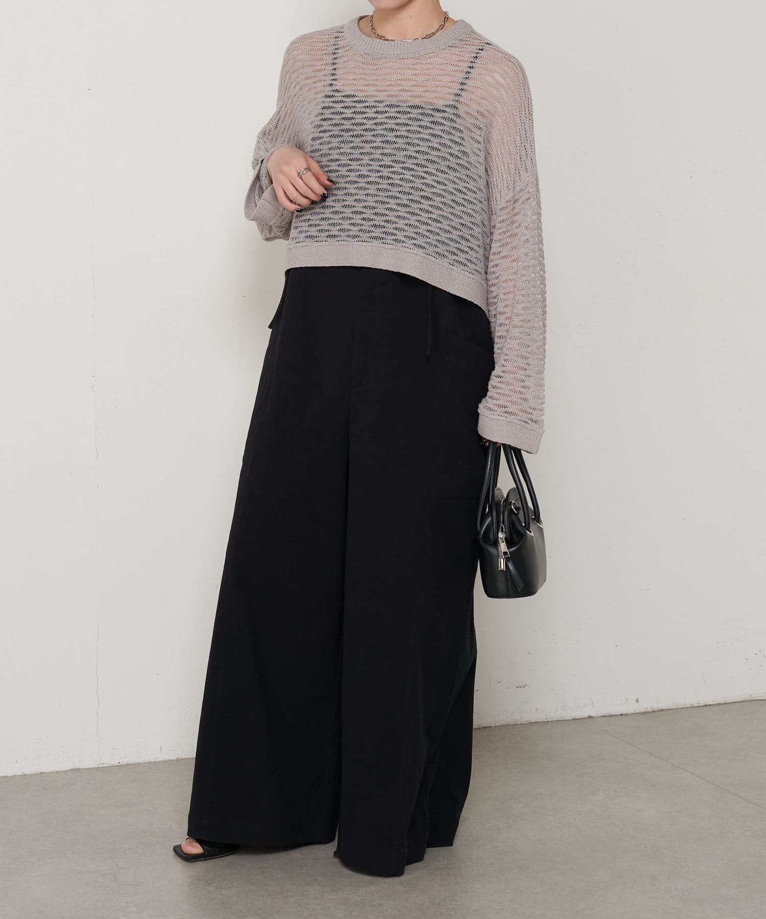 ・ショート丈ニットは重心が上がって腰の位置が高く見えることでスタイルアップも叶うアイテムです。