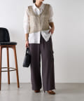 ・存在感抜群のベストは一枚羽織るだけで、コーディネート全体がぐっと洗練された印象に変わります。