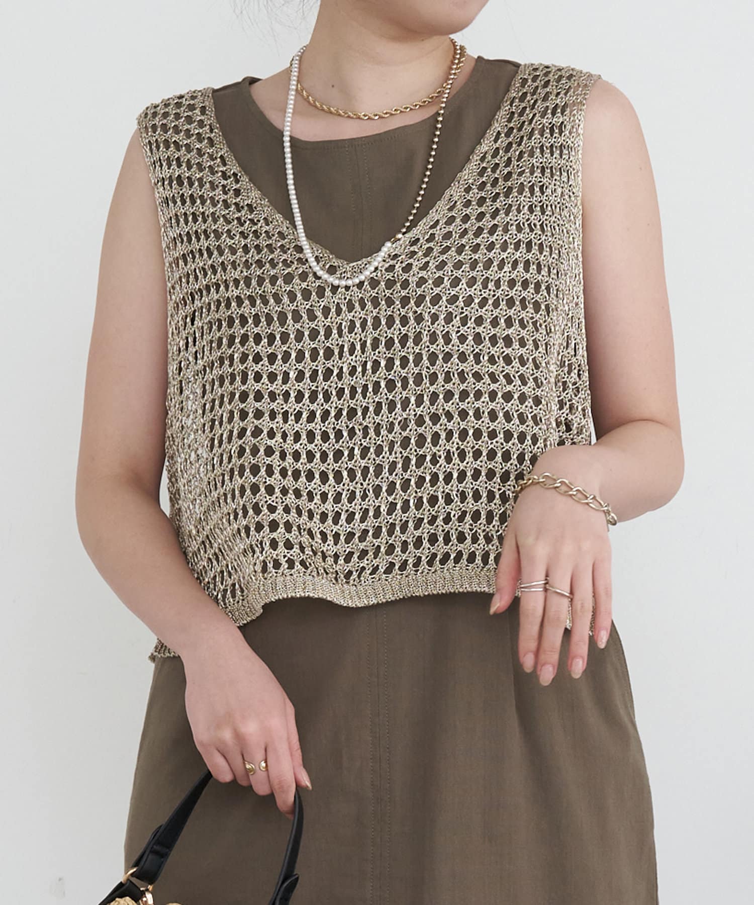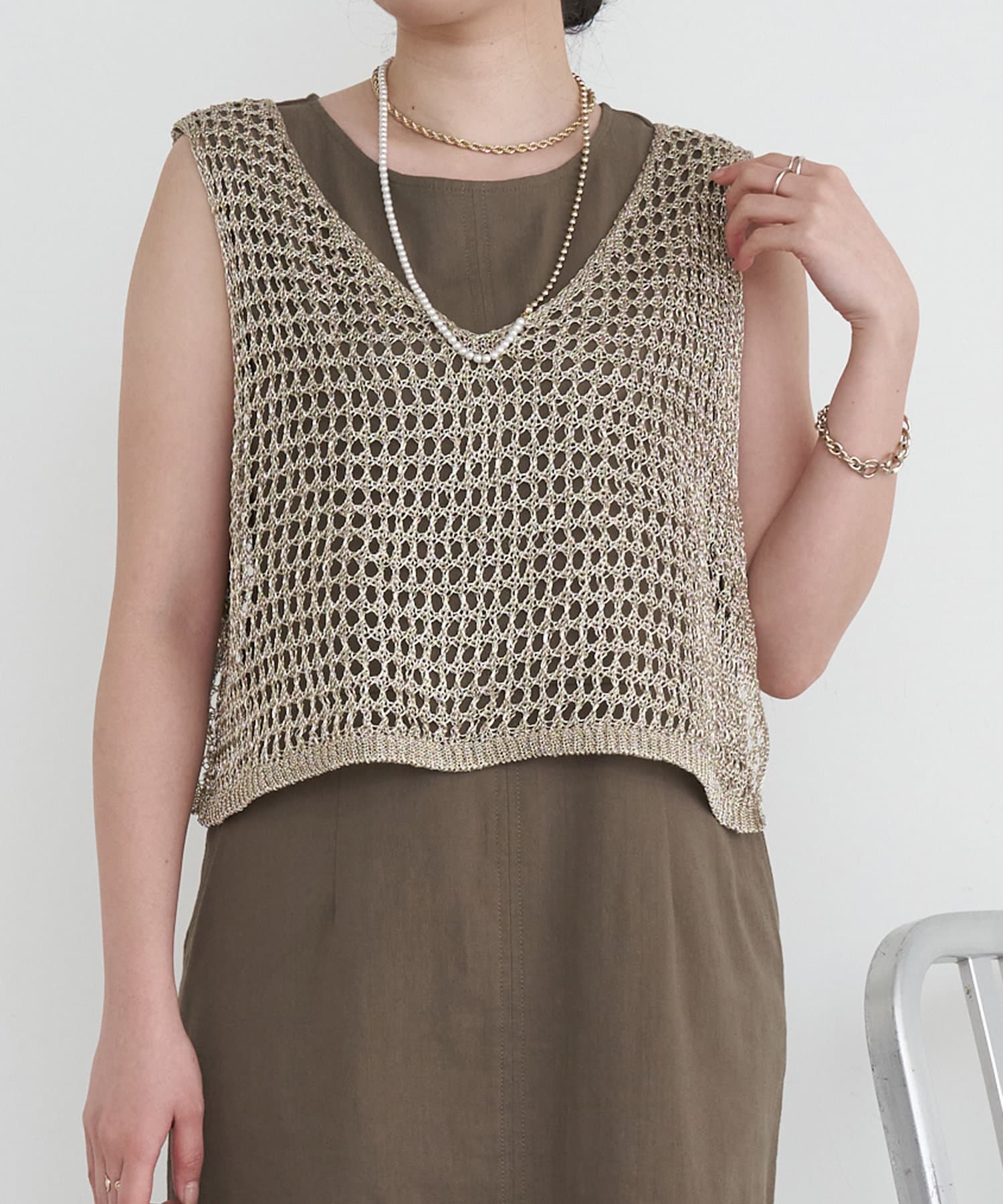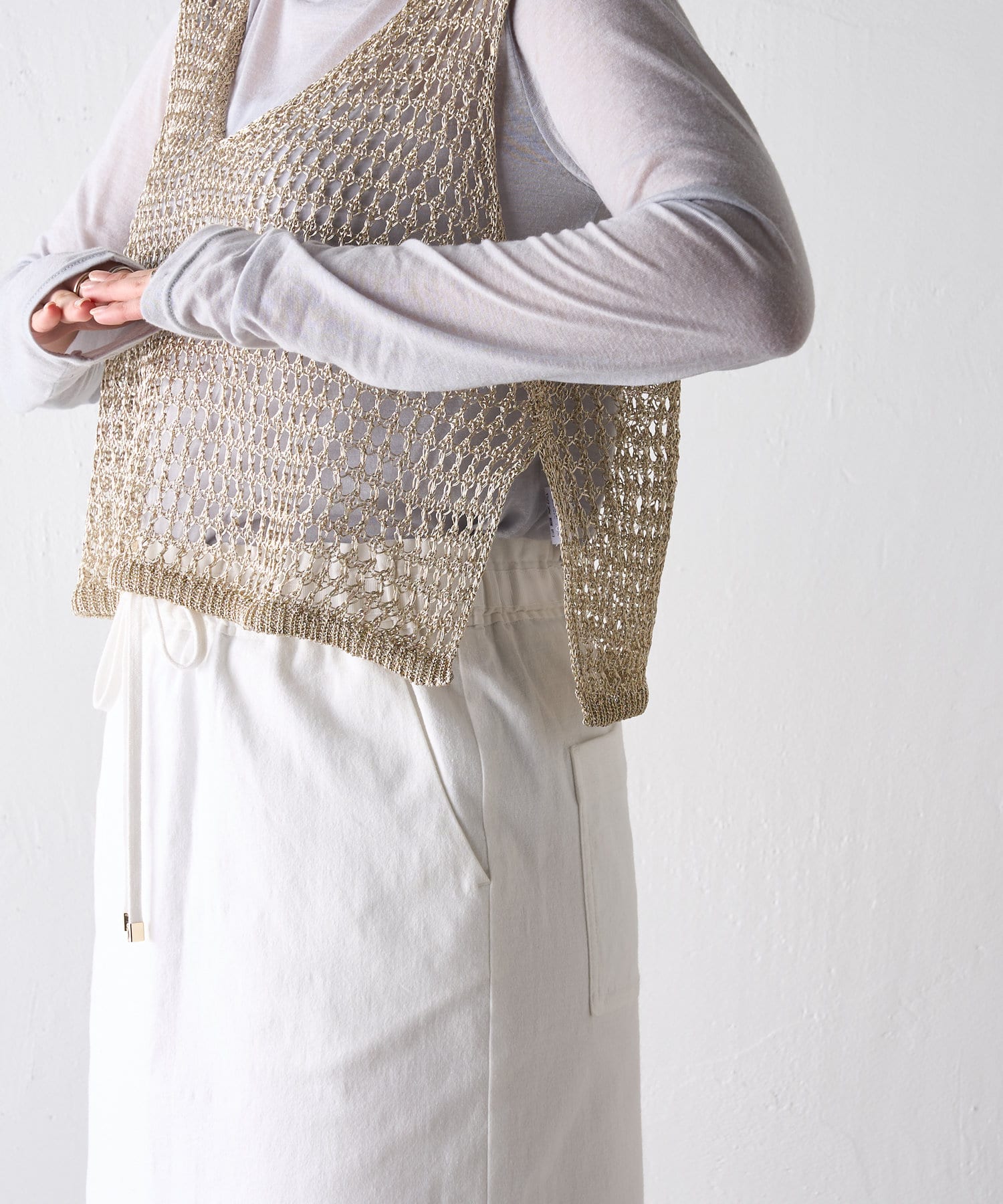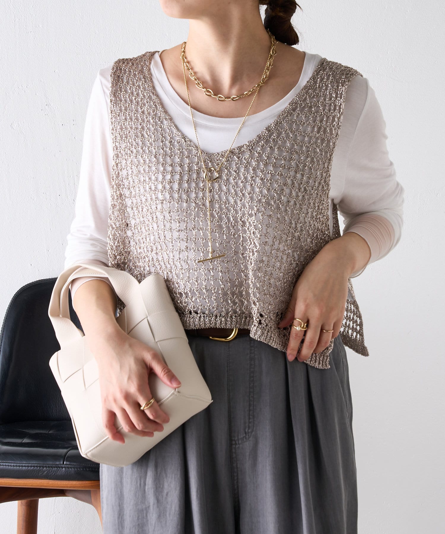 ・いつものコーデを華やかに彩る、メタリックヤーンベスト。